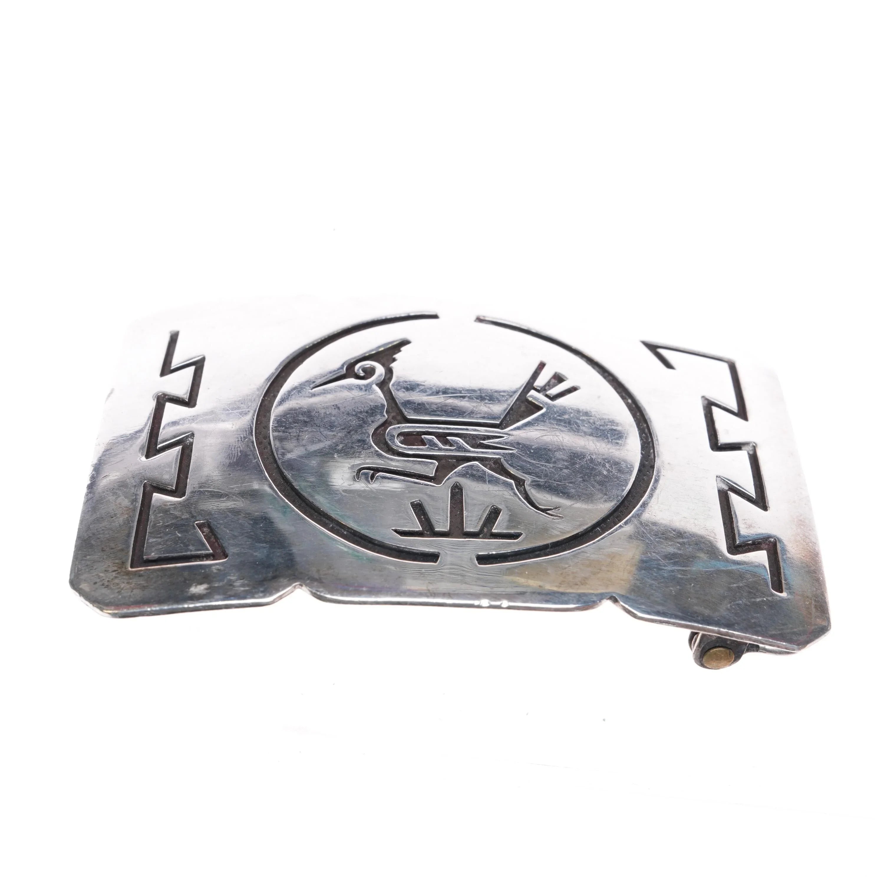 Vintage Navajo Overlay roadrunner belt buckle Native American sterling silver 2". Solid sterling silver (tested) buckle with weight and measurements in pictures.. Fits up to a 2" belt. No issues, good condition with some expected wear. 1970‘s-80‘s, unmarked.