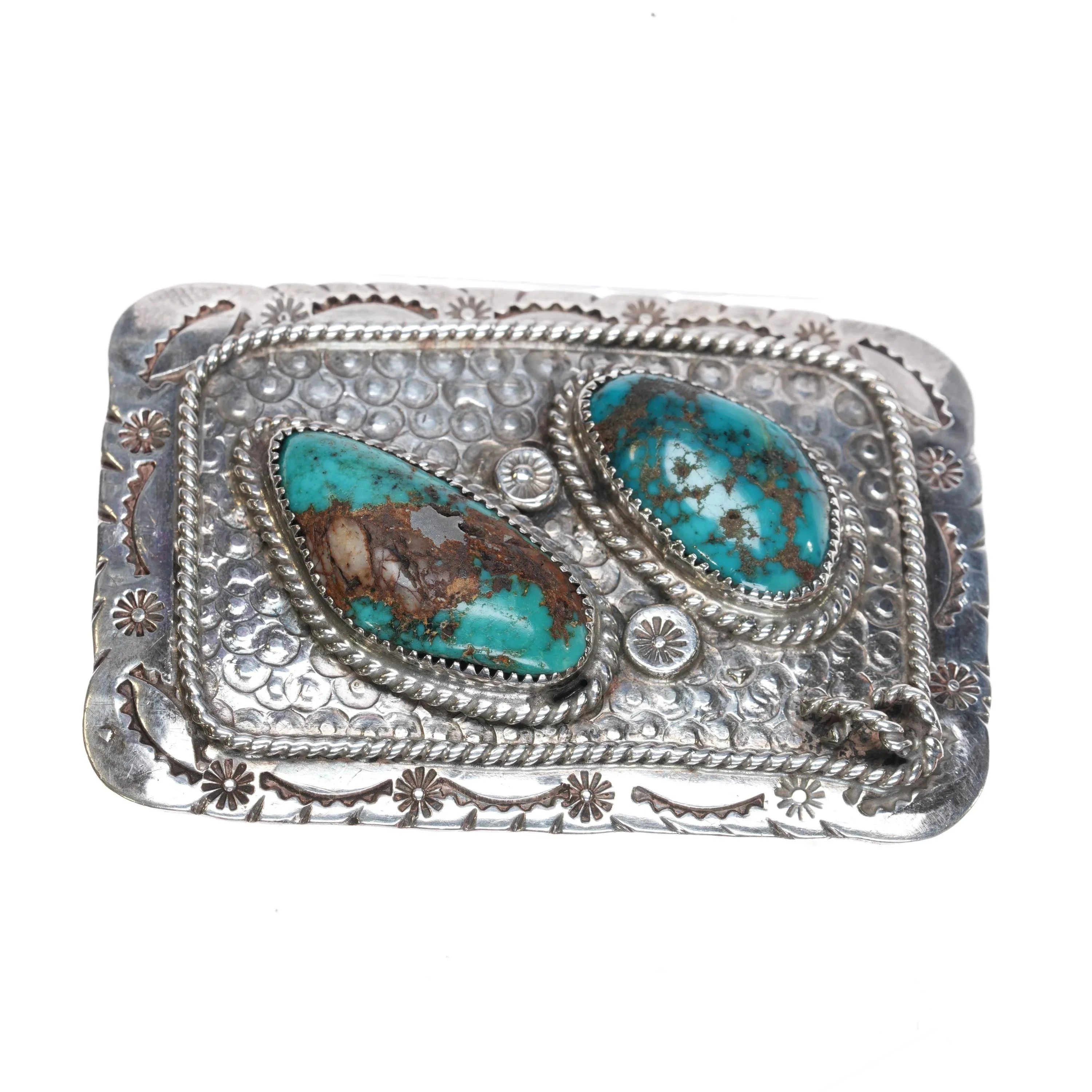 Vintage Navajo sterling silver 2 stone turquoise belt buckle