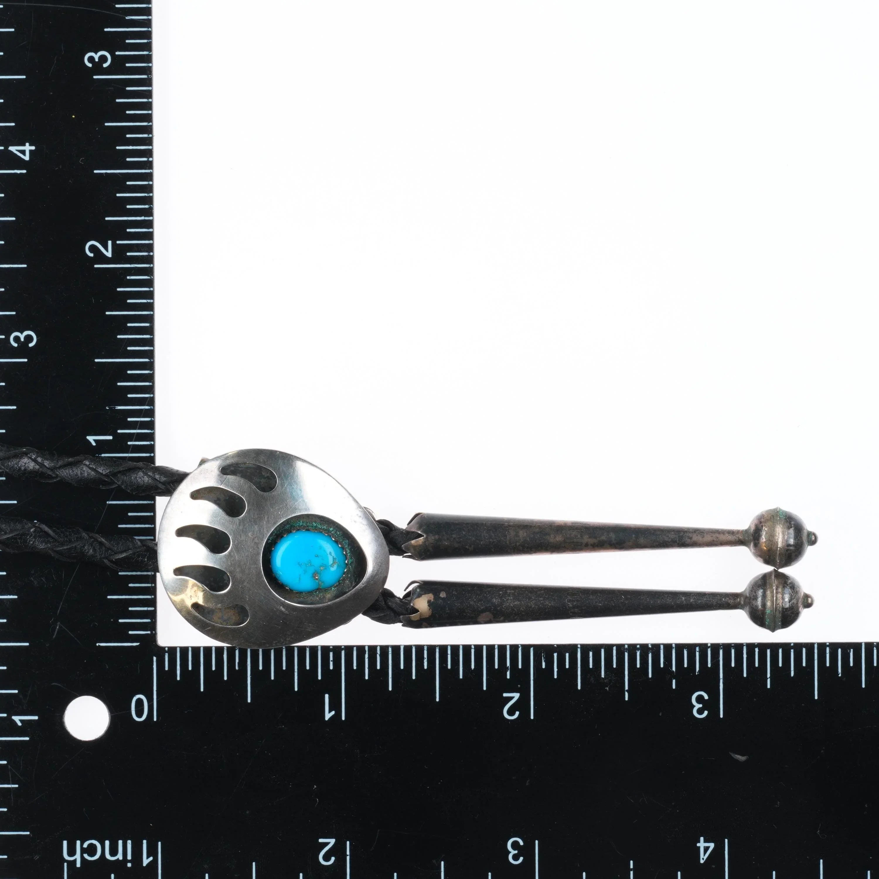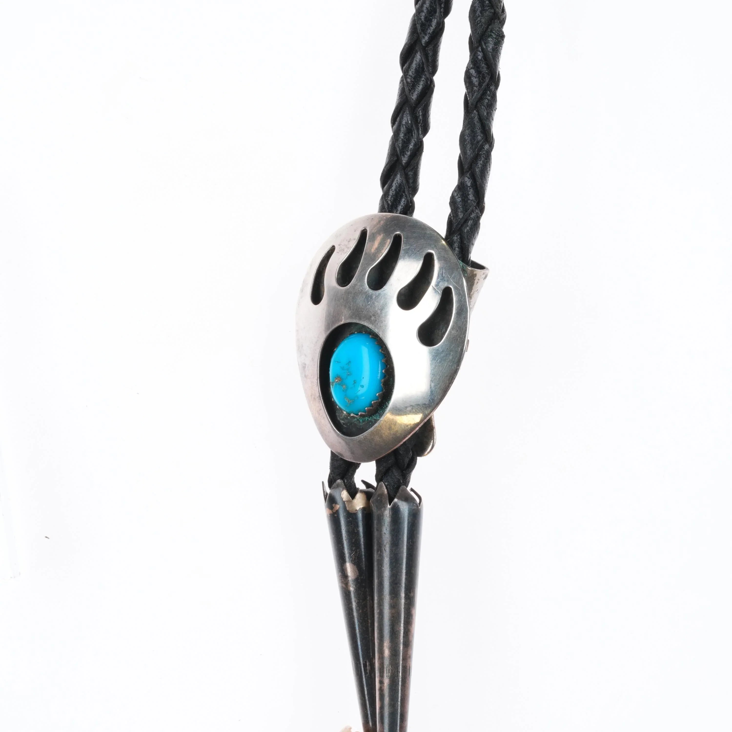 Vintage Navajo sterling silver bear paw shadowbox turquoise bolo tie