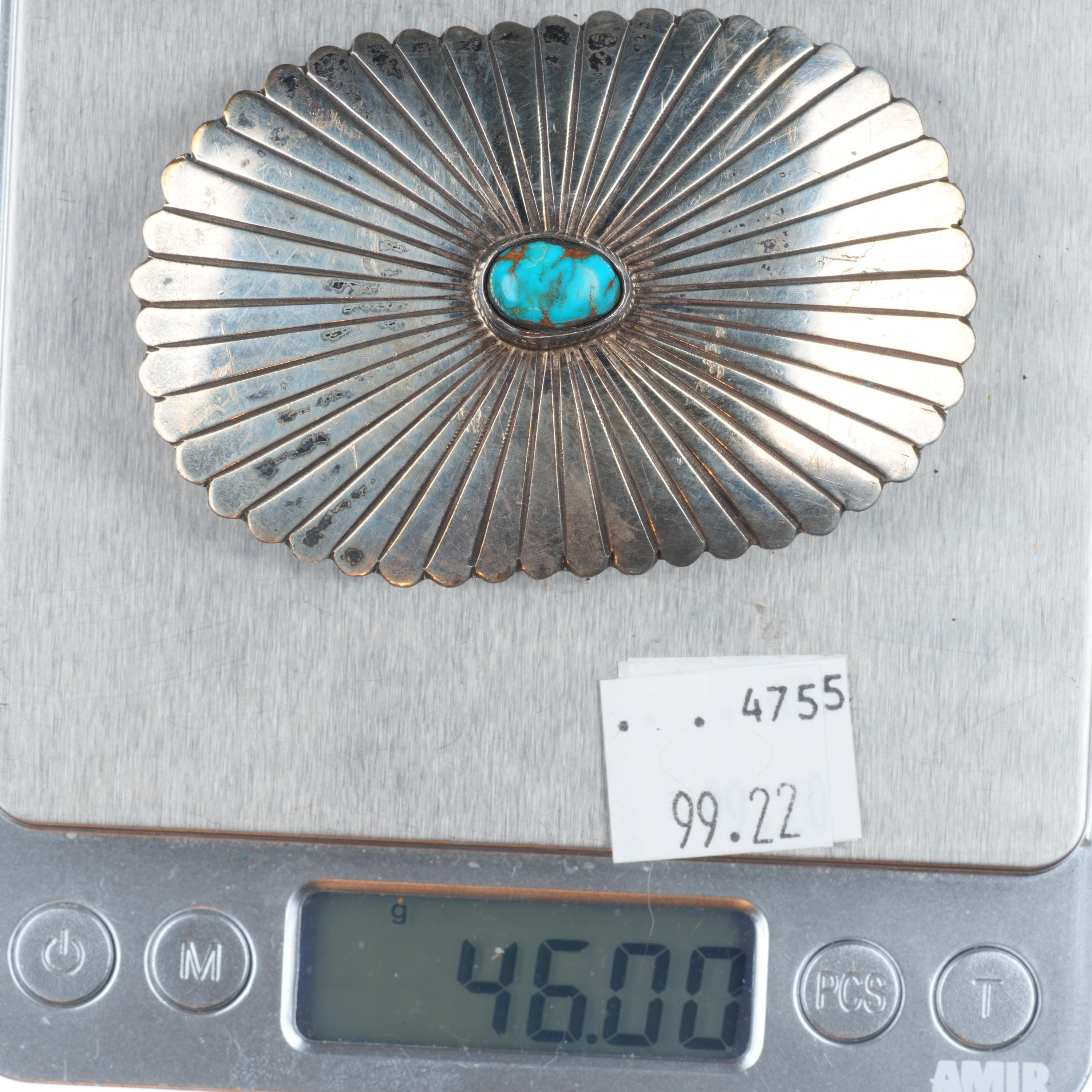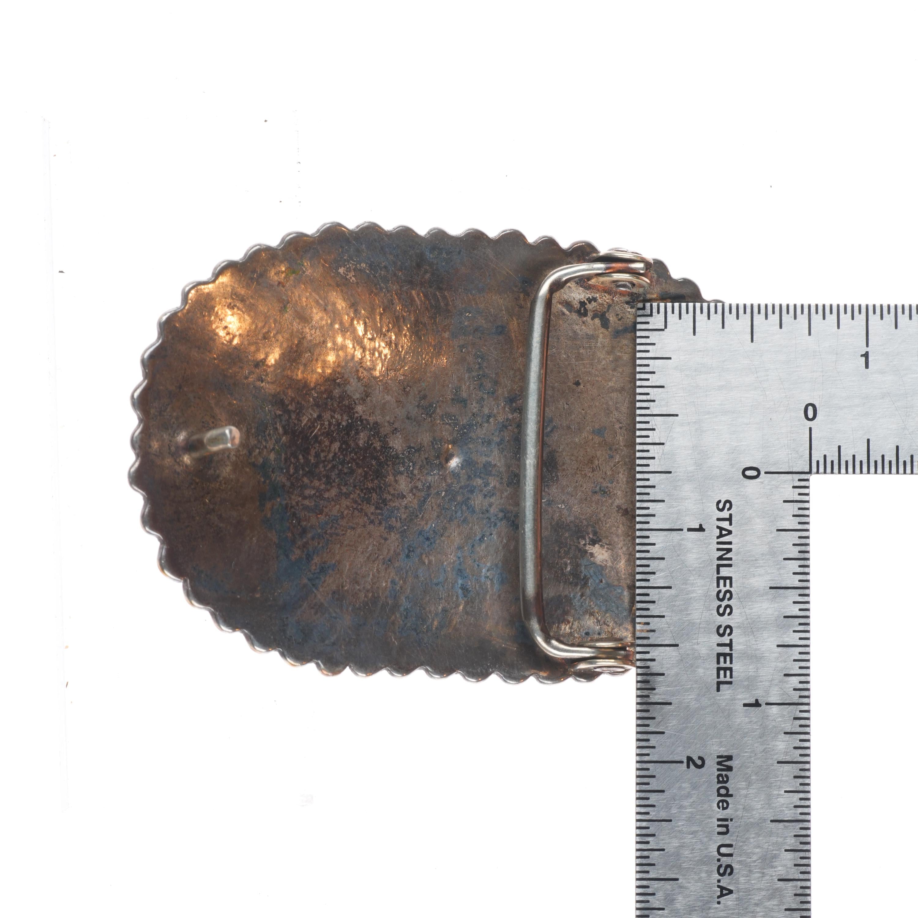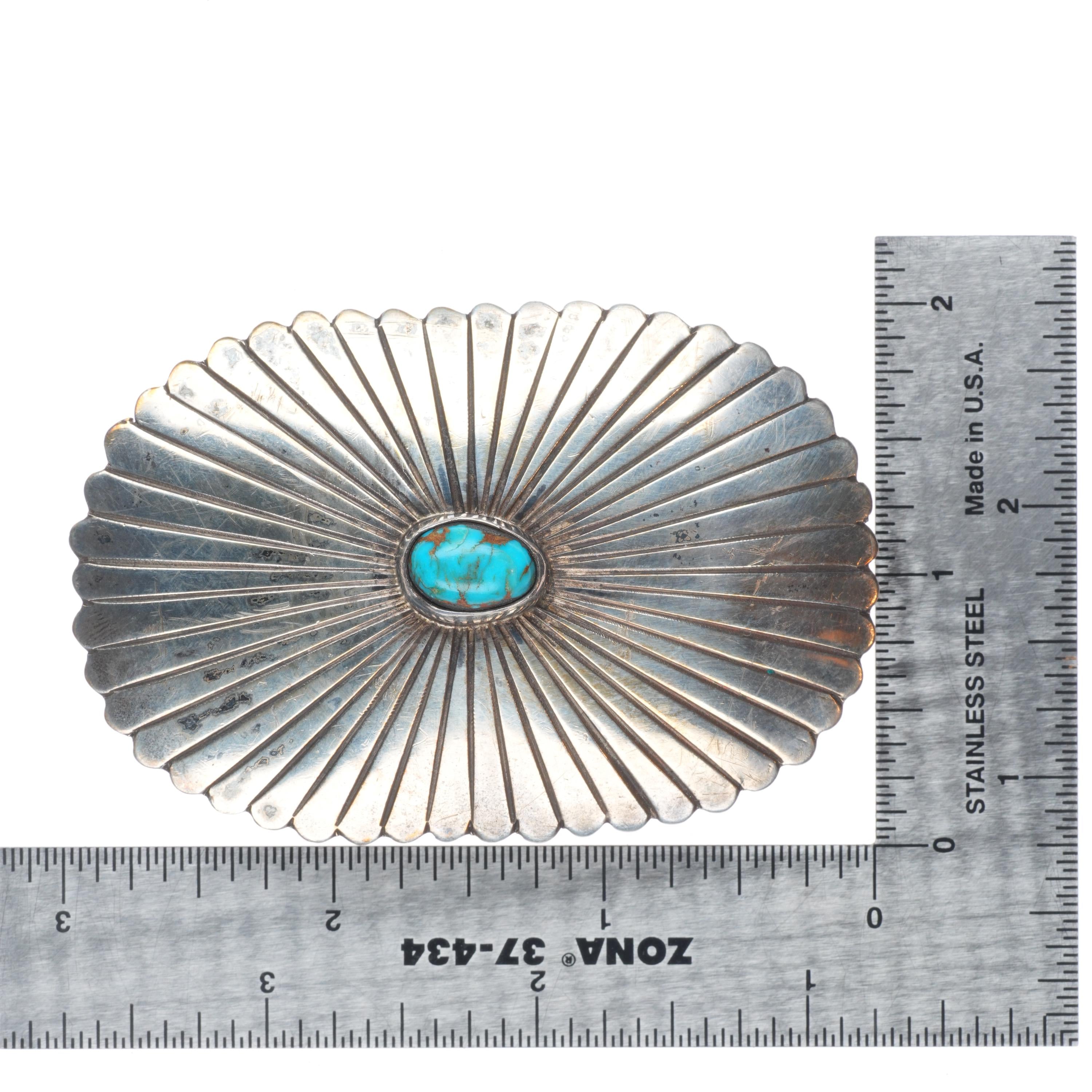 Vintage Navajo sterling silver belt buckle chiseled design with turquoise