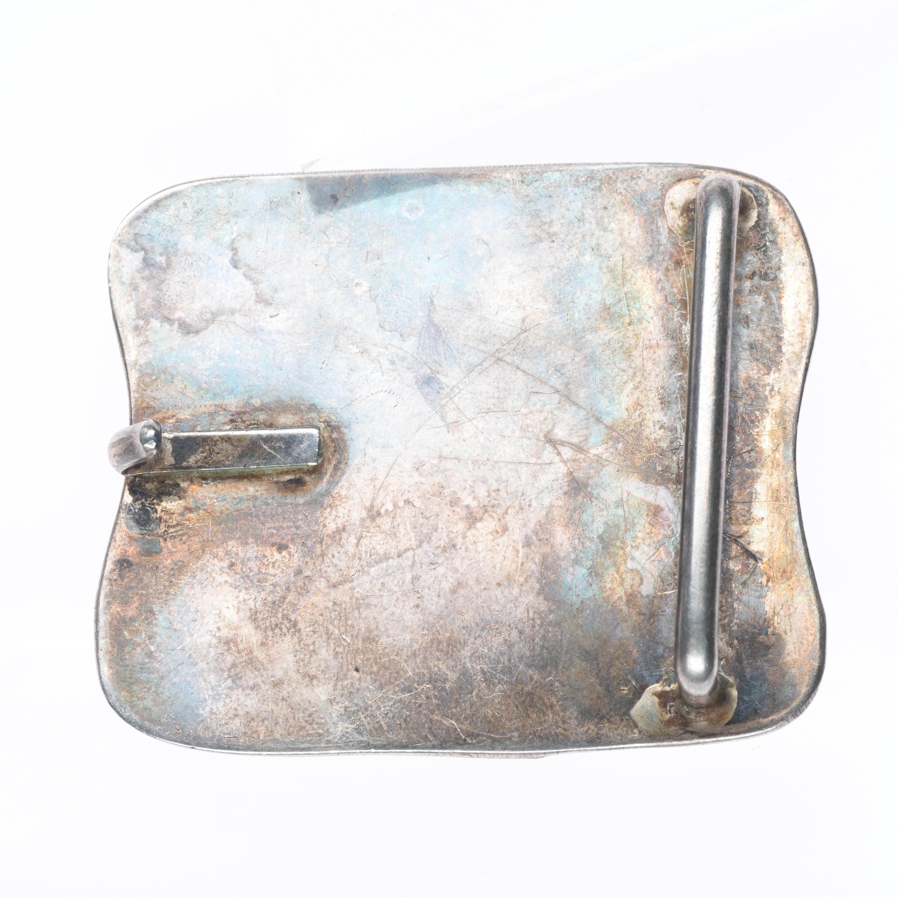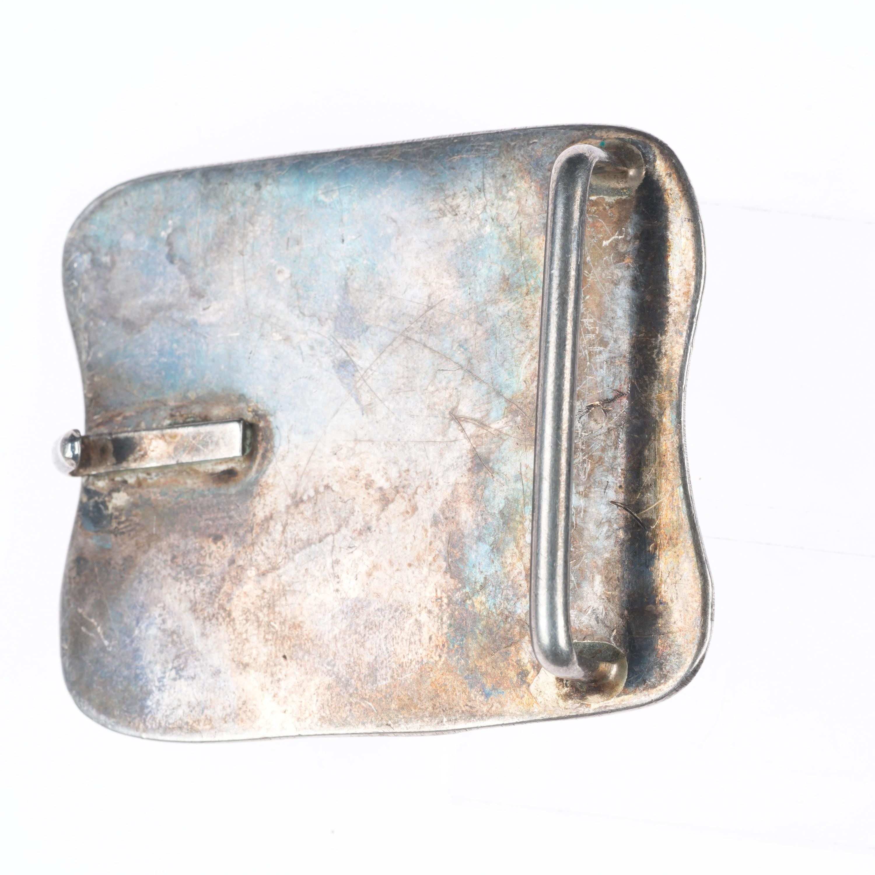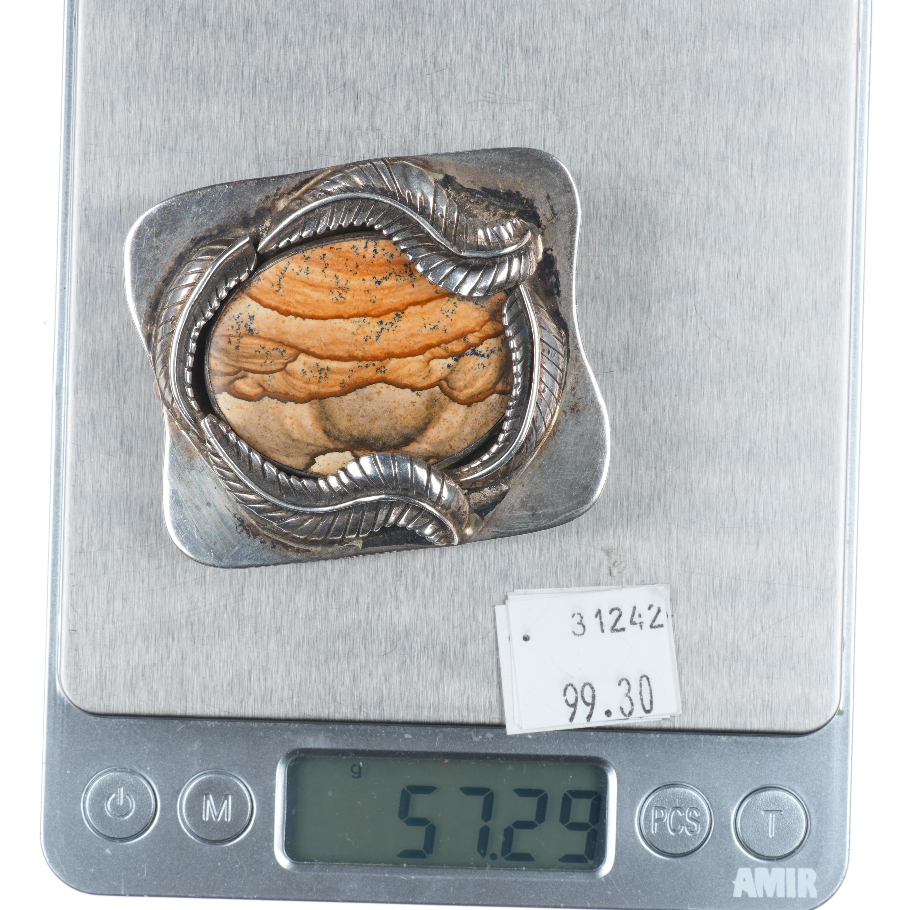Vintage Navajo sterling silver belt buckle jasper with feather design