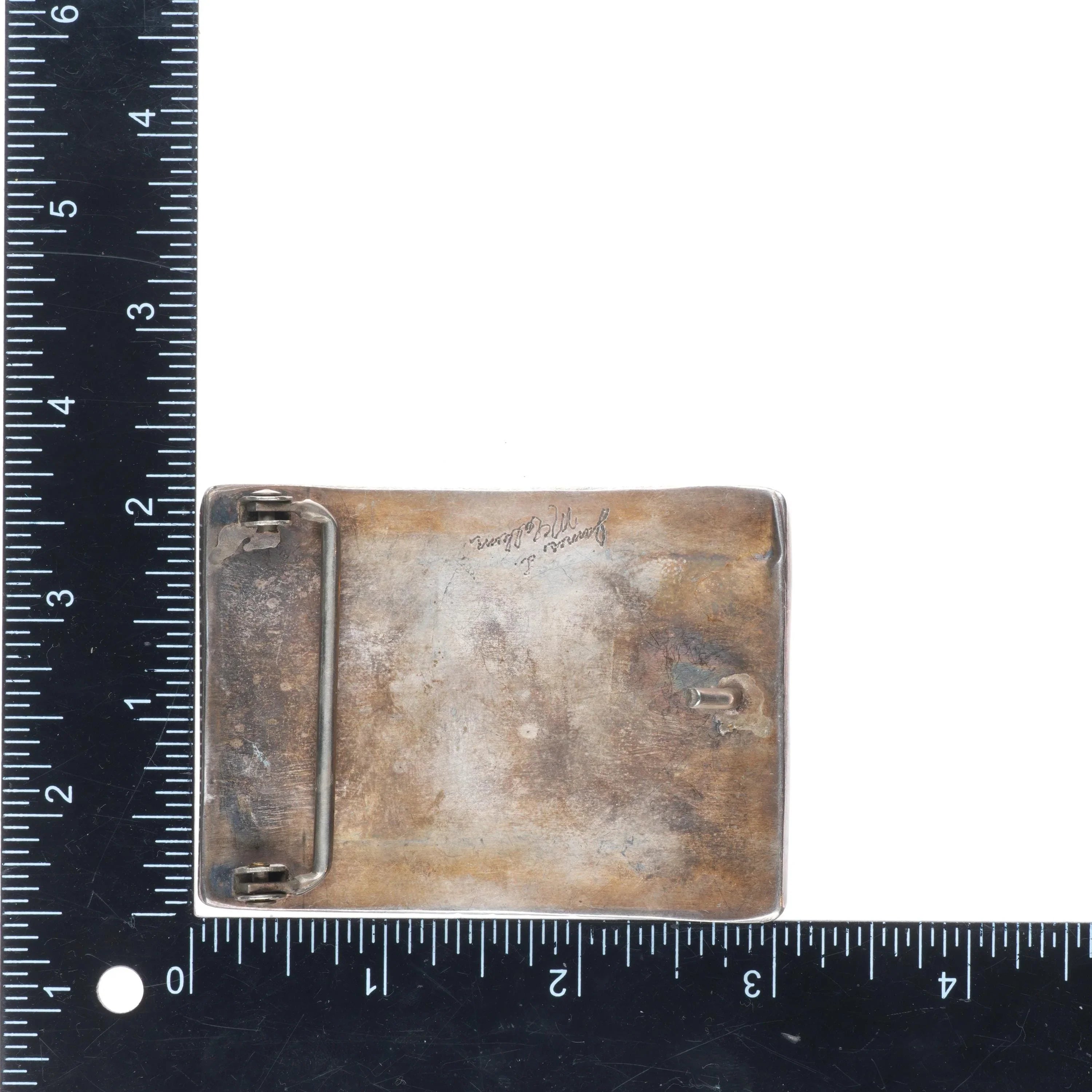 Vintage Navajo sterling silver belt buckle with three turquoise. Tested and guaranteed solid sterling silver, fits a 1.5" wide belt. Weight and measurements in pictures. Signed on back, I believe likely the original owner rather than silversmith.