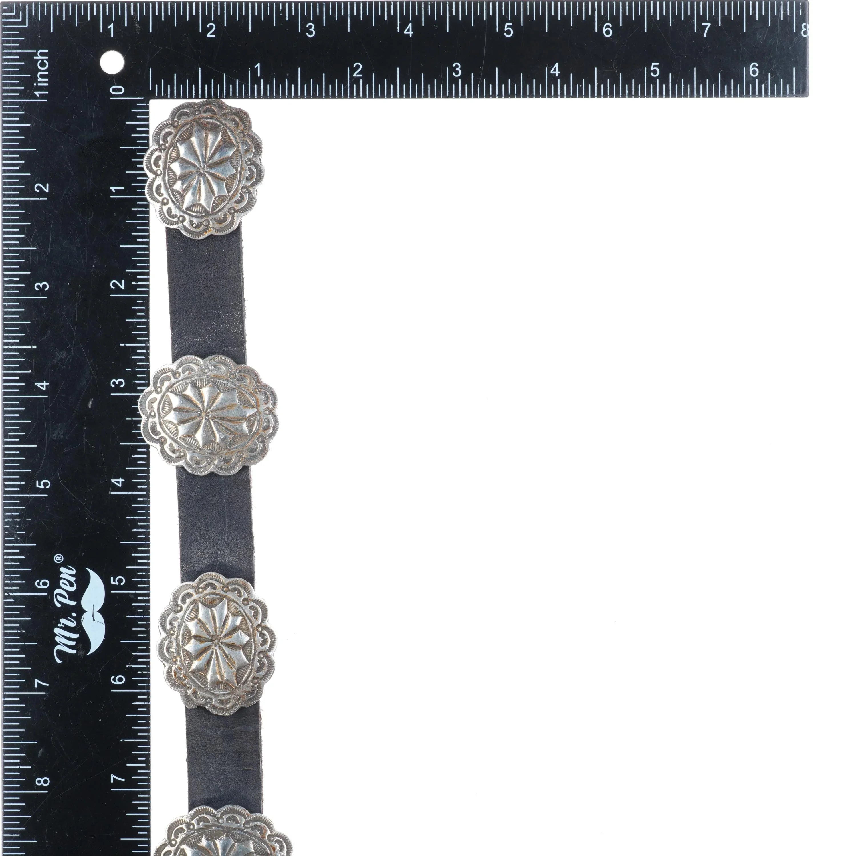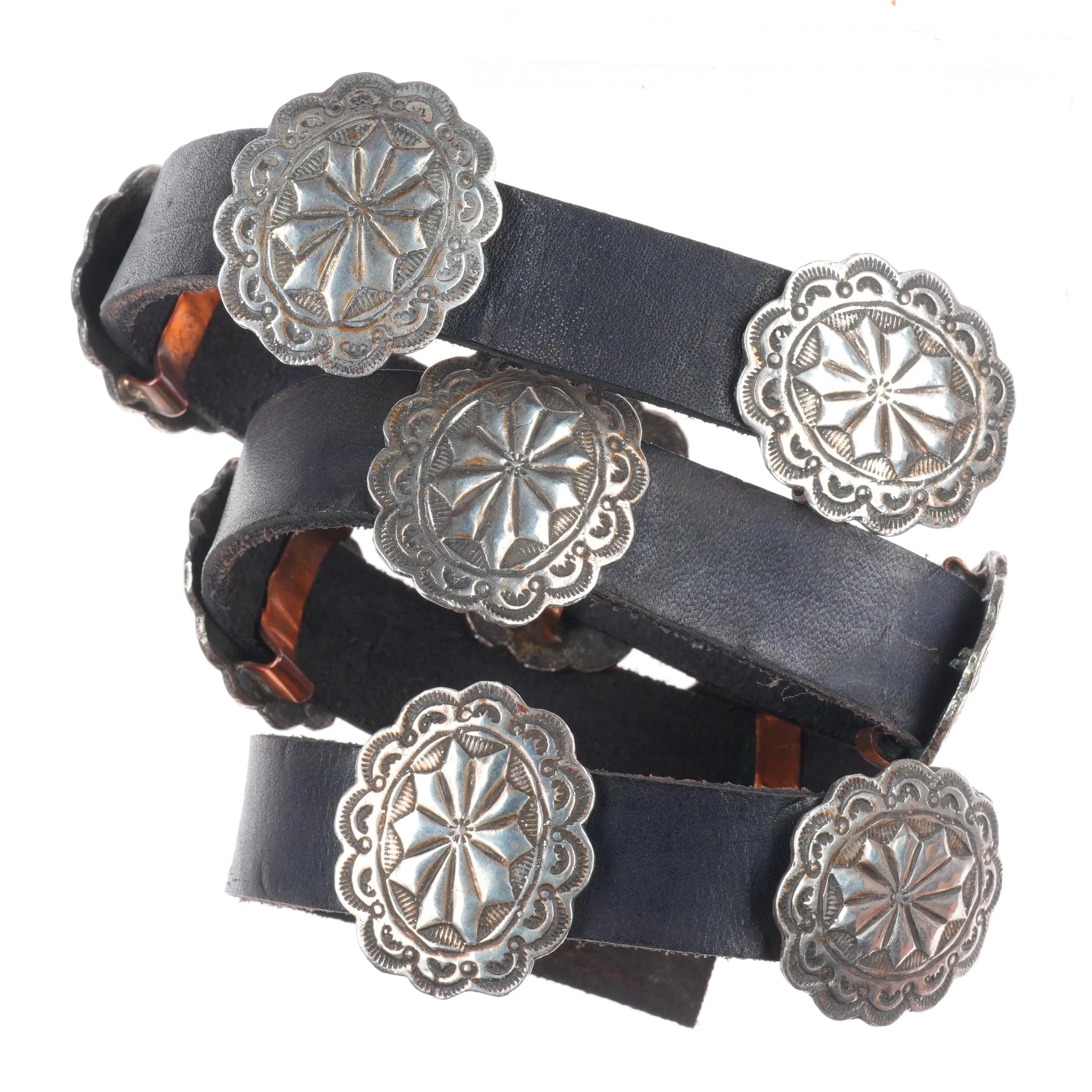 Vintage Navajo sterling silver concho hatband for cowboy hat on leather belt m