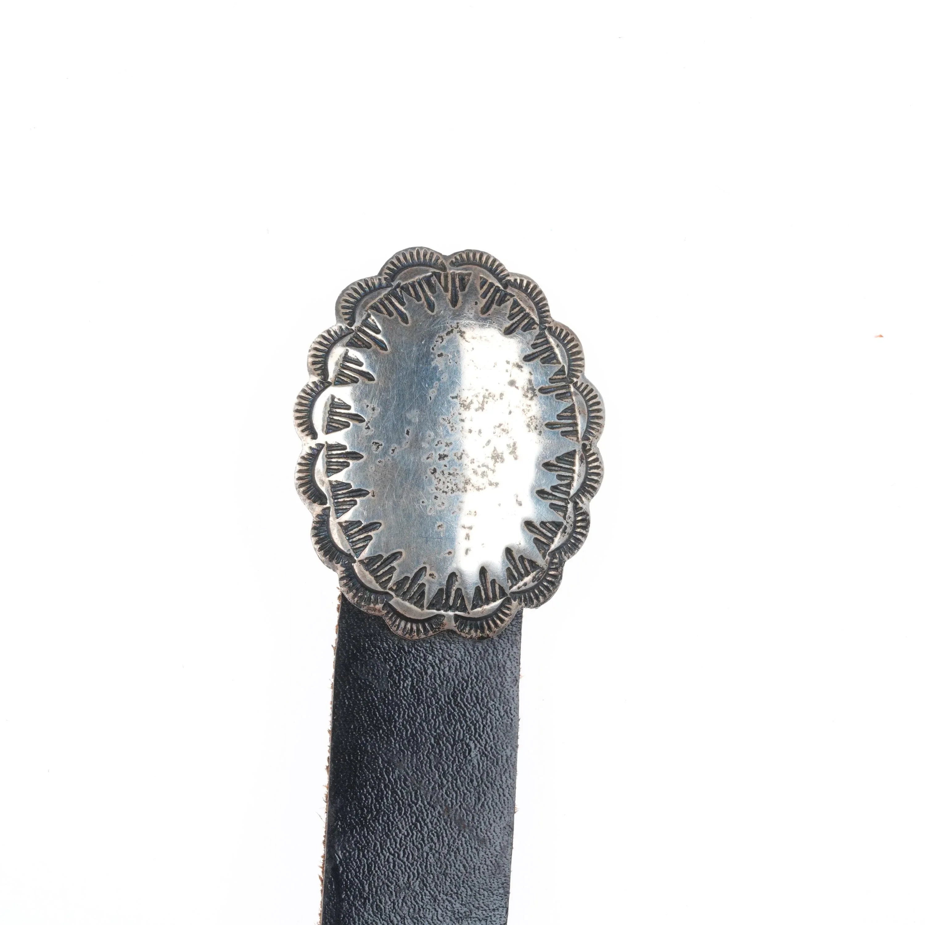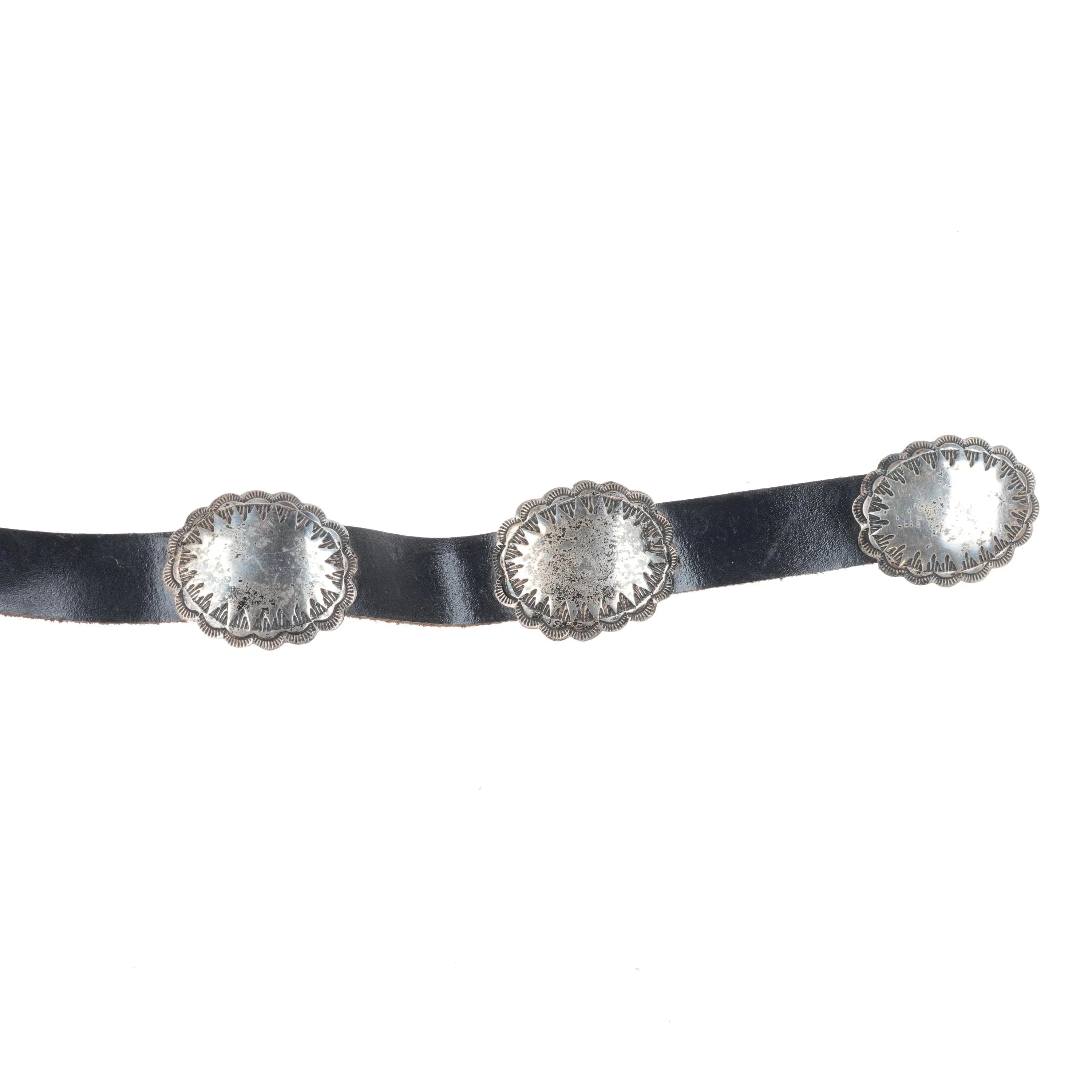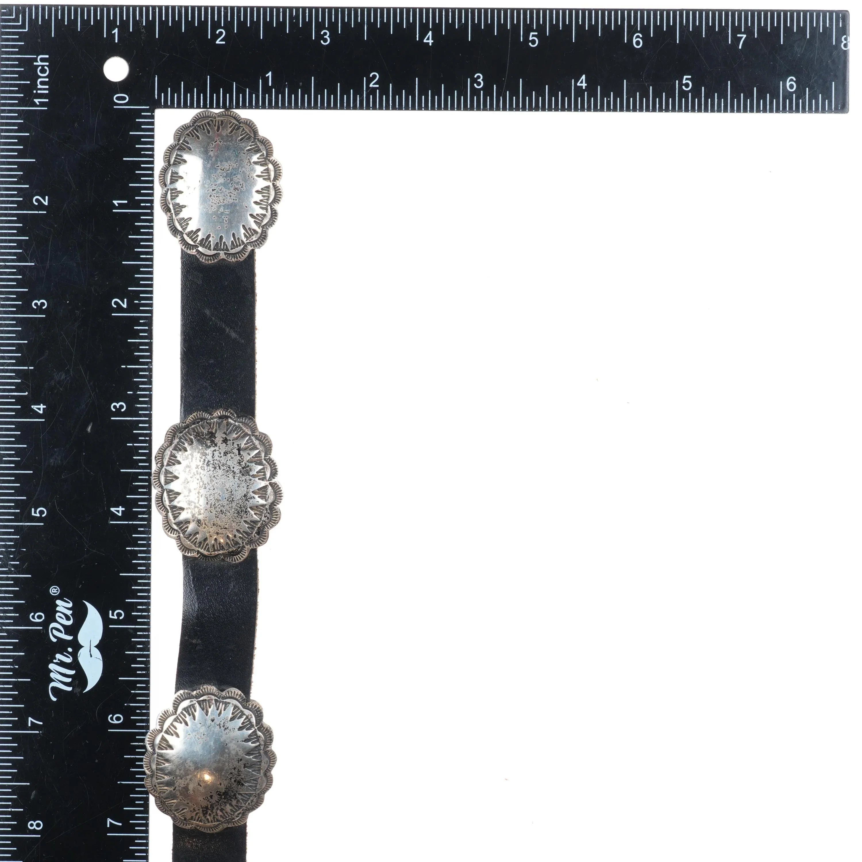 Vintage Navajo sterling silver concho hatband for cowboy hat on leather belt