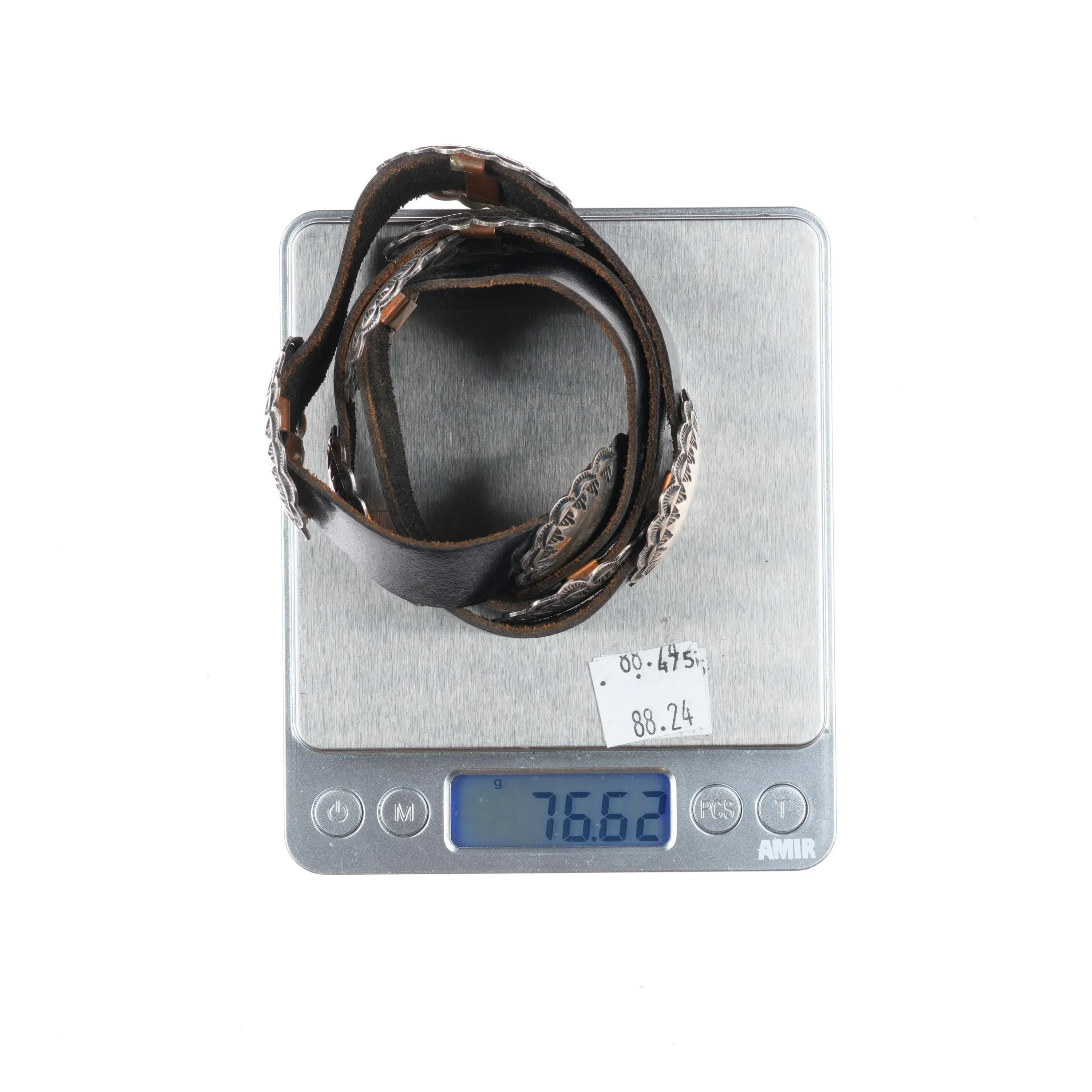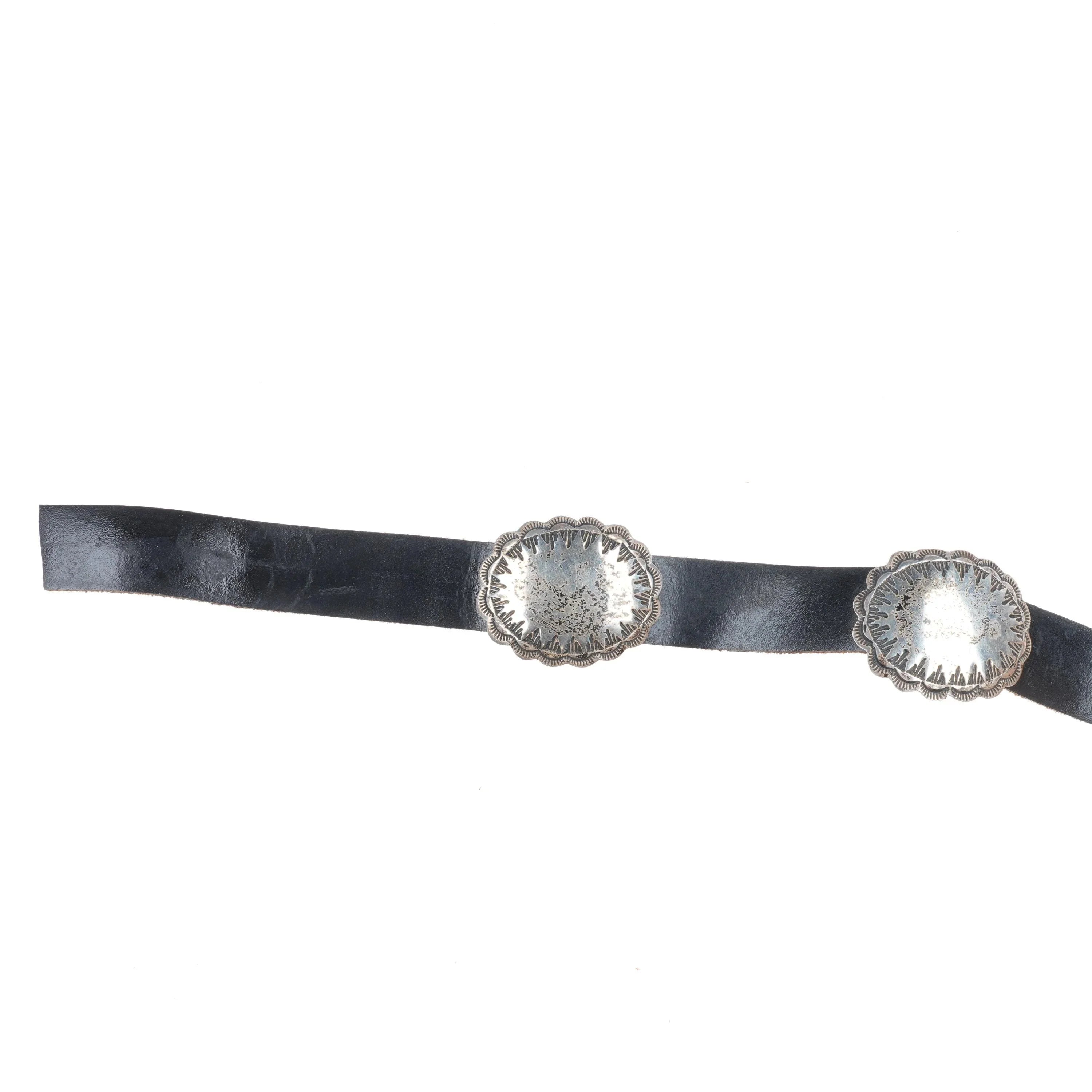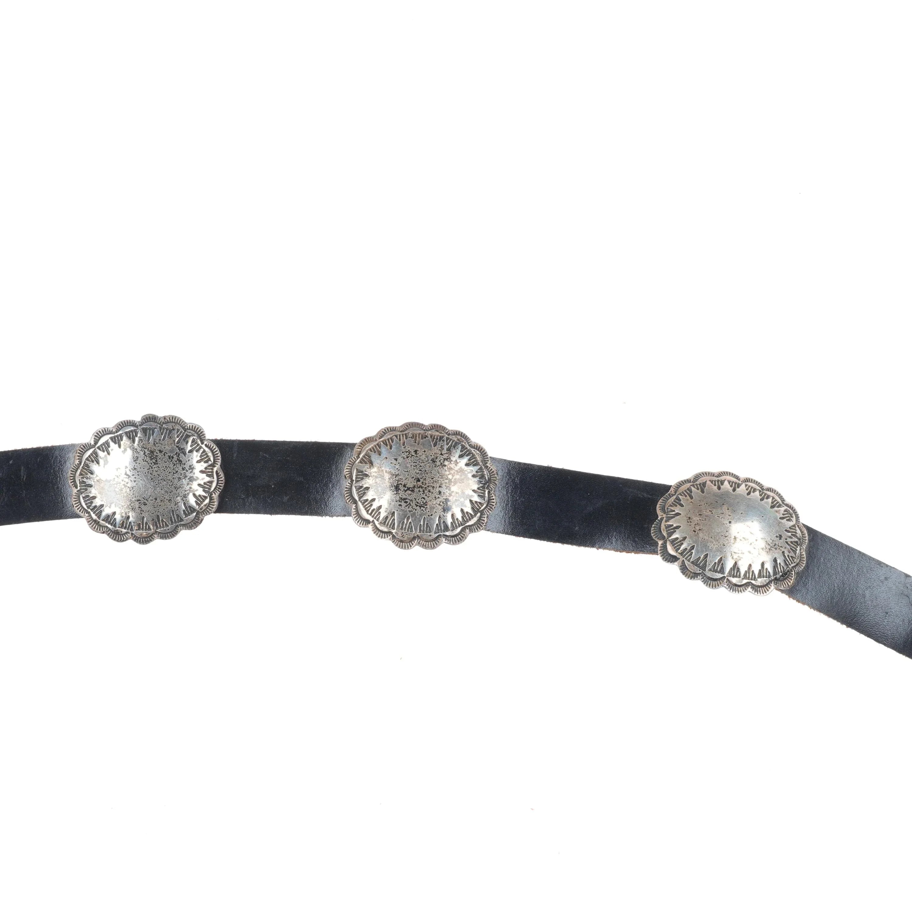 Vintage Navajo sterling silver concho hatband for cowboy hat on leather belt
