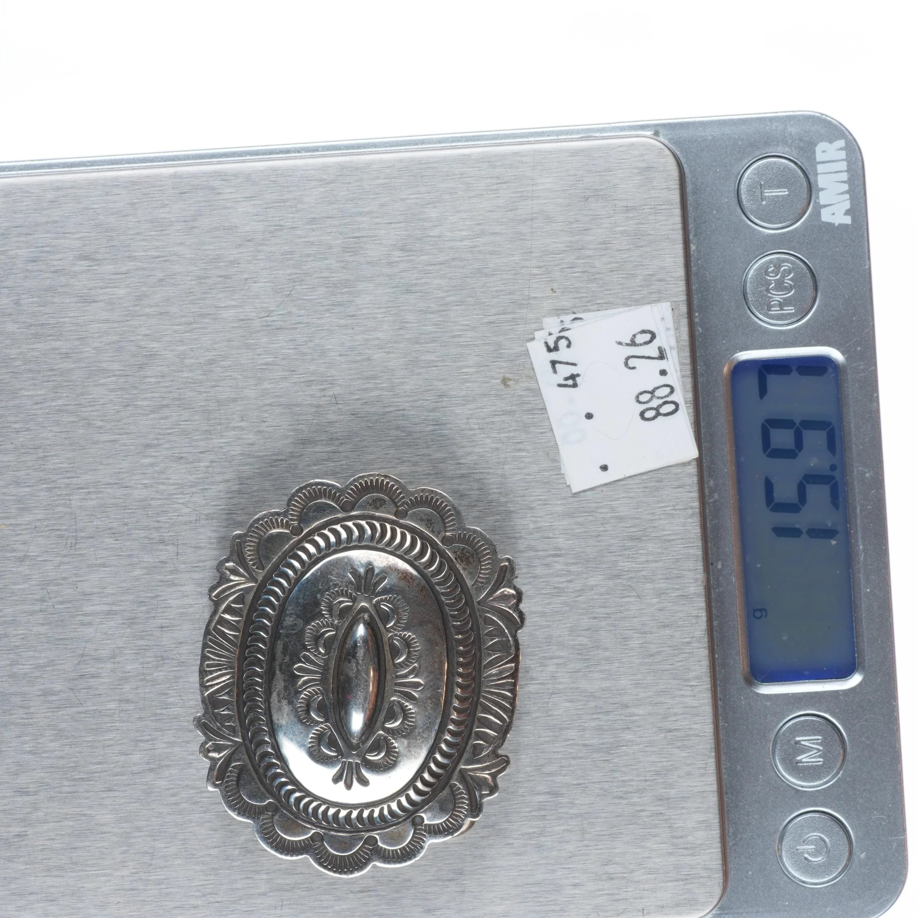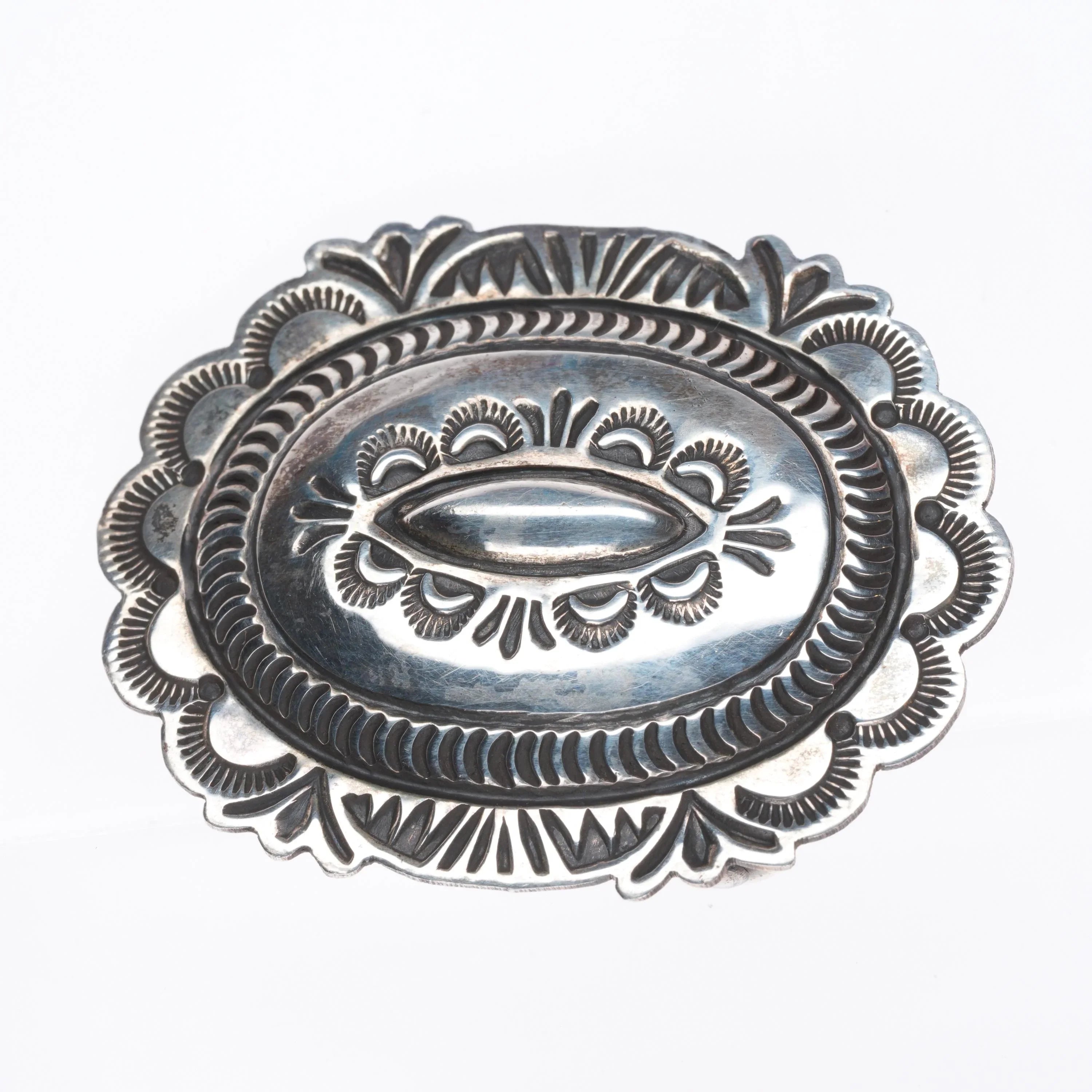 Vintage Navajo sterling silver deep stamped concho belt buckle
