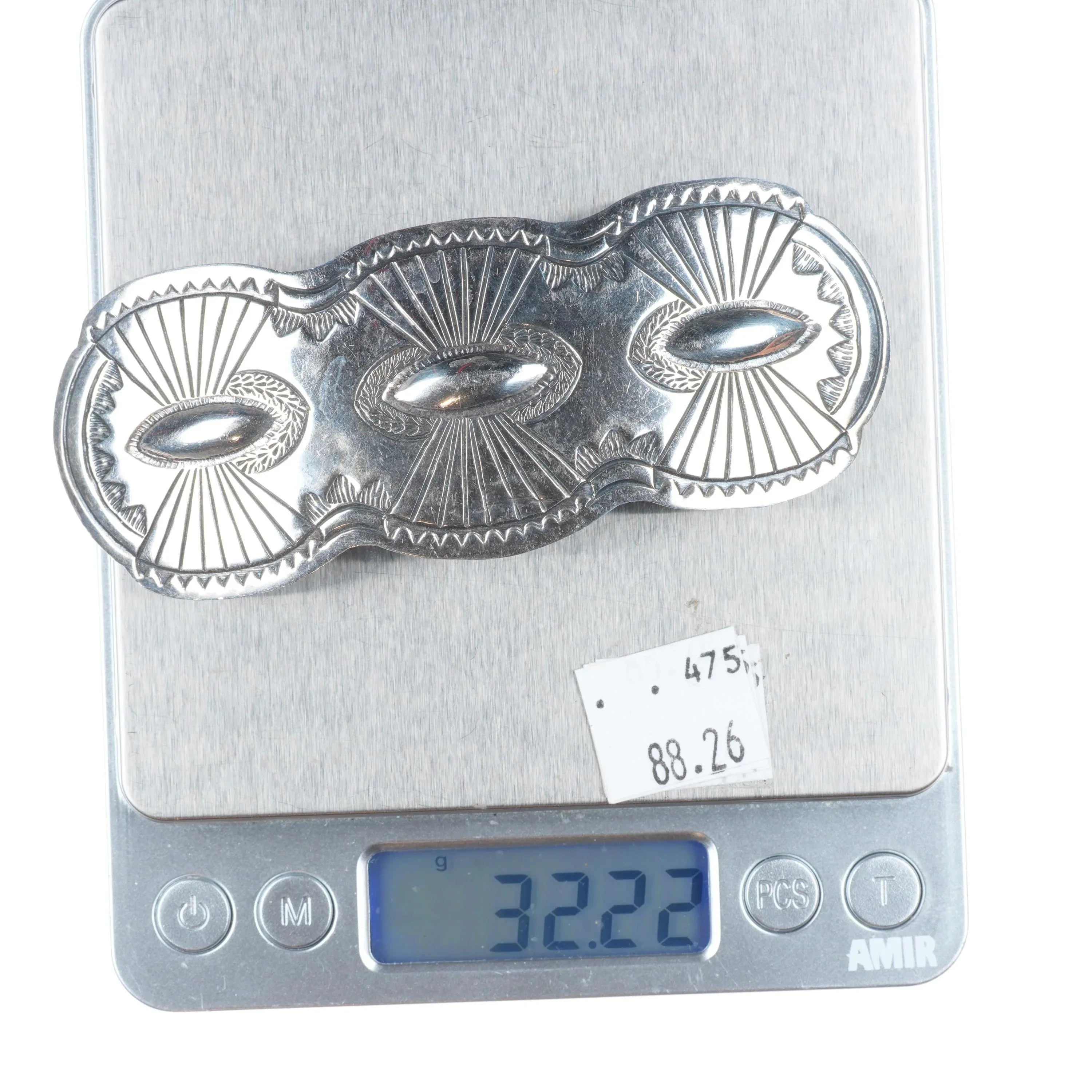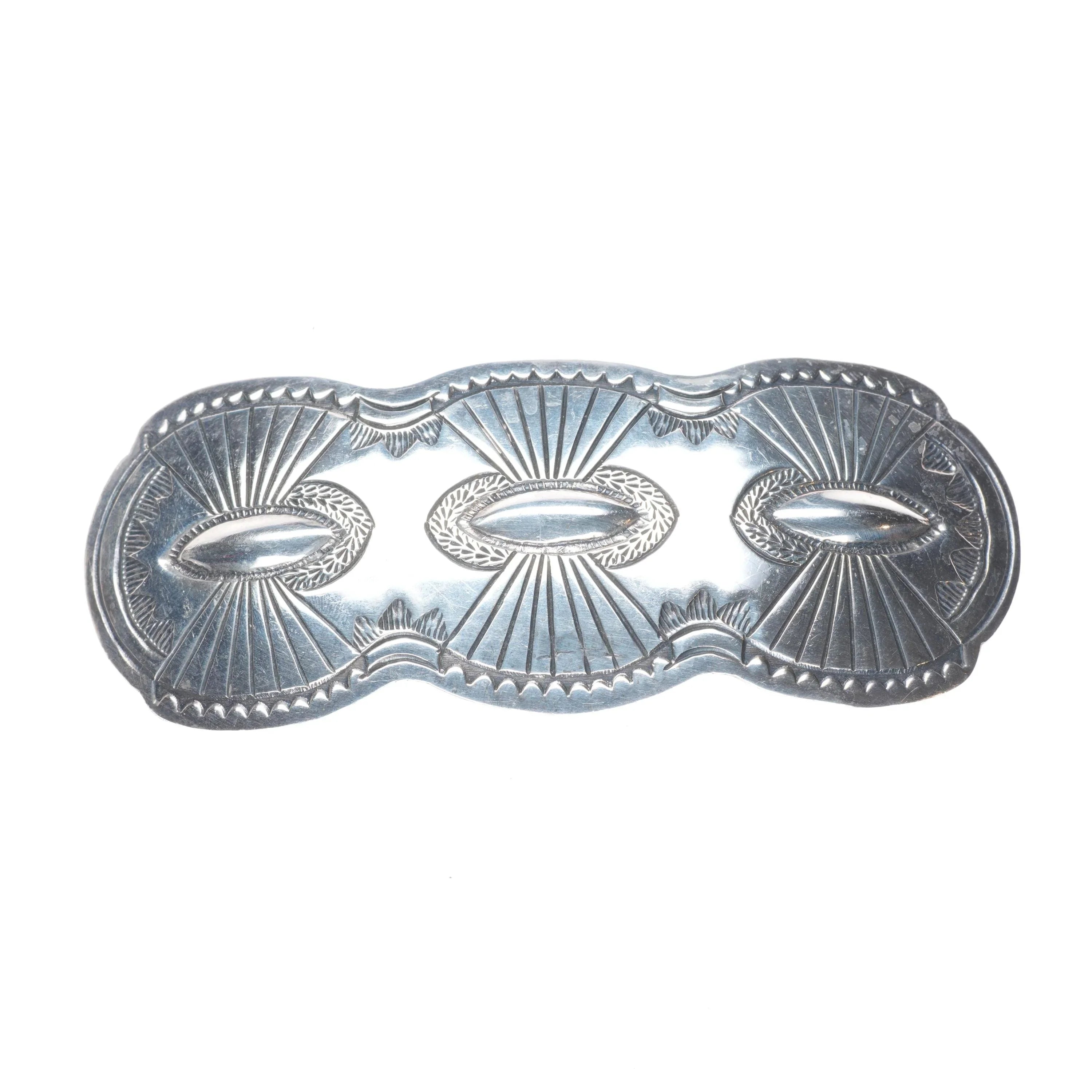 Vintage Navajo sterling silver hand stamped barrette/hair clip