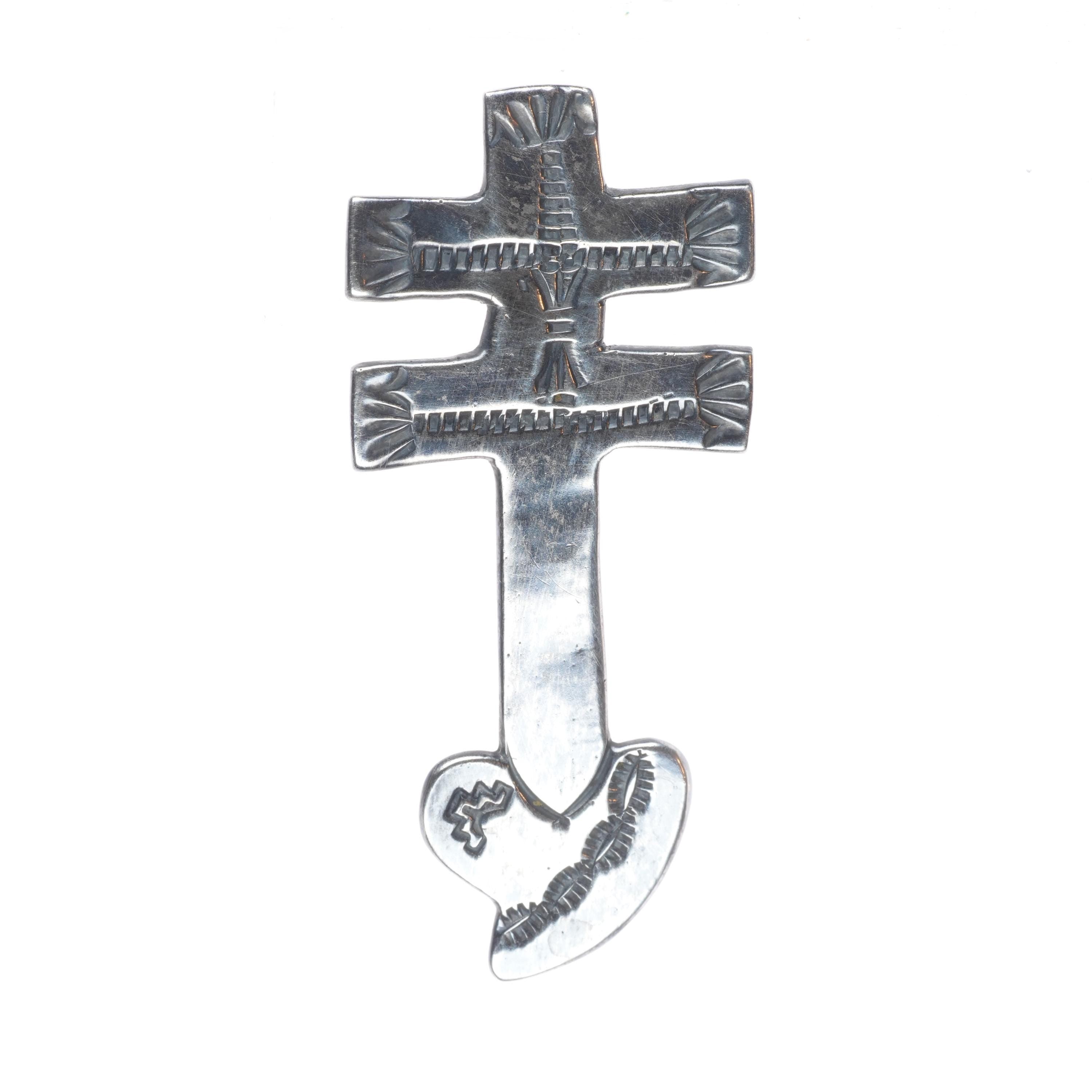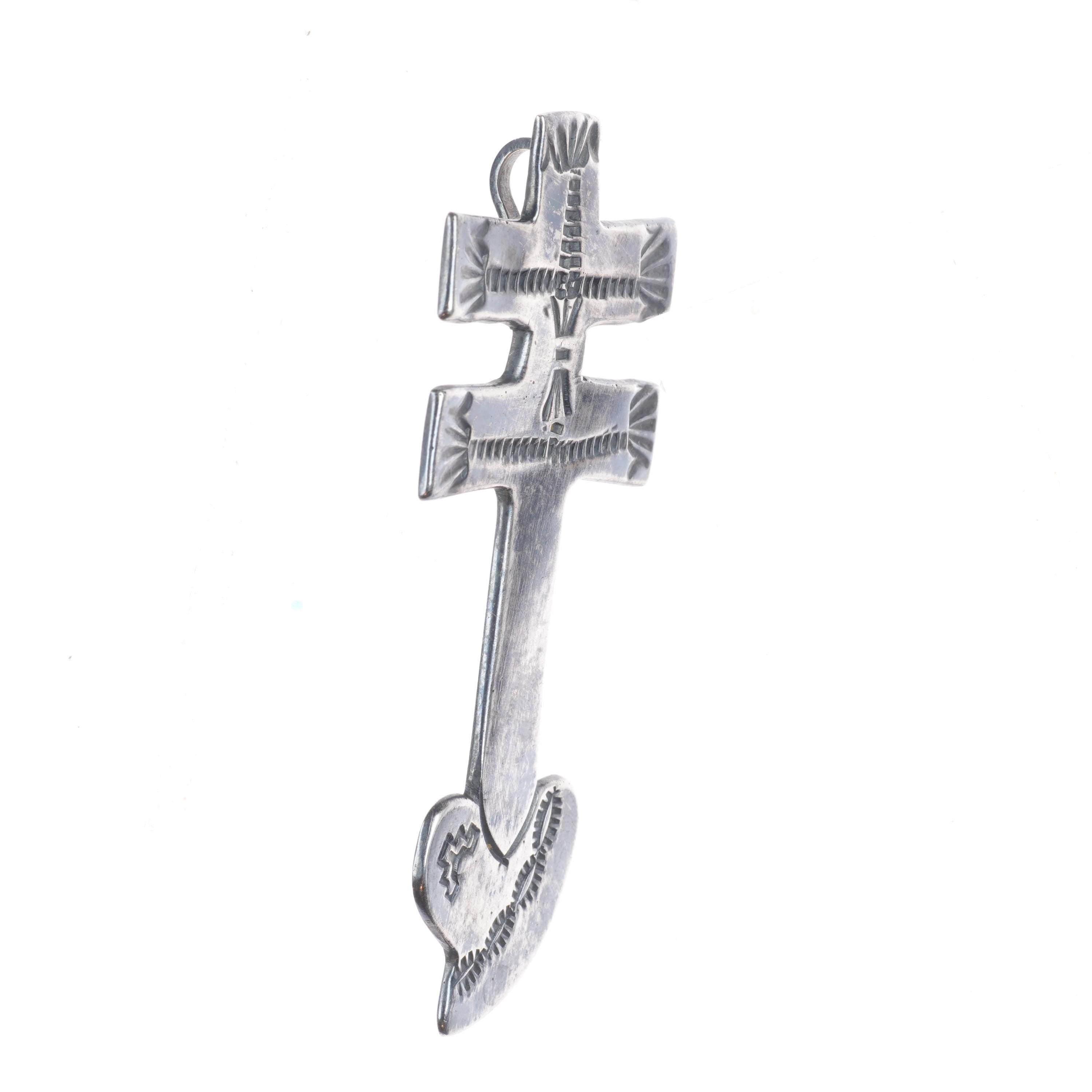 Vintage Navajo sterling silver Isleta cross pendant hand stamped