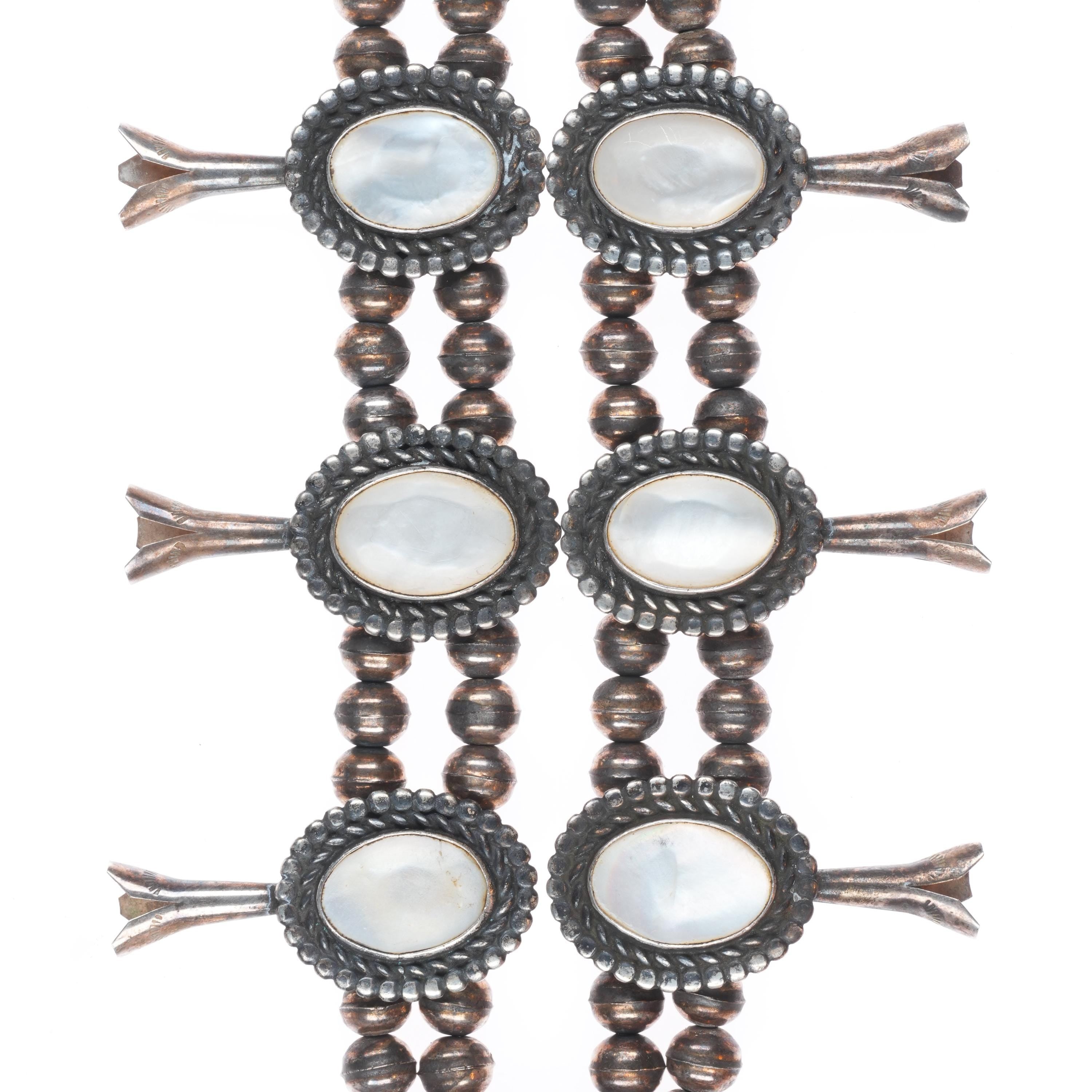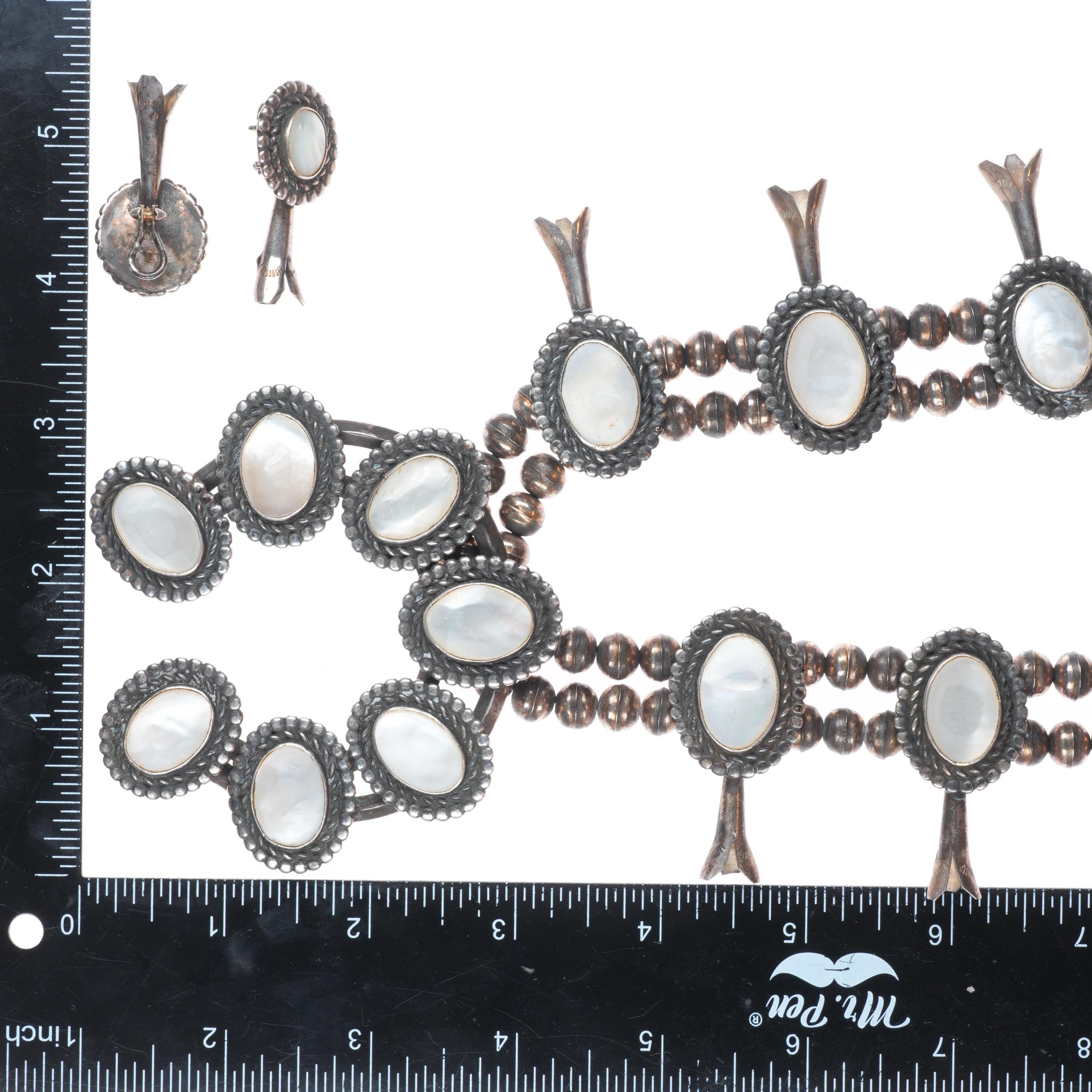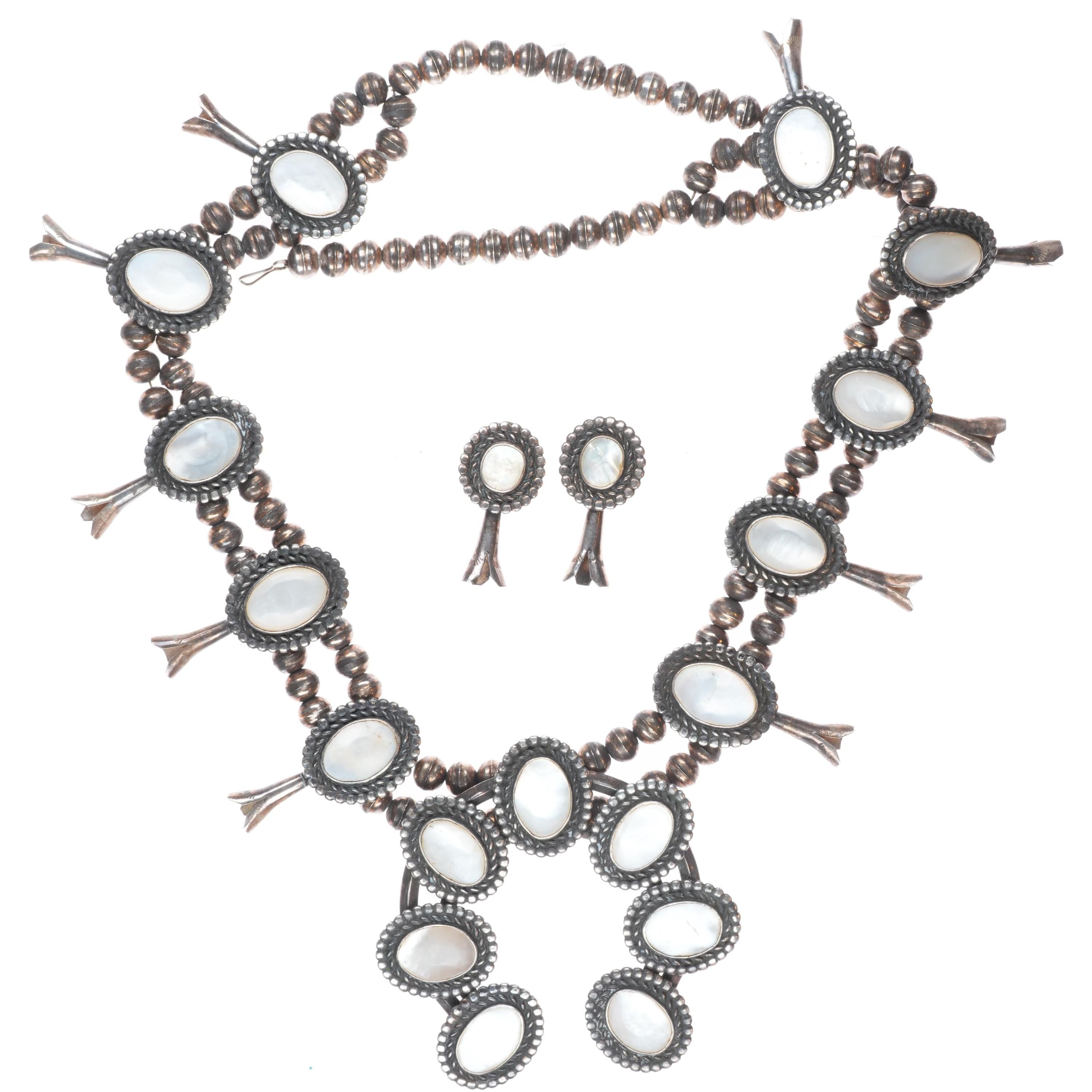 Vintage Navajo sterling silver mother of pearl squash blossom necklace/earrings