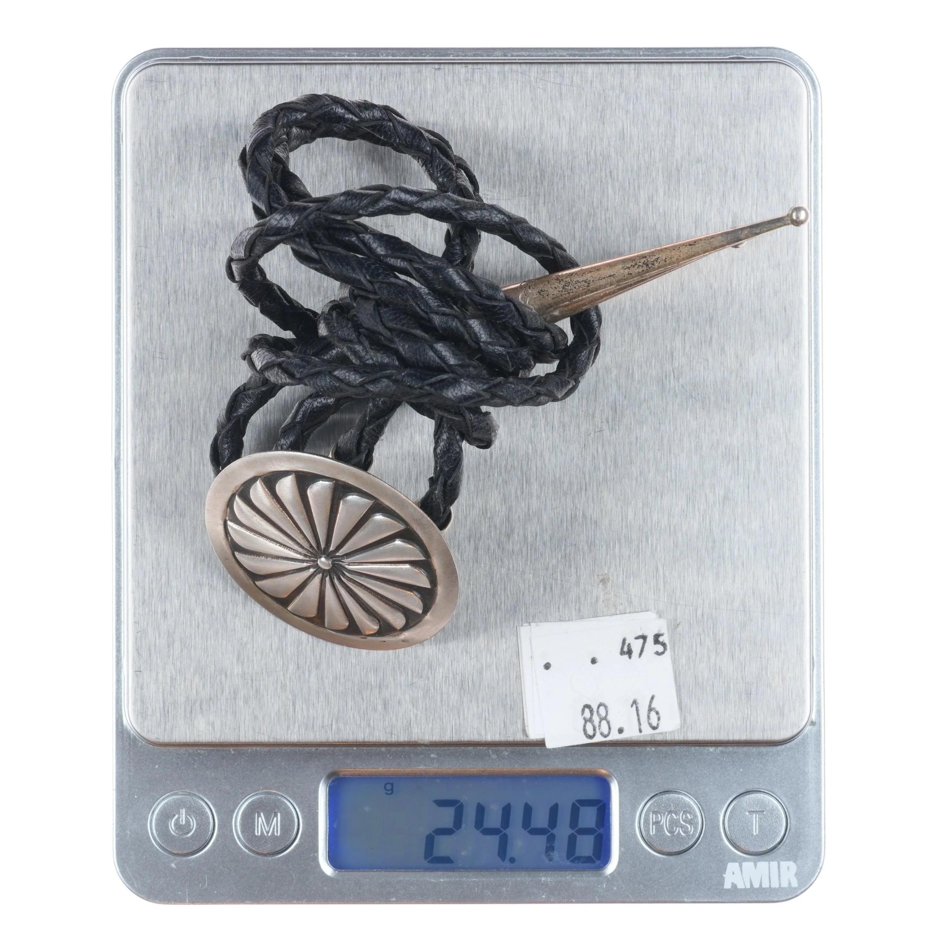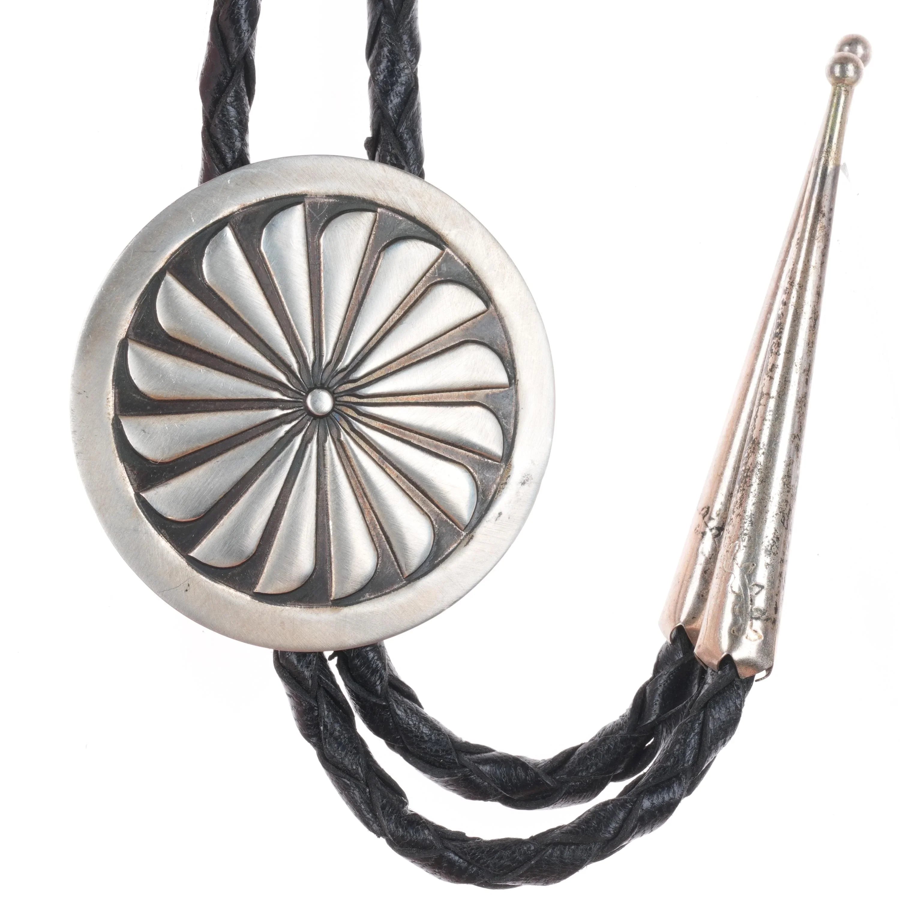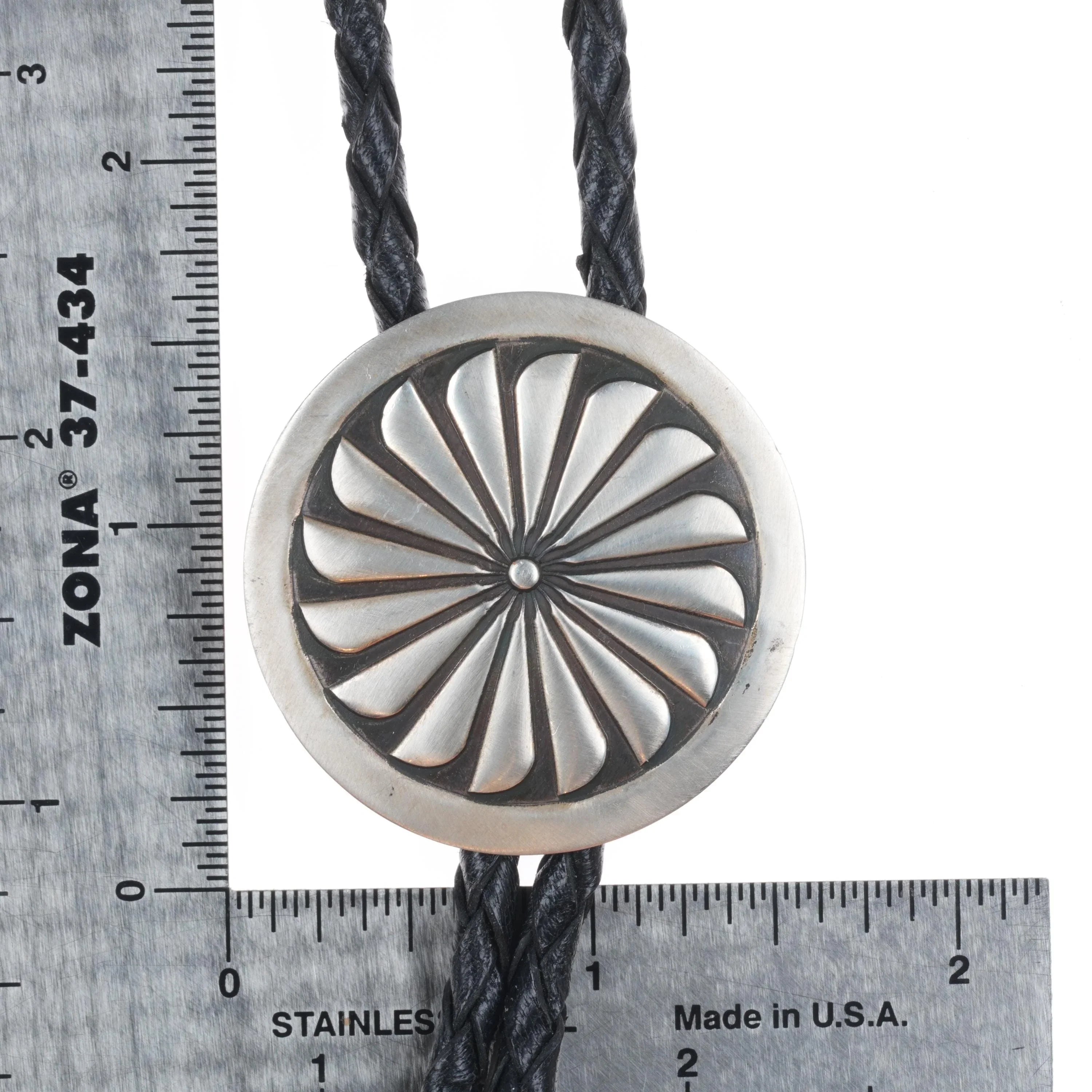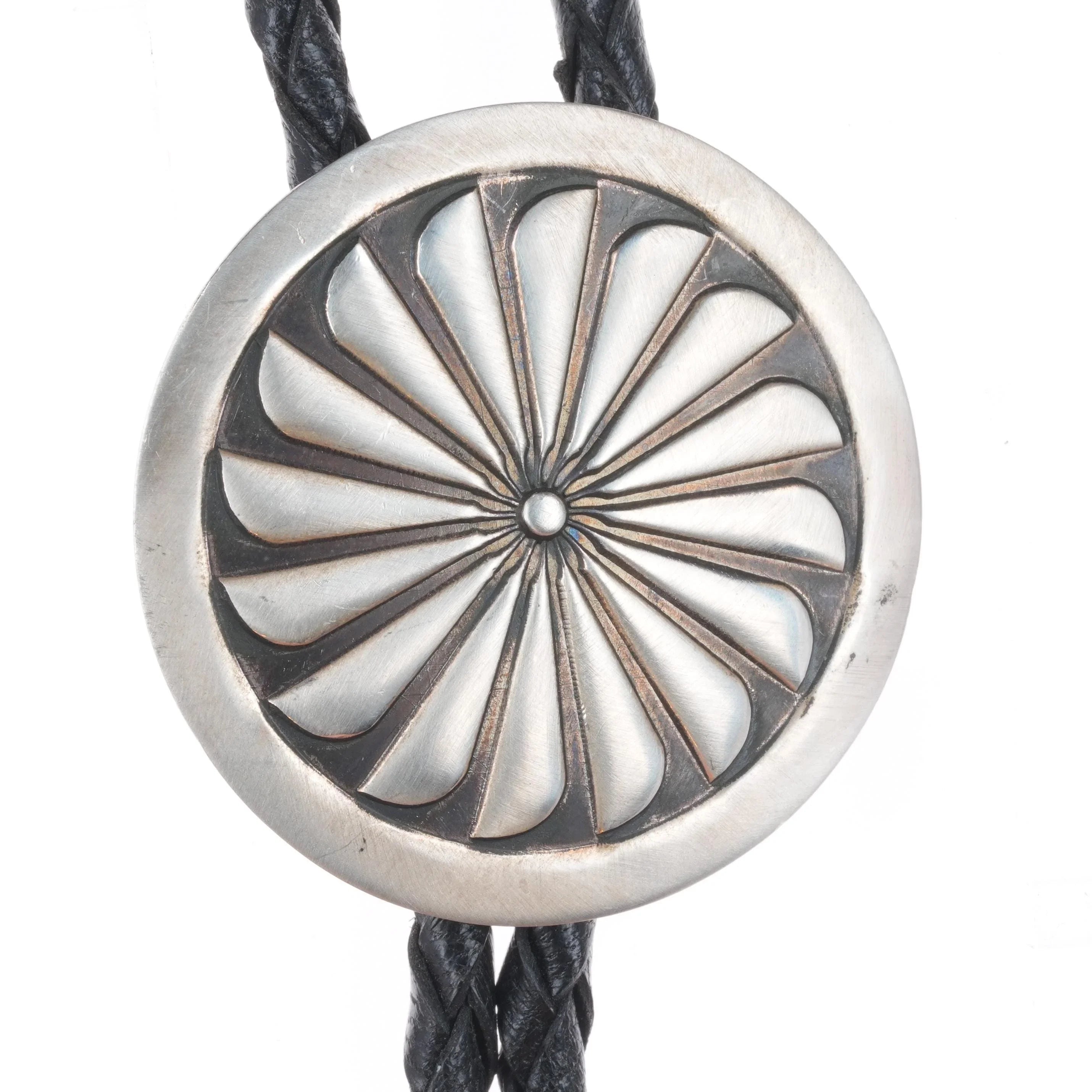 Vintage Navajo sterling silver stamped pinwheel design bolo tie