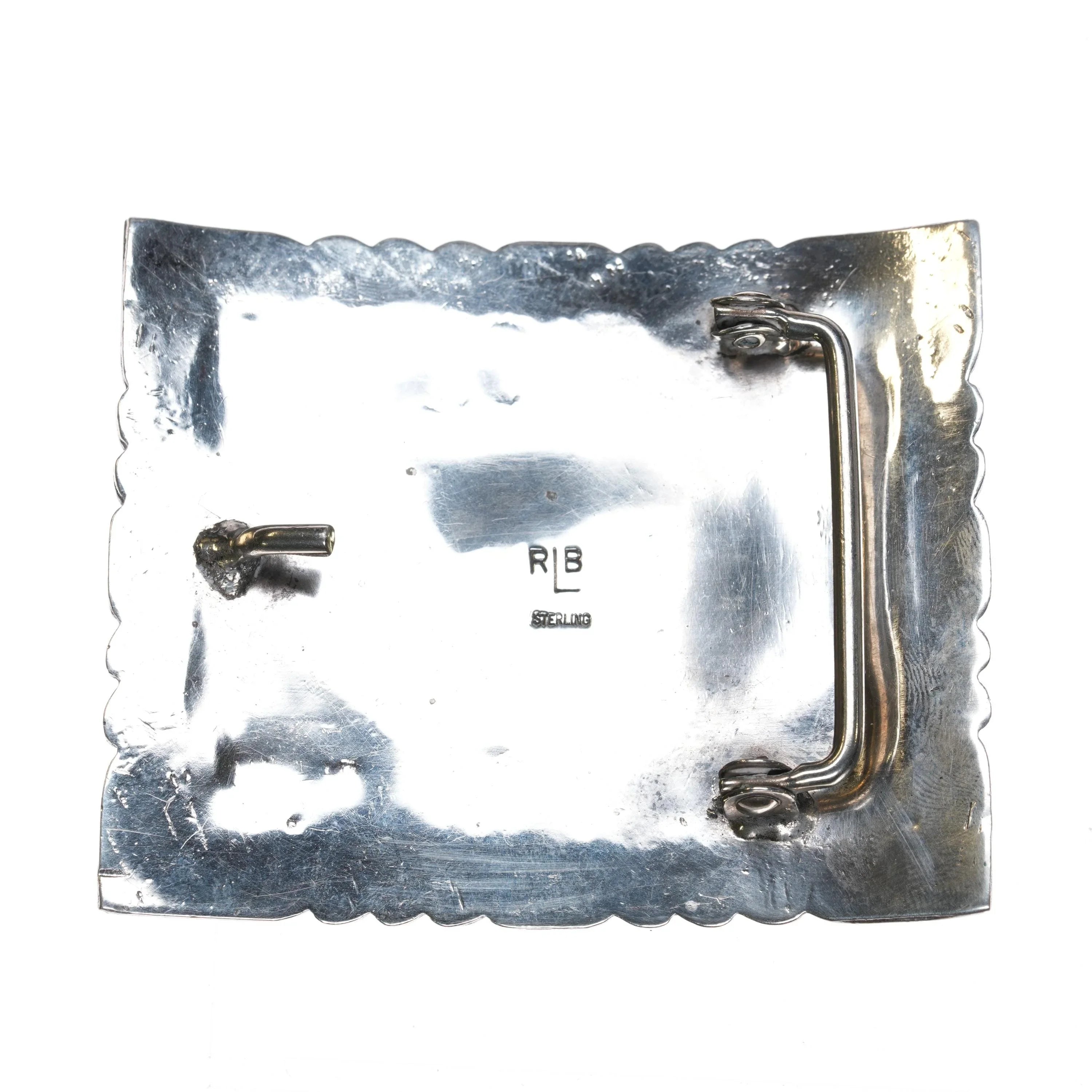 Vintage Robert and Bernice Leekya belt buckle with large turquoise stone. Solid sterling silver and with weight and measurements in the pictures. Fully functional with age appropriate wear, no damage unless noted. Marked as shown, fits up to a 1.5" belt.