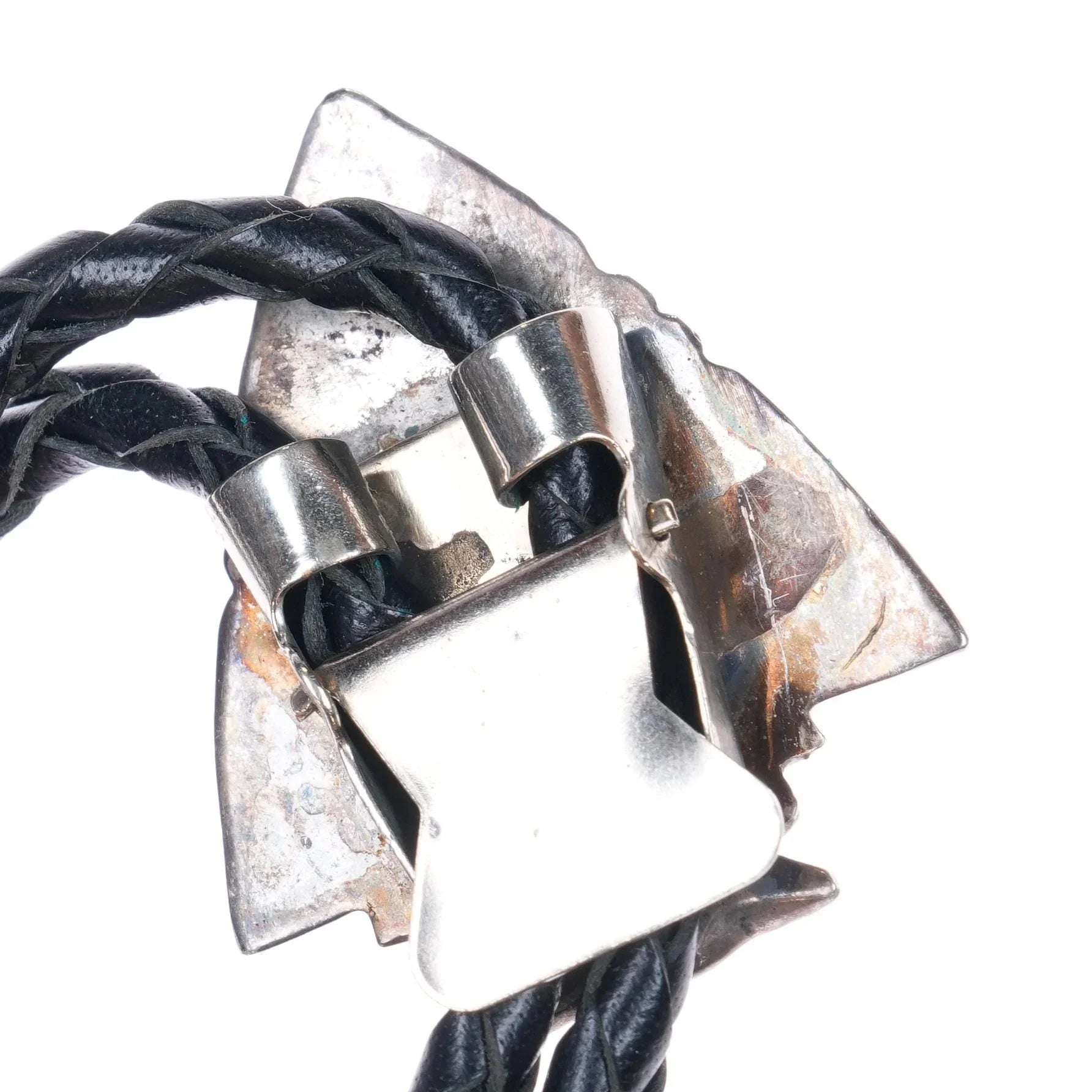 Vintage Southwestern sterling silver inlaid turquoise arrowhead form bolo tie