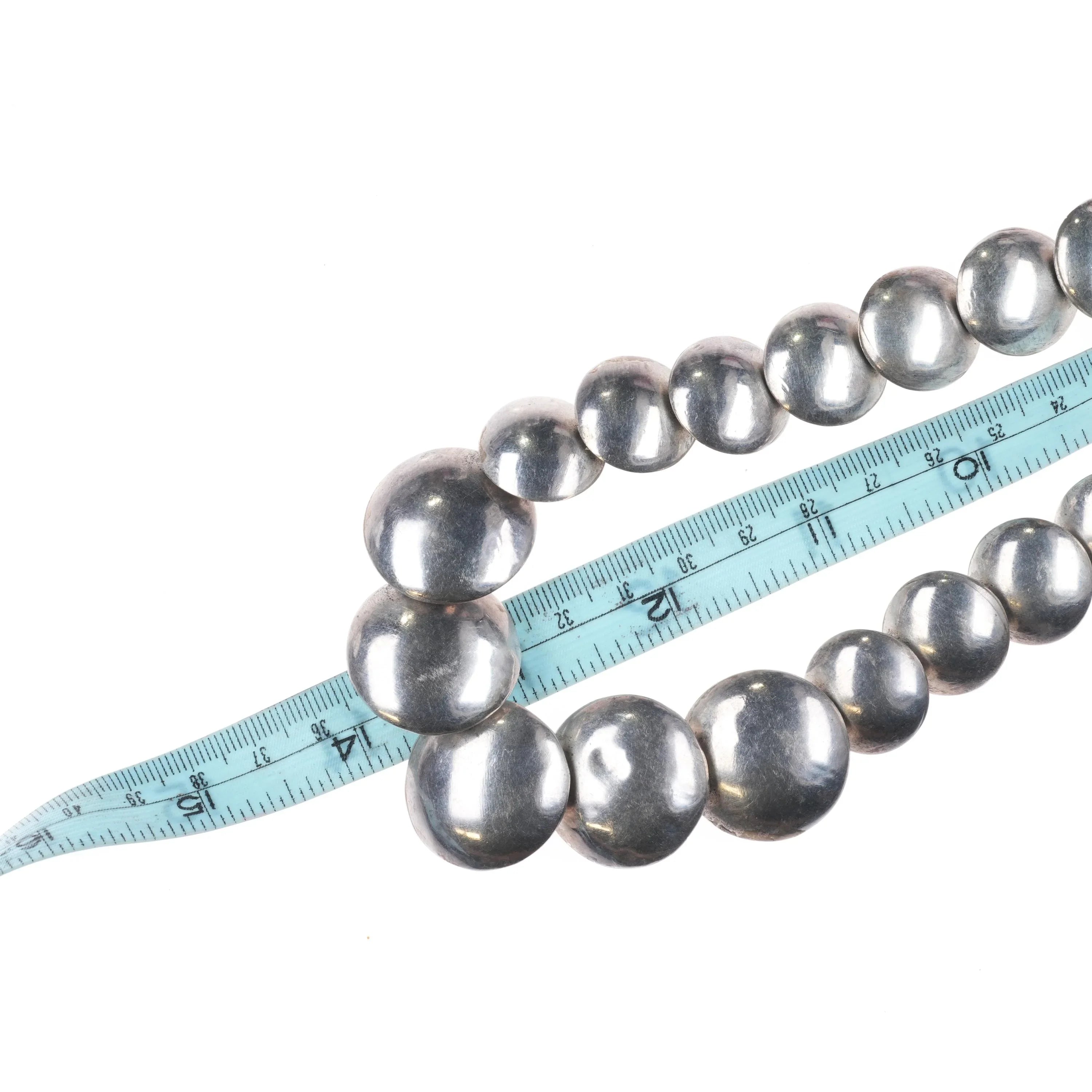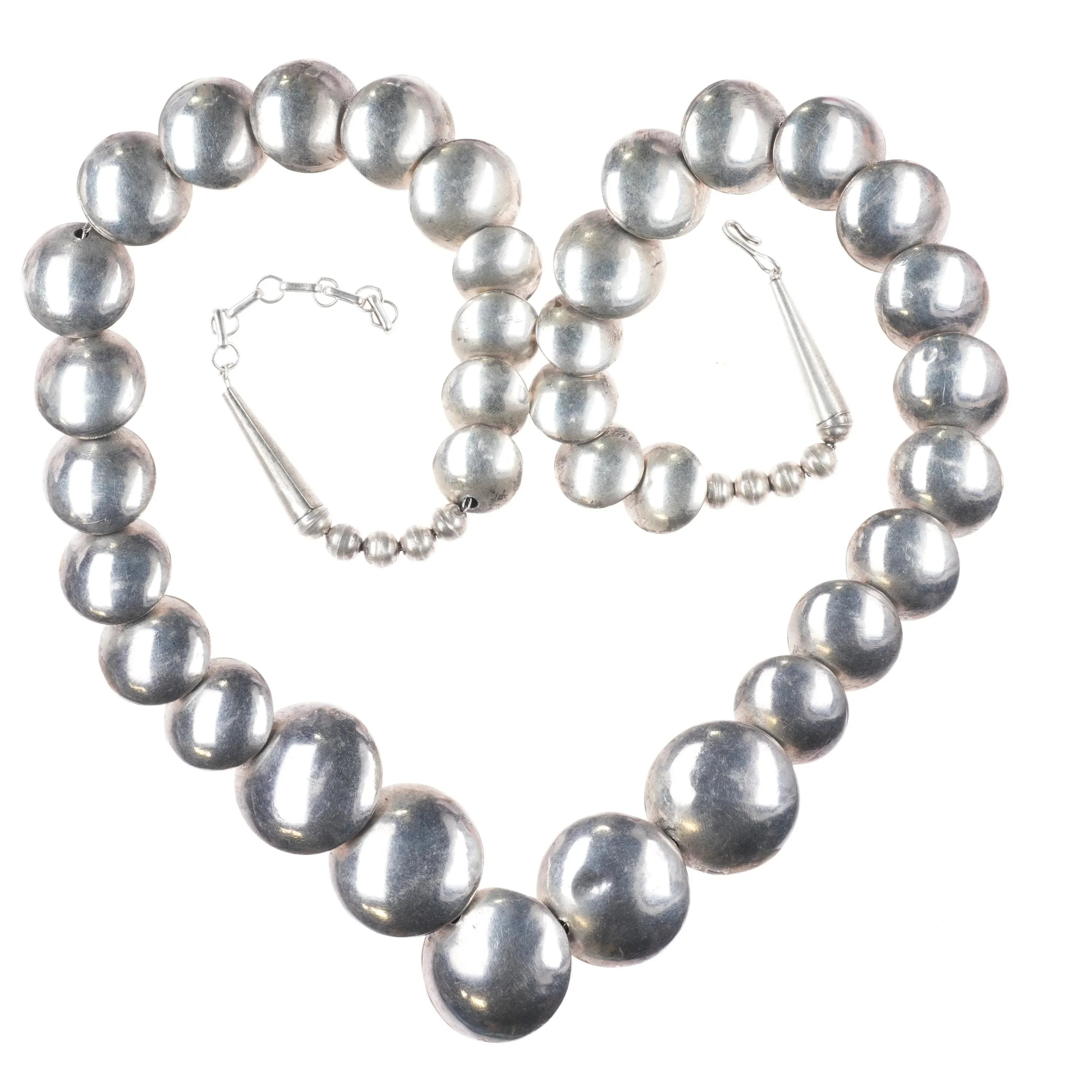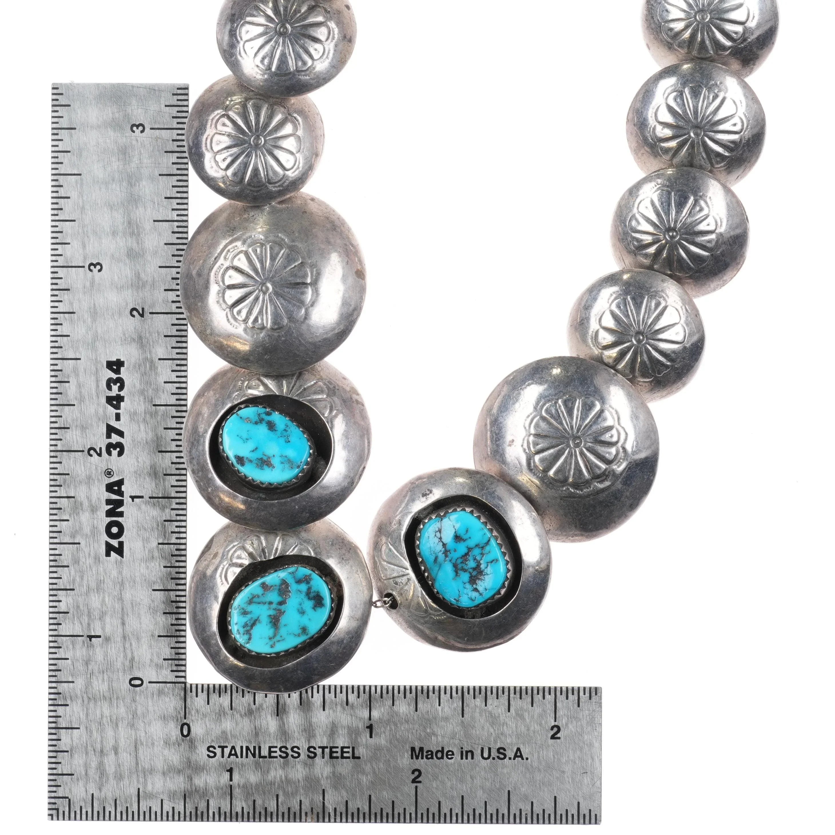 Vintage Southwestern sterling silver pillow bead necklace w/turquoise shadowbox