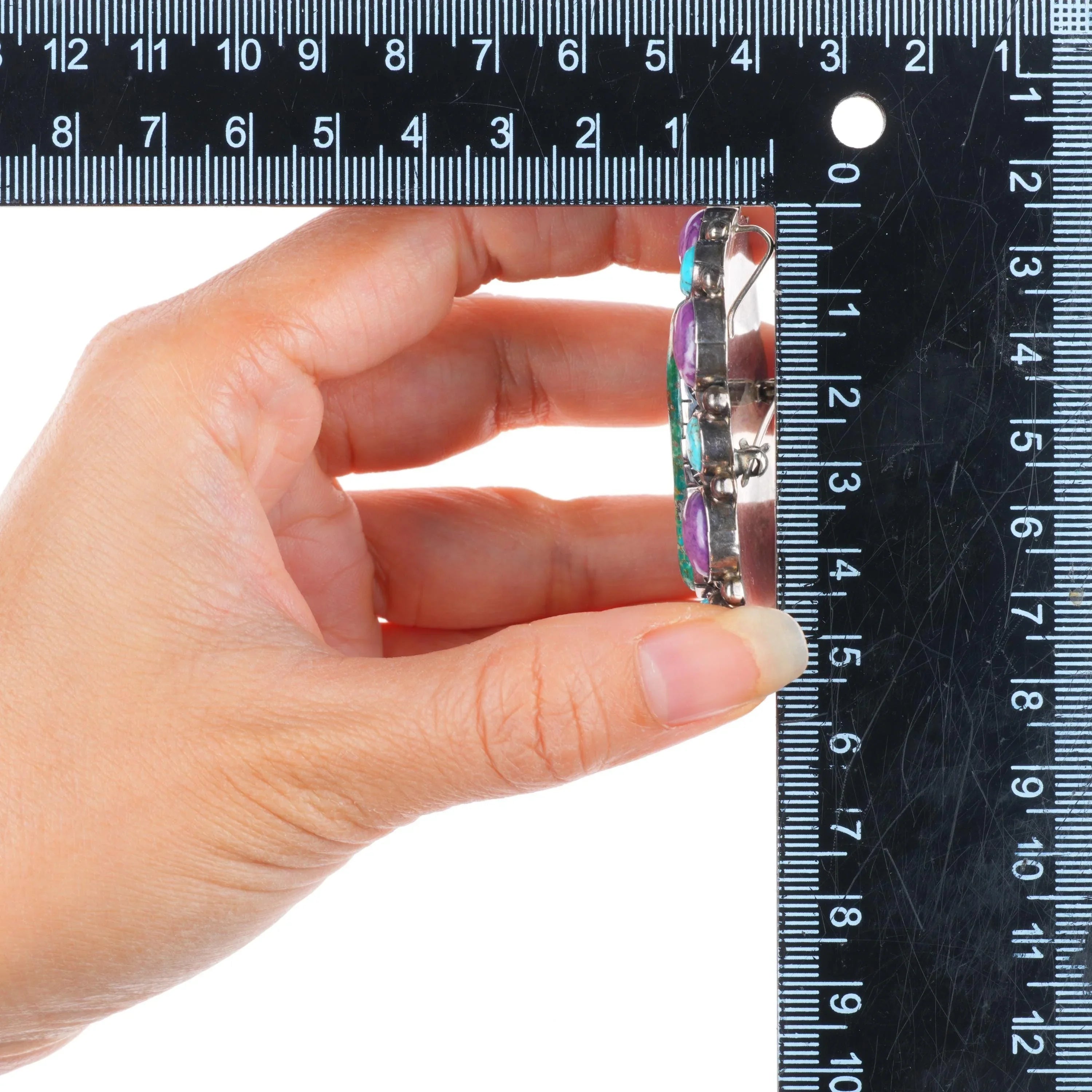 Vintage southwestern sterling silver turquoise /purple stone cluster pendant. Solid sterling silver tested and guaranteed with weight and measurements in the pictures. No issues, circa last quarter of the 20th century. Unknown hallmark, unknown purple stone.