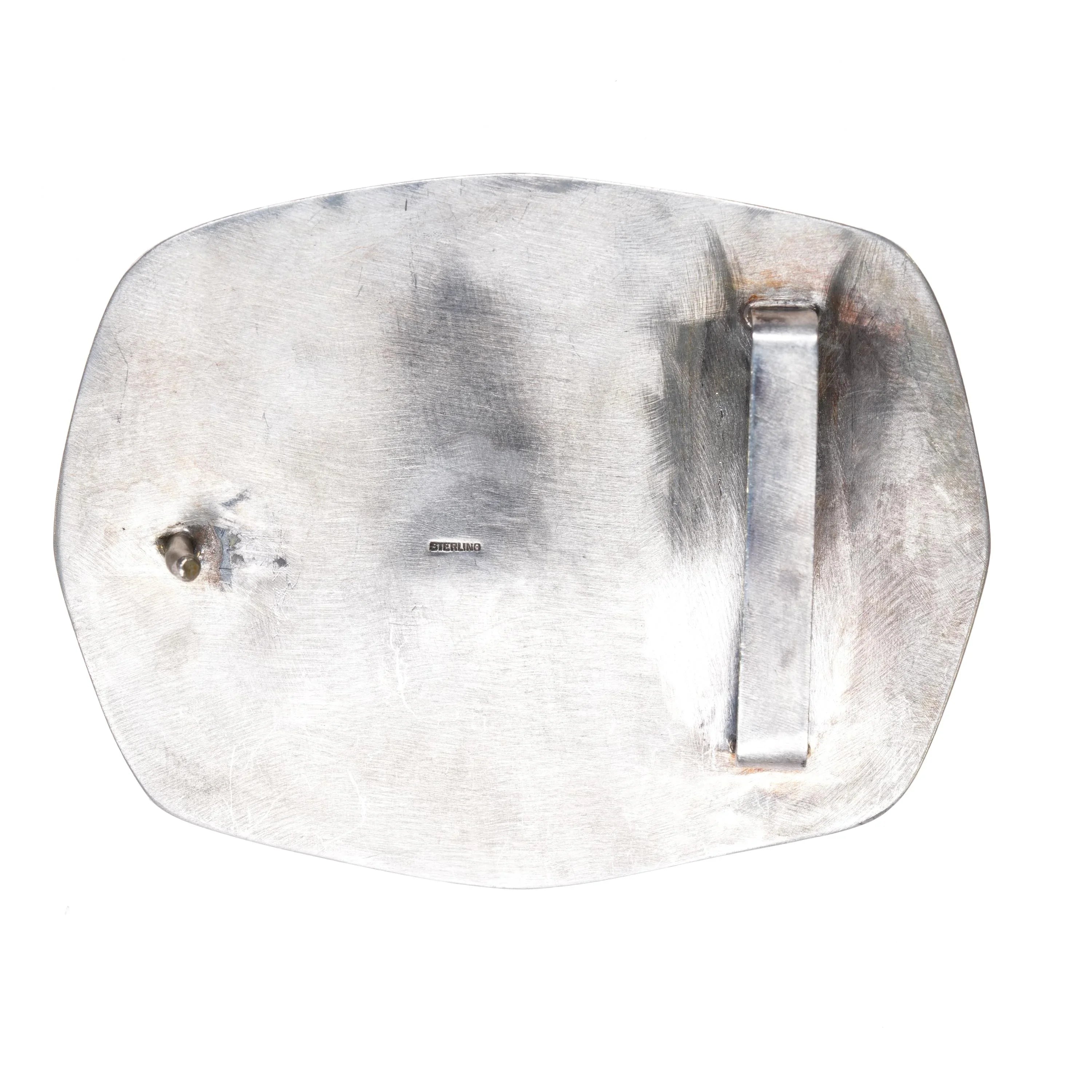 Vintage sterling silver mother of pearl/spiny oyster Spondylus belt buckle. Solid sterling silver (tested) buckle with weight and measurements in pictures.. Fits up to a 1.5" belt. No issues, appears possibly unworn.