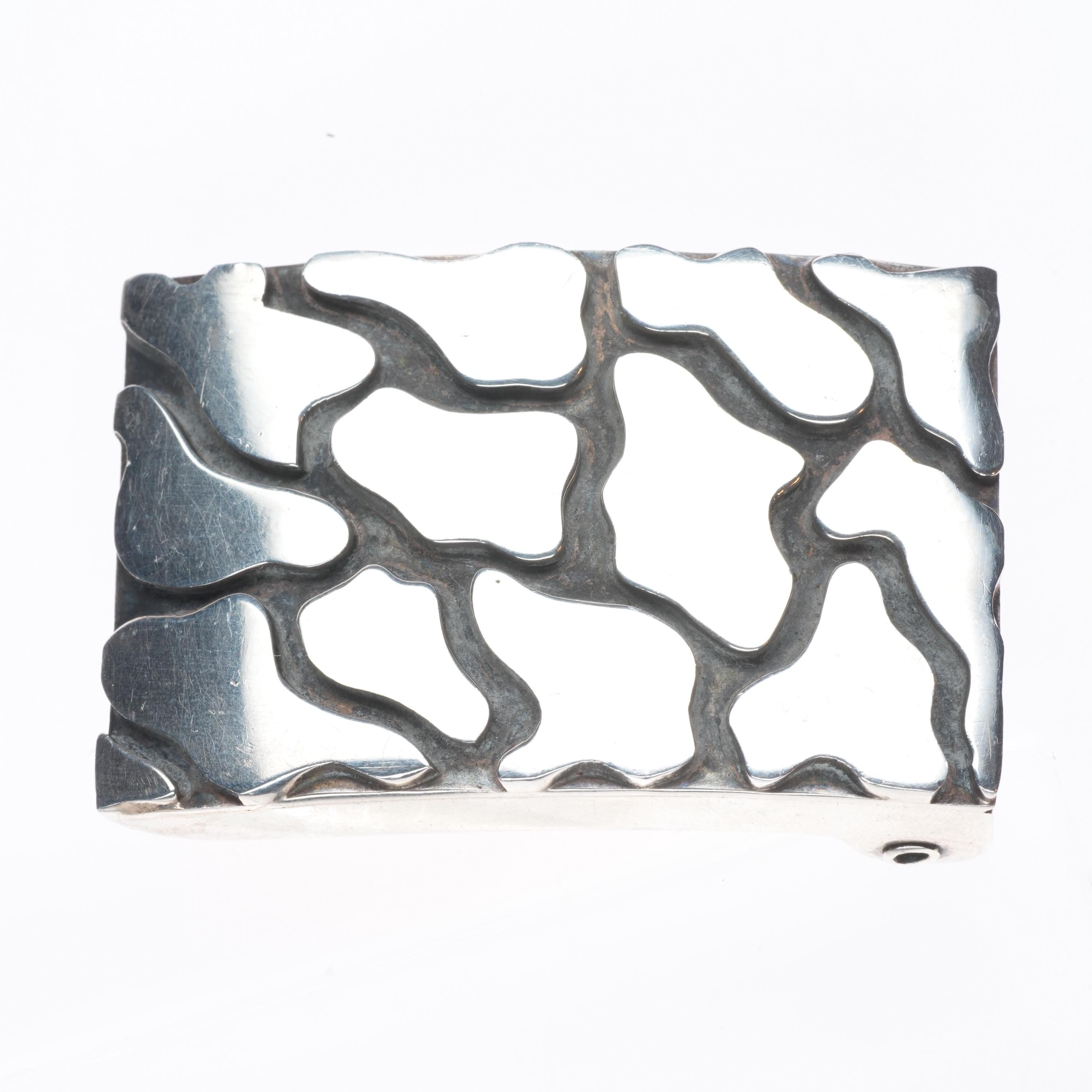 Vintage Taxco Mexican modernist sterling silver skin/hide style belt buckle