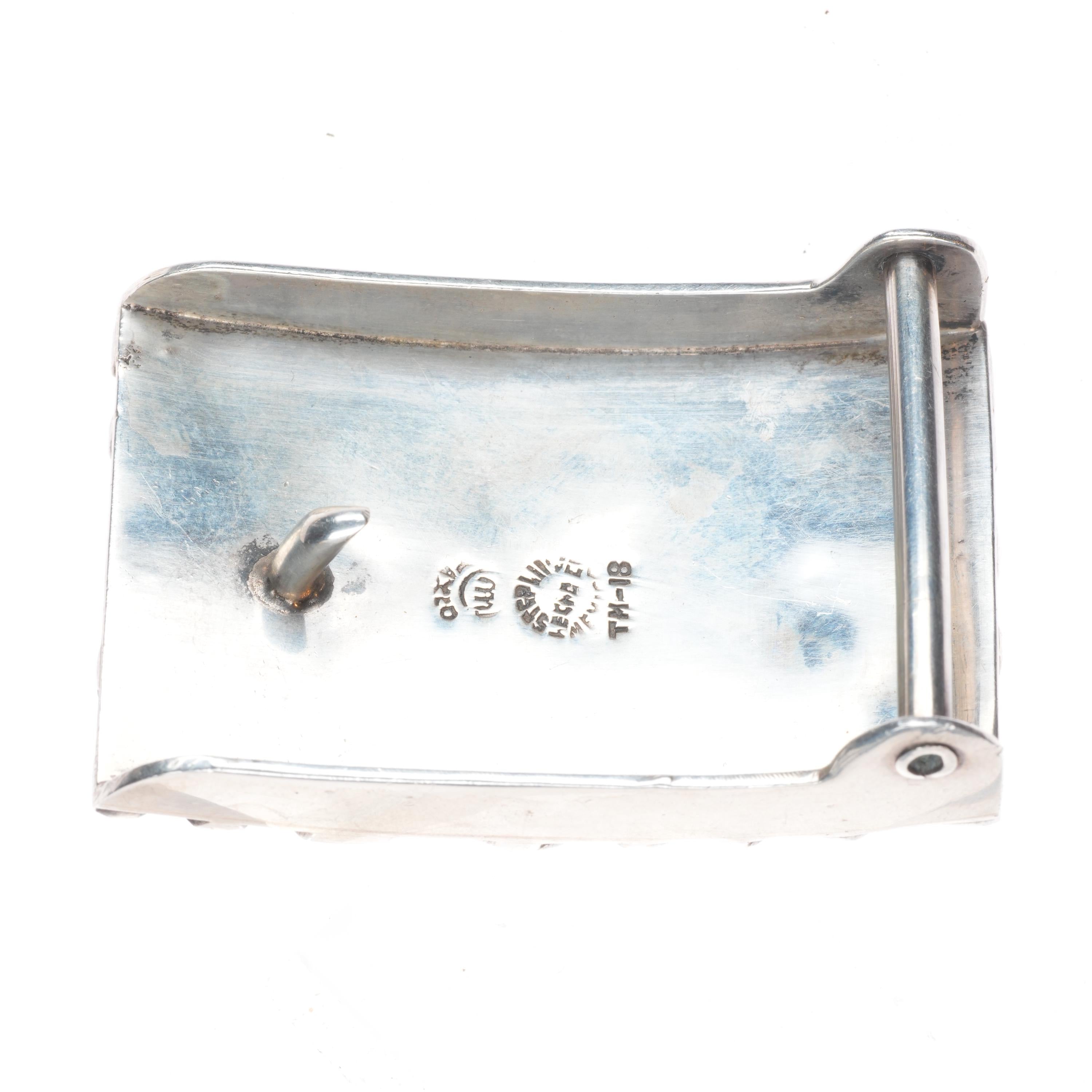 Vintage Taxco Mexican modernist sterling silver skin/hide style belt buckle. Tested and guaranteed solid sterling silver. Weight and measurements in pictures, circa last quarter of the 20th century. Fits a 1.25" belt.