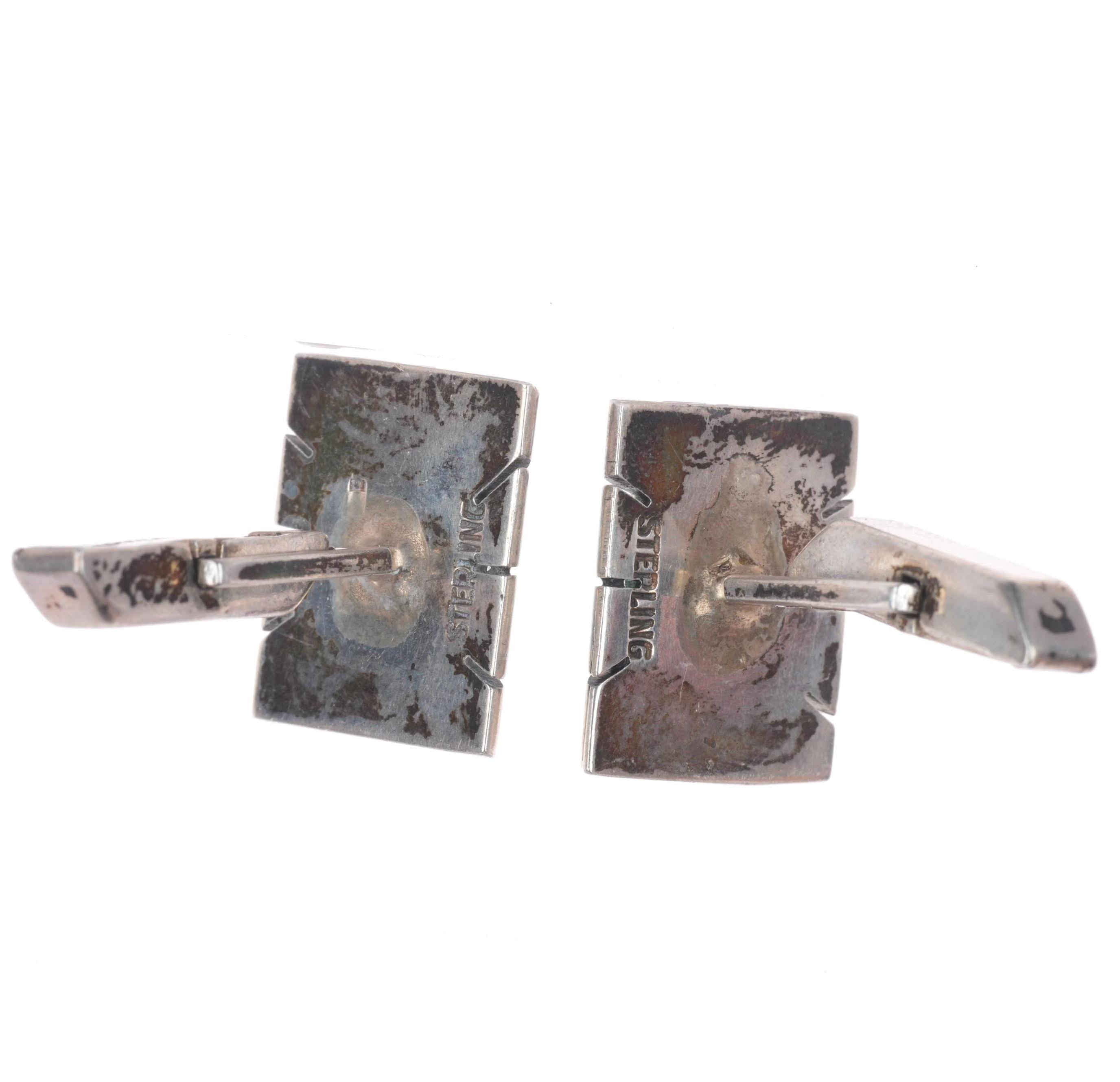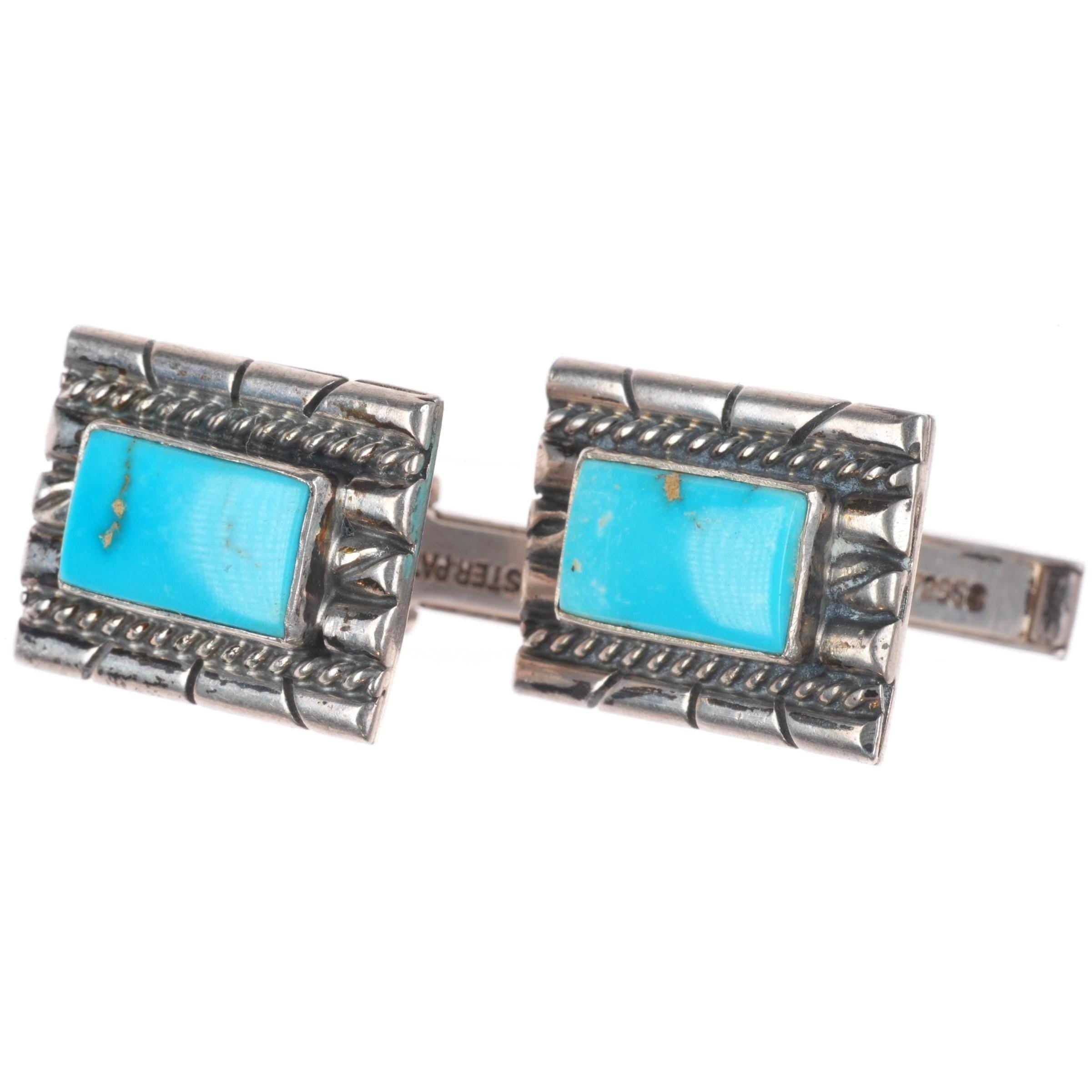 50‘s-60‘s Vintage Navajo sterling silver high grade turquoise cufflinks Great cufflinks with no issues, tested and guaranteed solid sterling silver, any marks detected, weight, and measurements will be shown in the pictures. Circa mid 20th century.