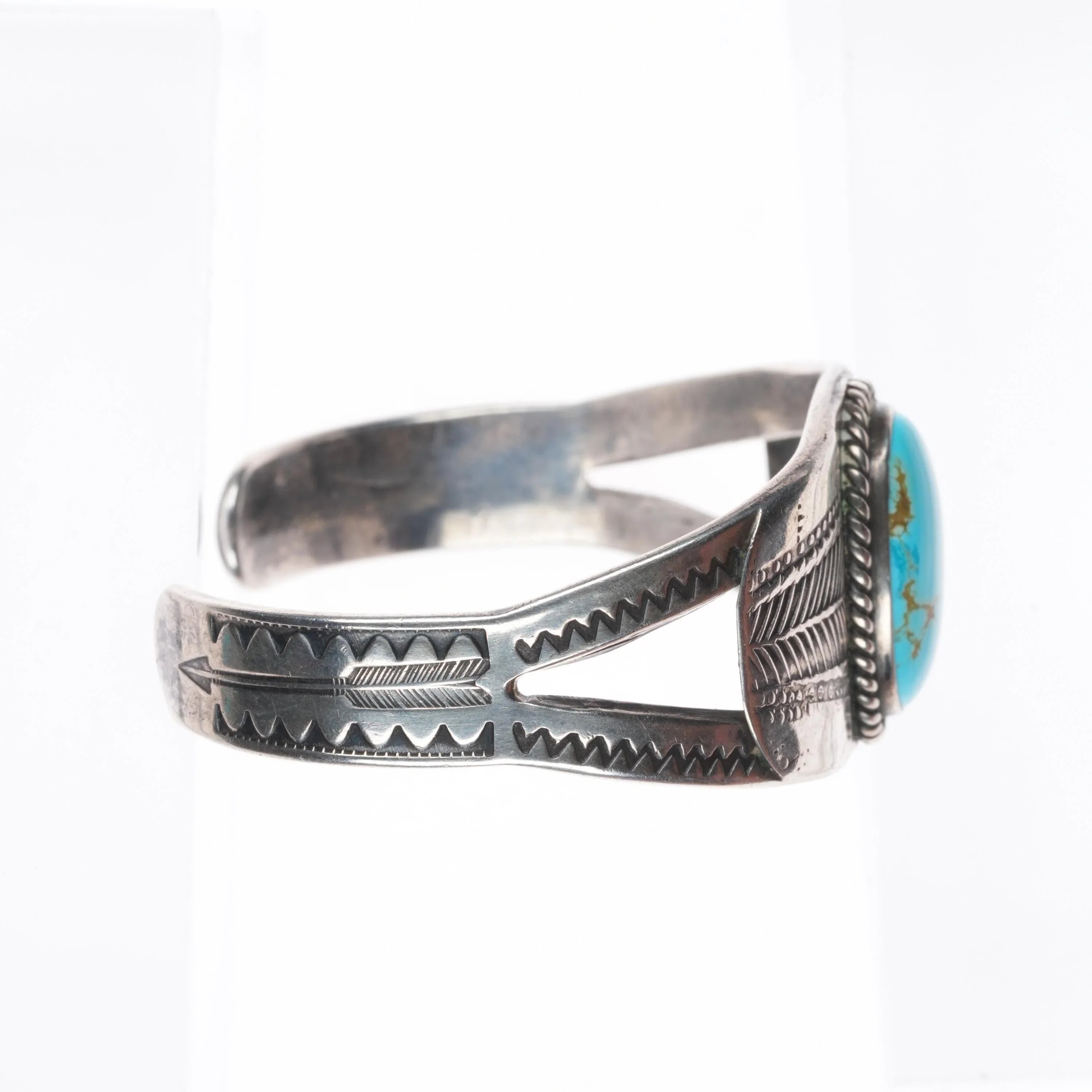 6.1" 1930's Navajo arrow stamped sterling silver cuff bracelet w/nice turquoise