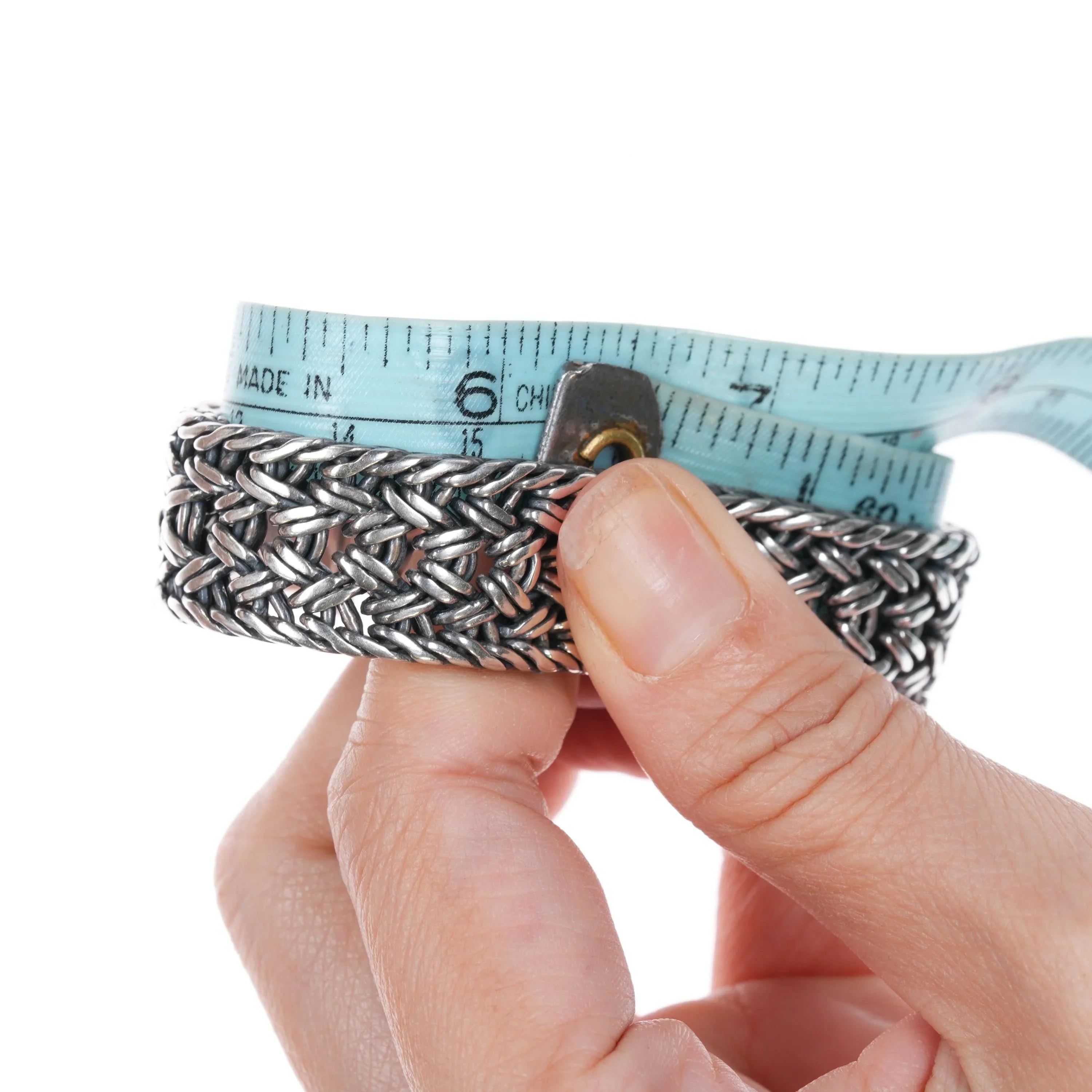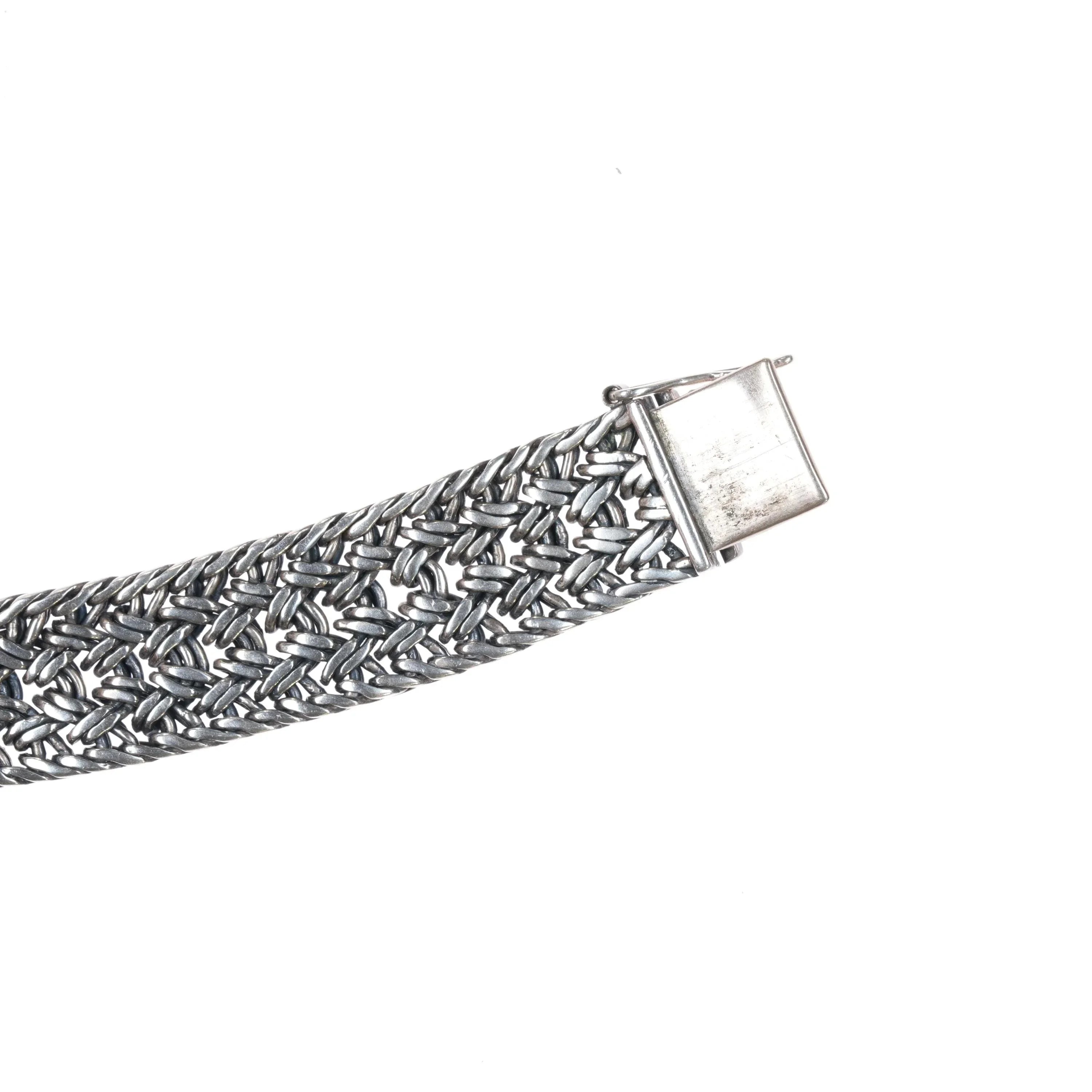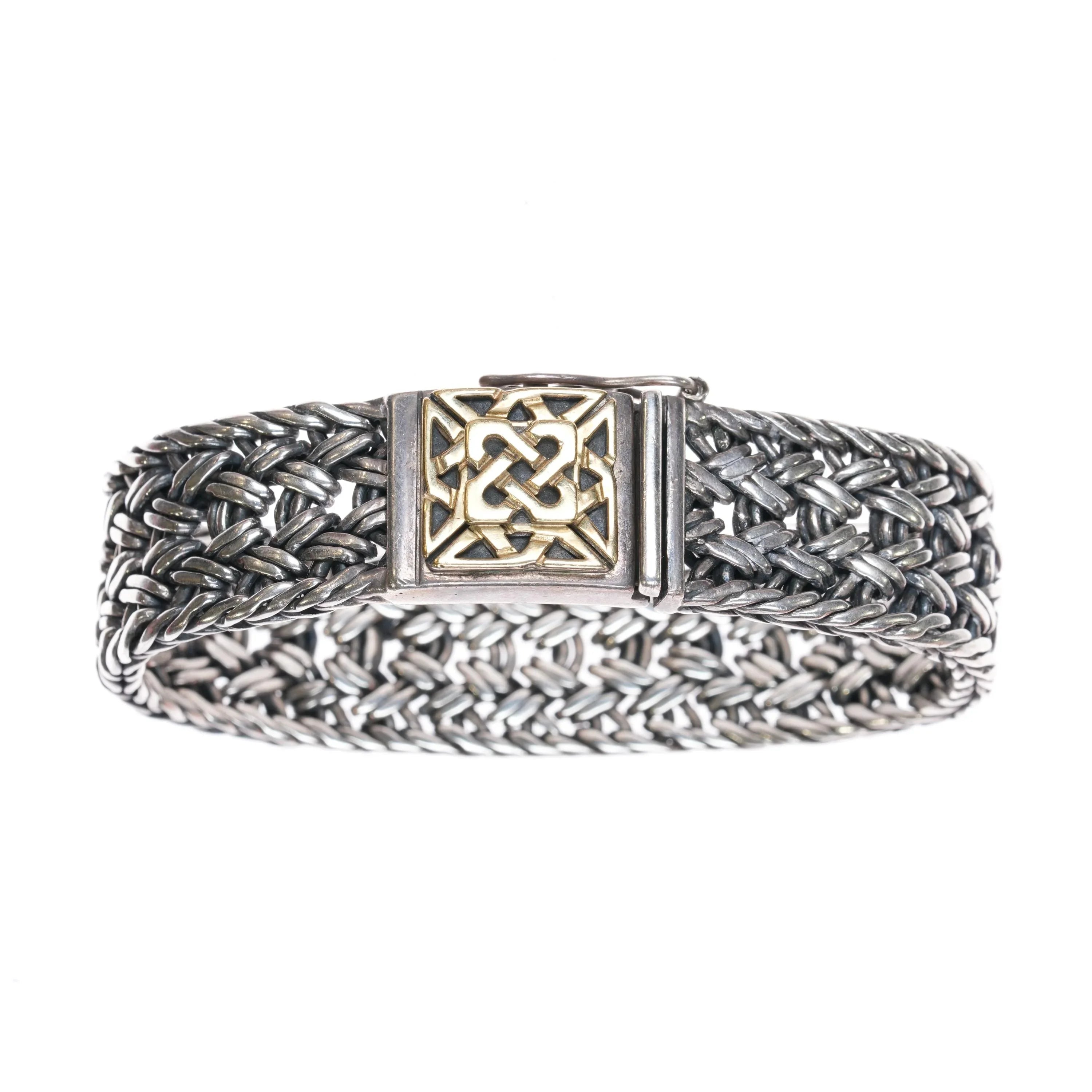 6 1/8" Retro Helen Chantler Sterling/18k Celtic knot woven link bracelet. No issues. Marked as shown, circa last quarter of the 20th century.
