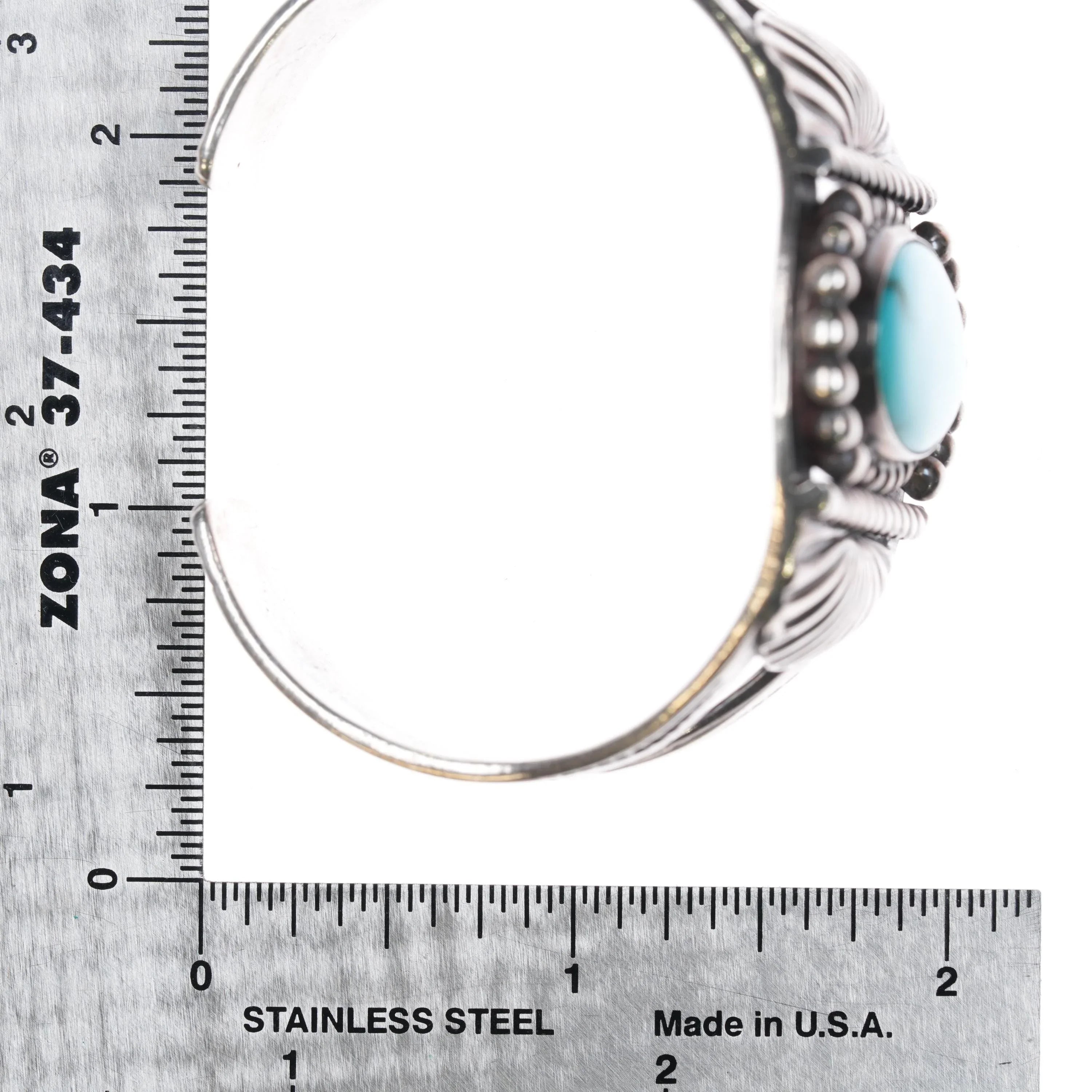 6.1" c1940's Navajo Sterling silver cuff bracelet w/Nice American Turquoise