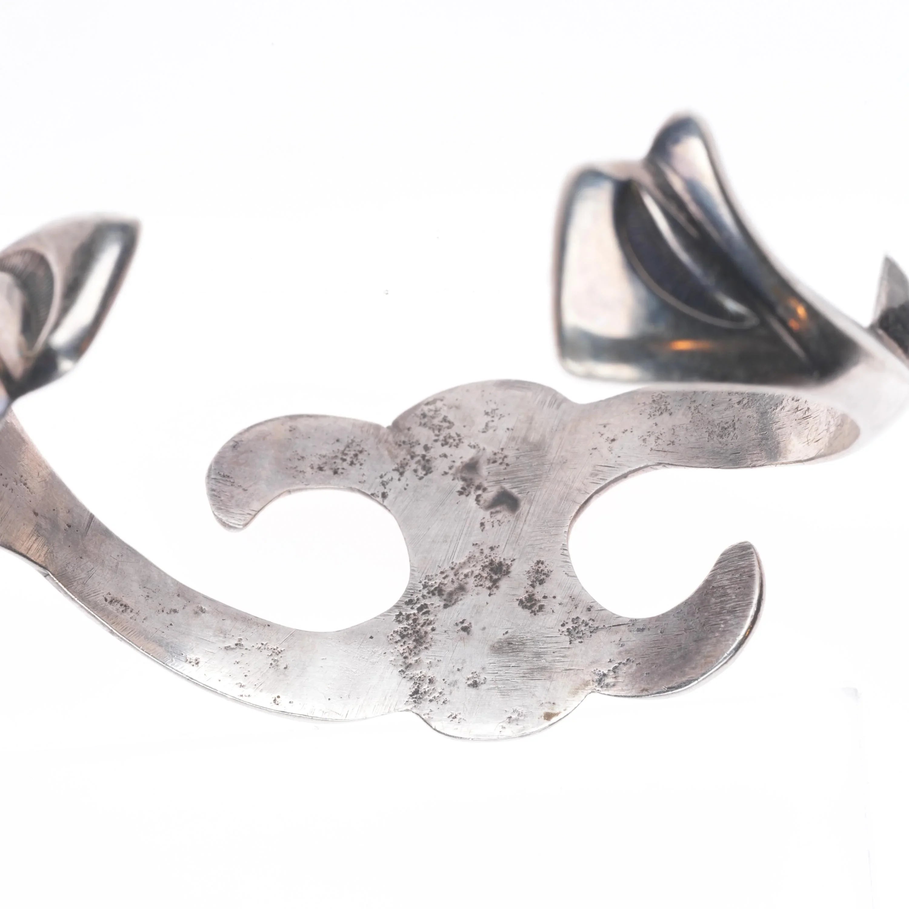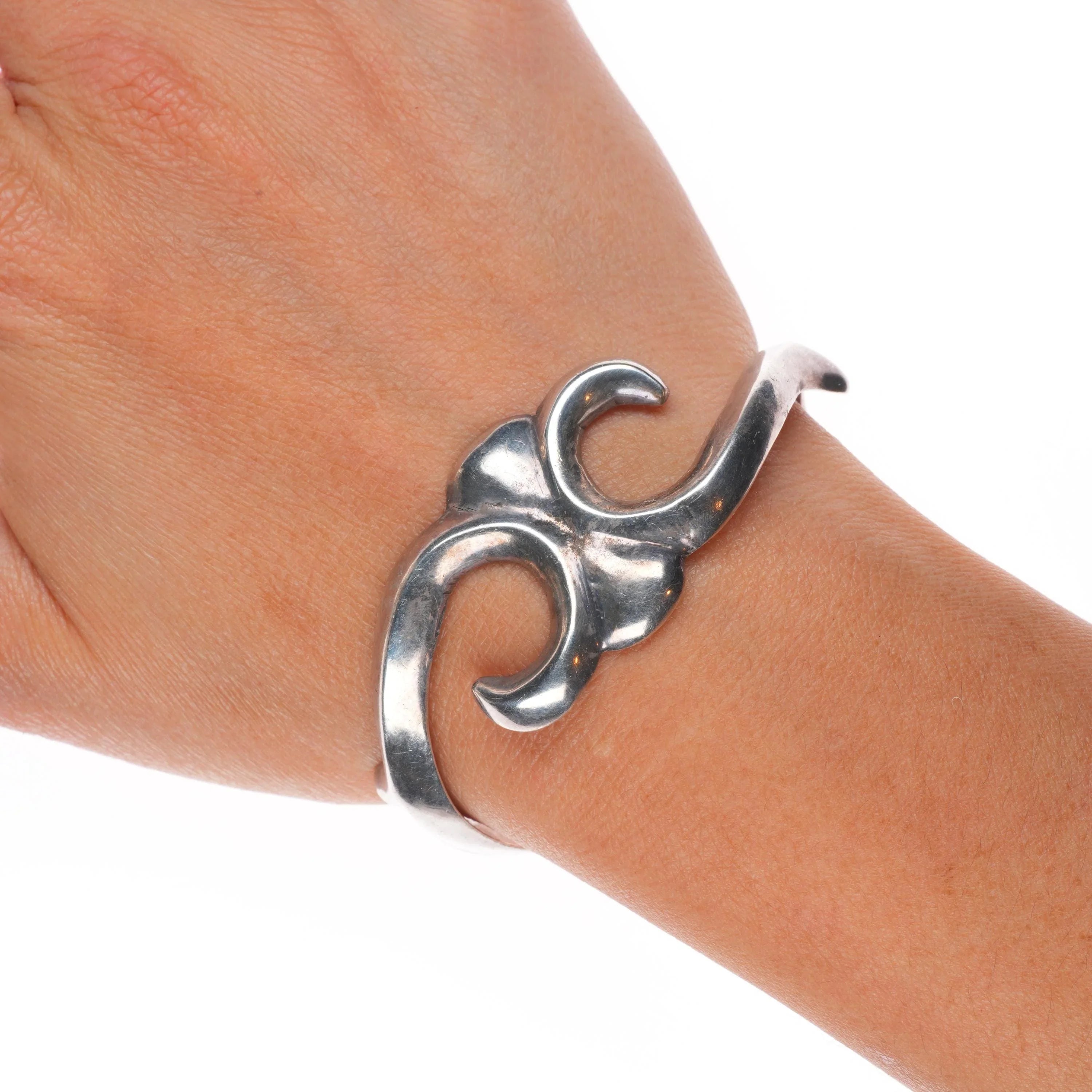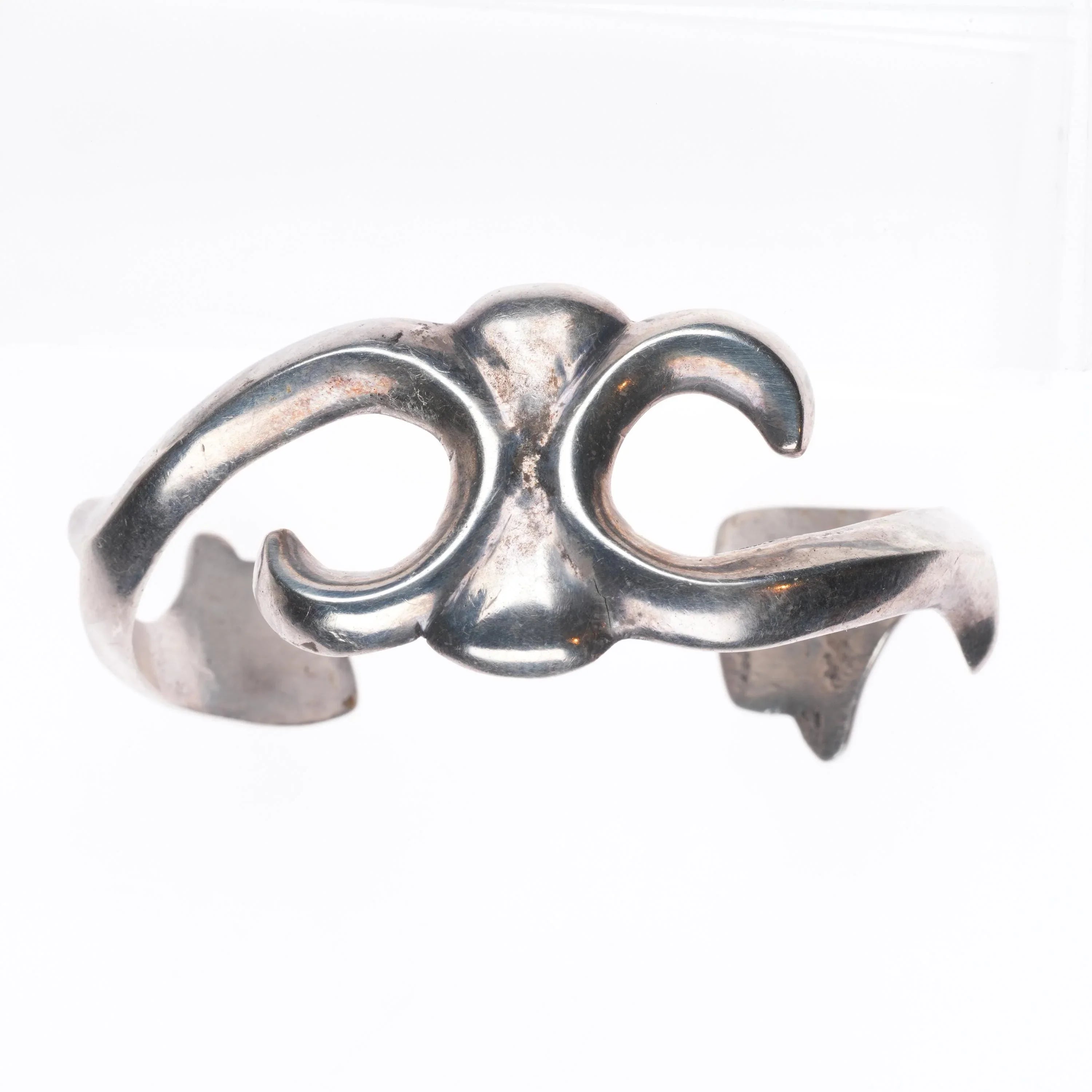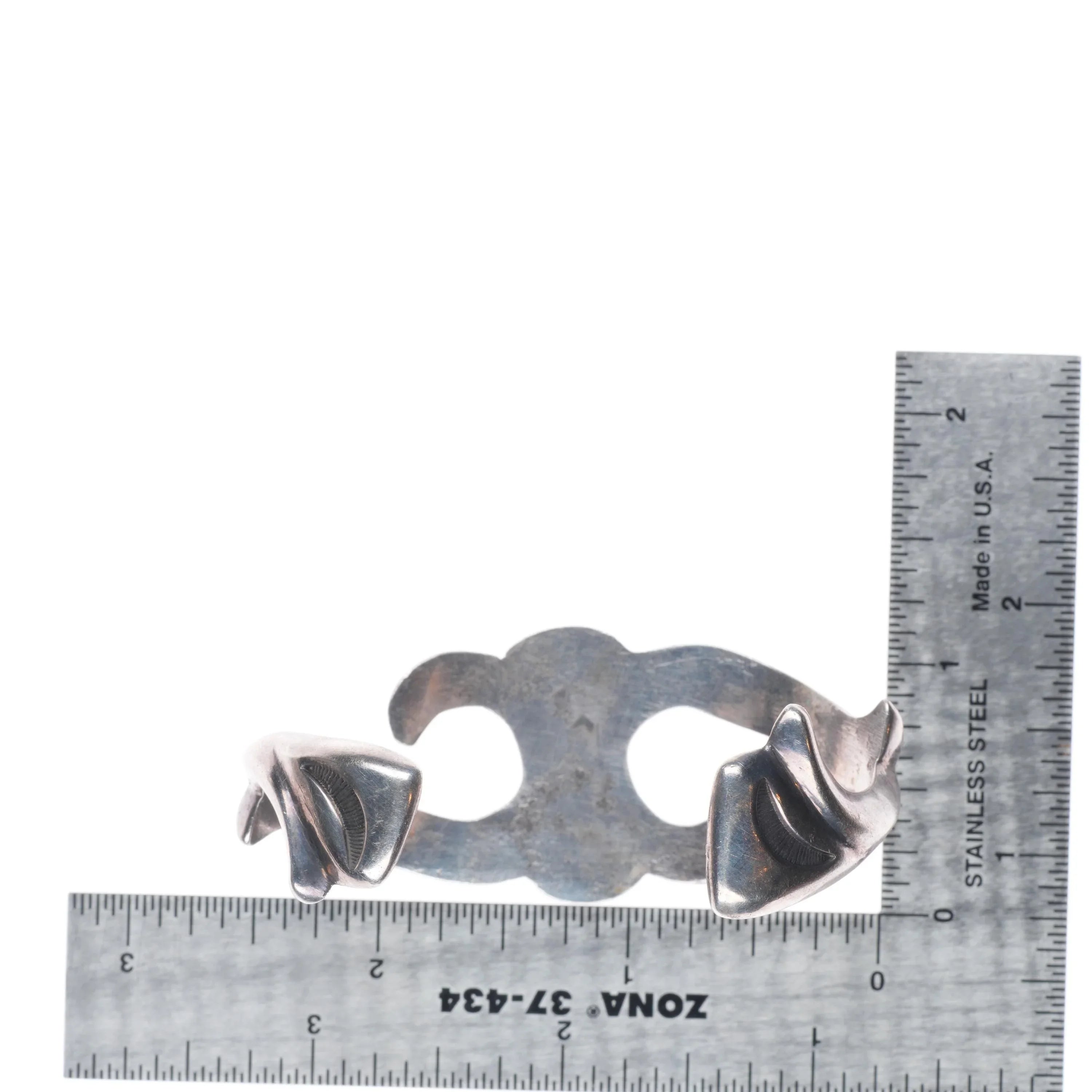 6.1" Vintage Navajo sandcast sterling silver cuff bracelet. Tested and guaranteed solid sterling silver with weight and measurements in pictures. Circa third quarter of the 20th century, unmarked.