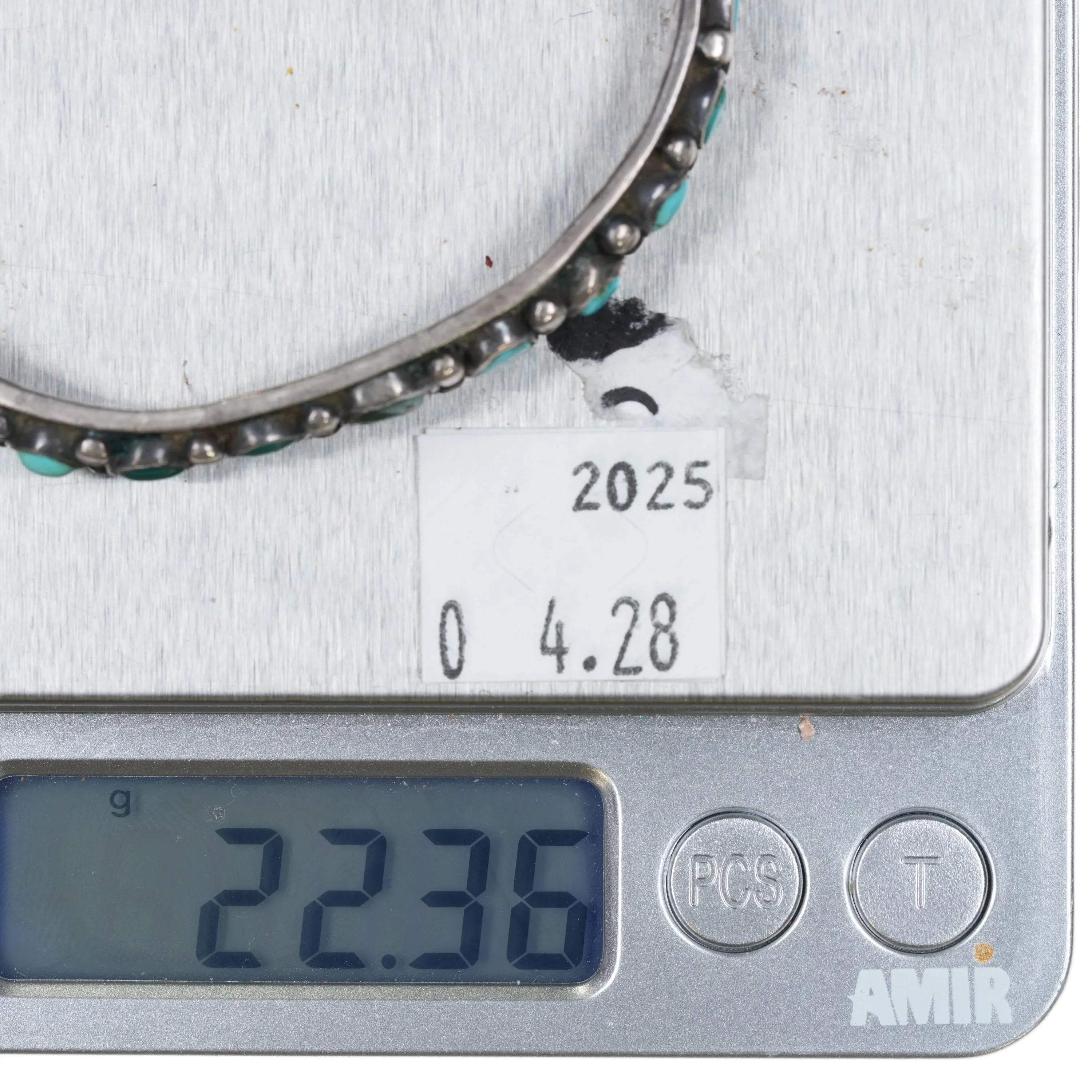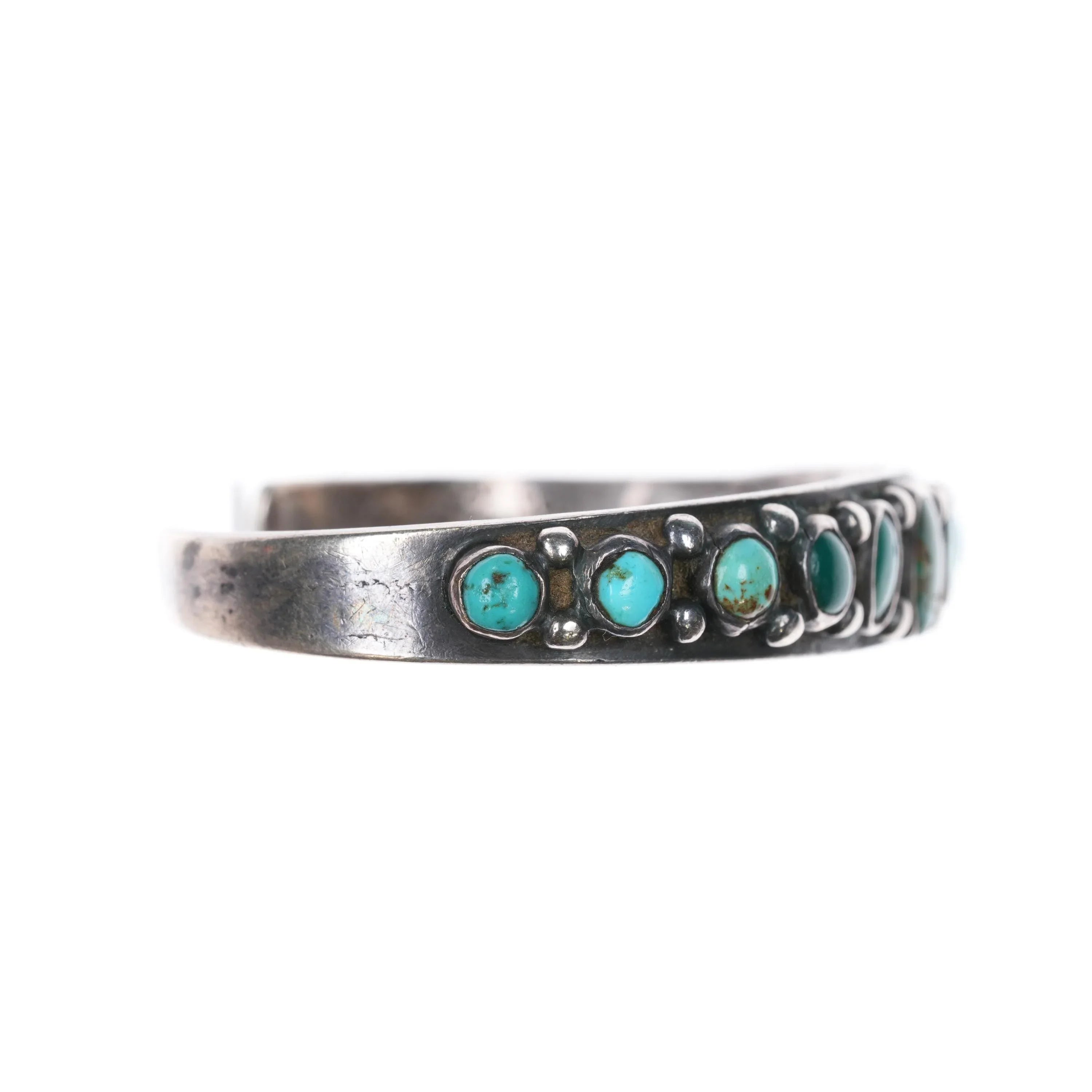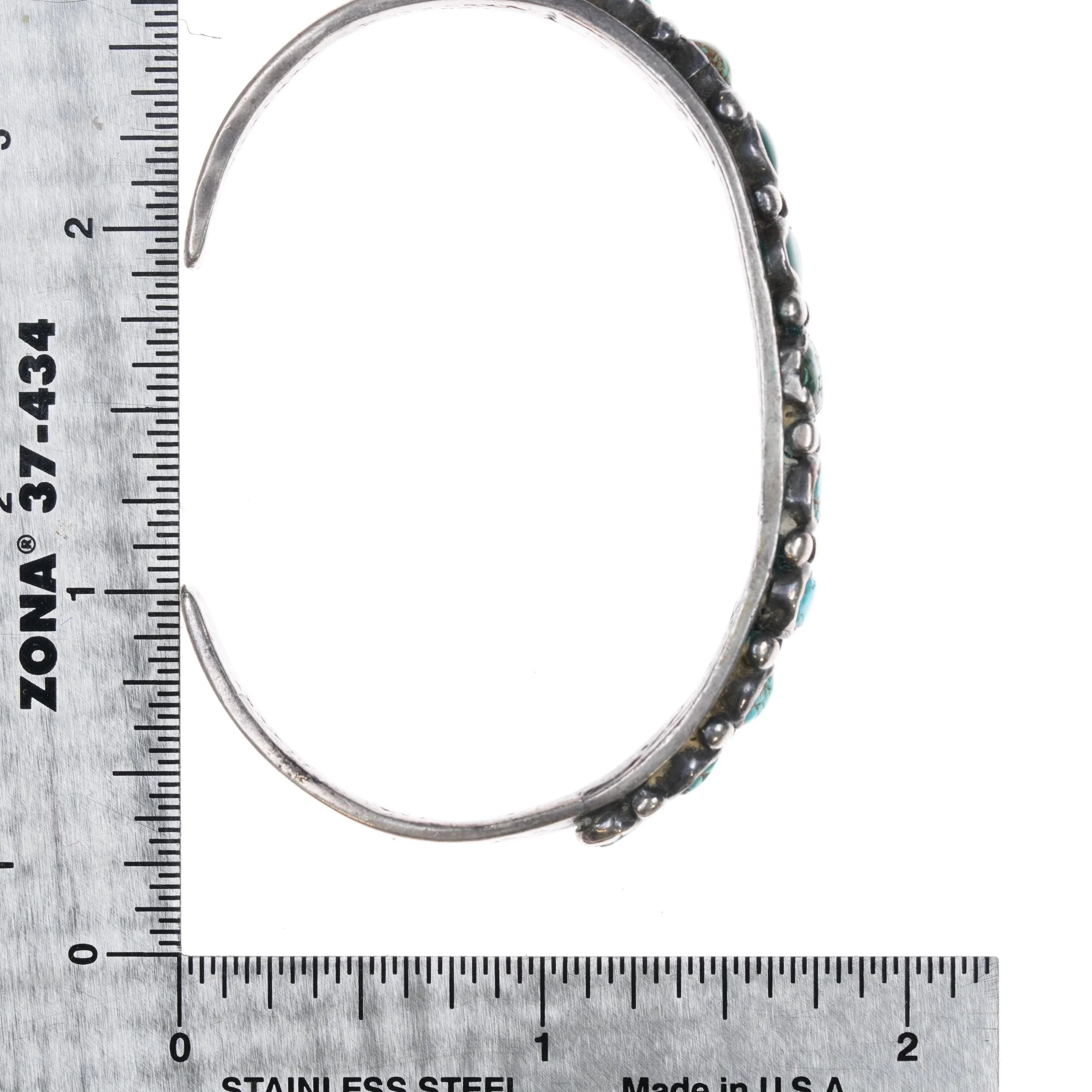 6" 1920's Navajo Ingot Silver multi-color turquoise row cuff bracelet sterling
