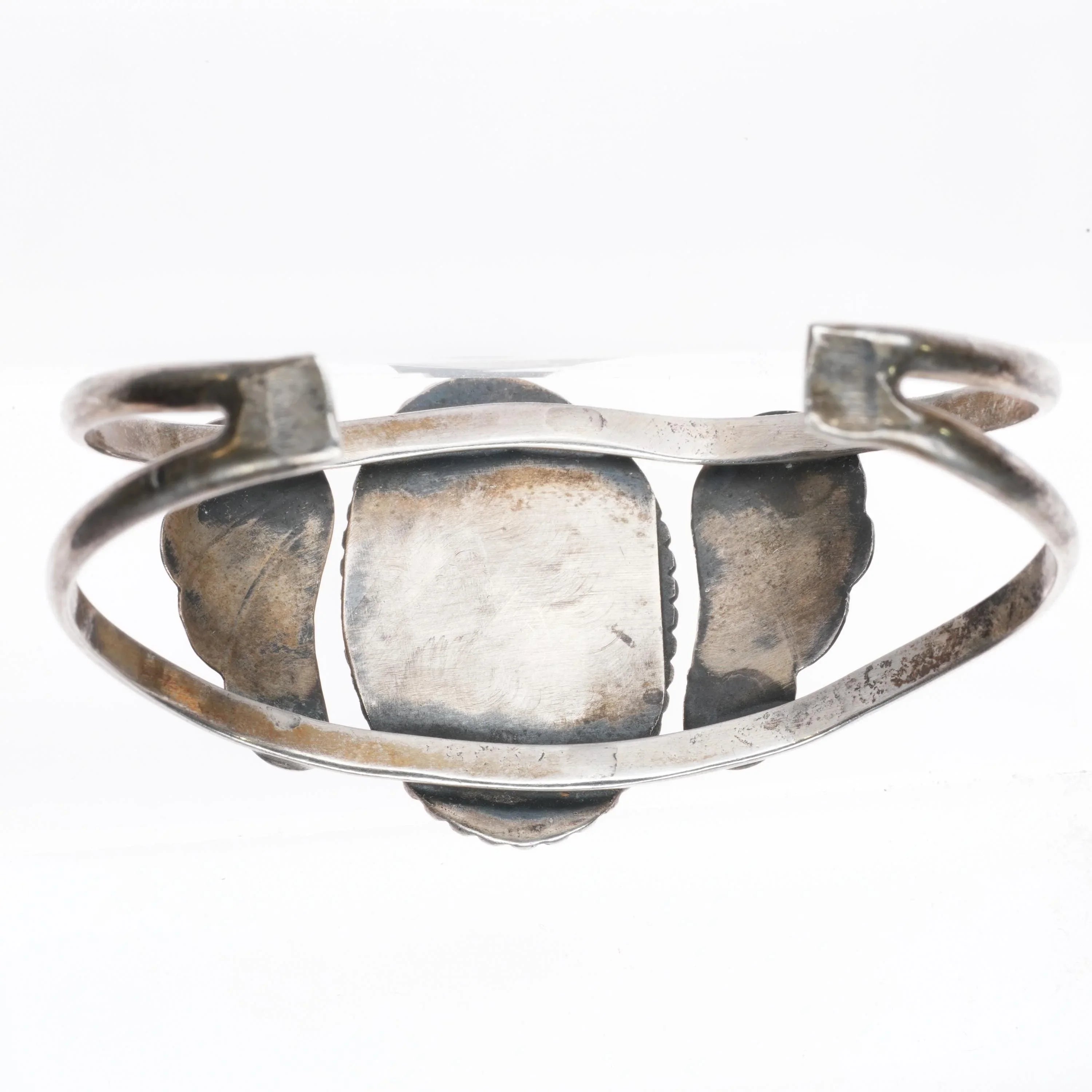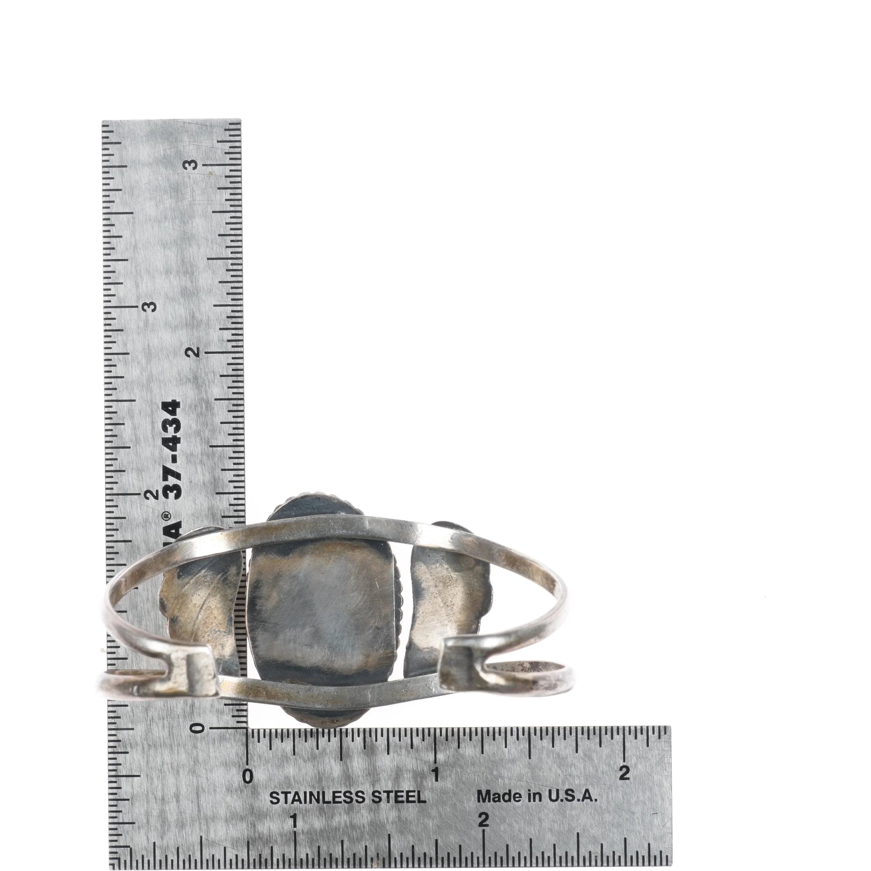 6" 1960‘s Navajo Blue gem turquoise sterling silver cuff bracelet. Tested and guaranteed solid sterling silver with no hallmarks which is common with Native American jewelry of this era. Weight and measurements in pictures. Some expected wear, no cracks or breaks. Circa third quarter of the 20th century by unknown artist. Simple bracelet with amazing stone.