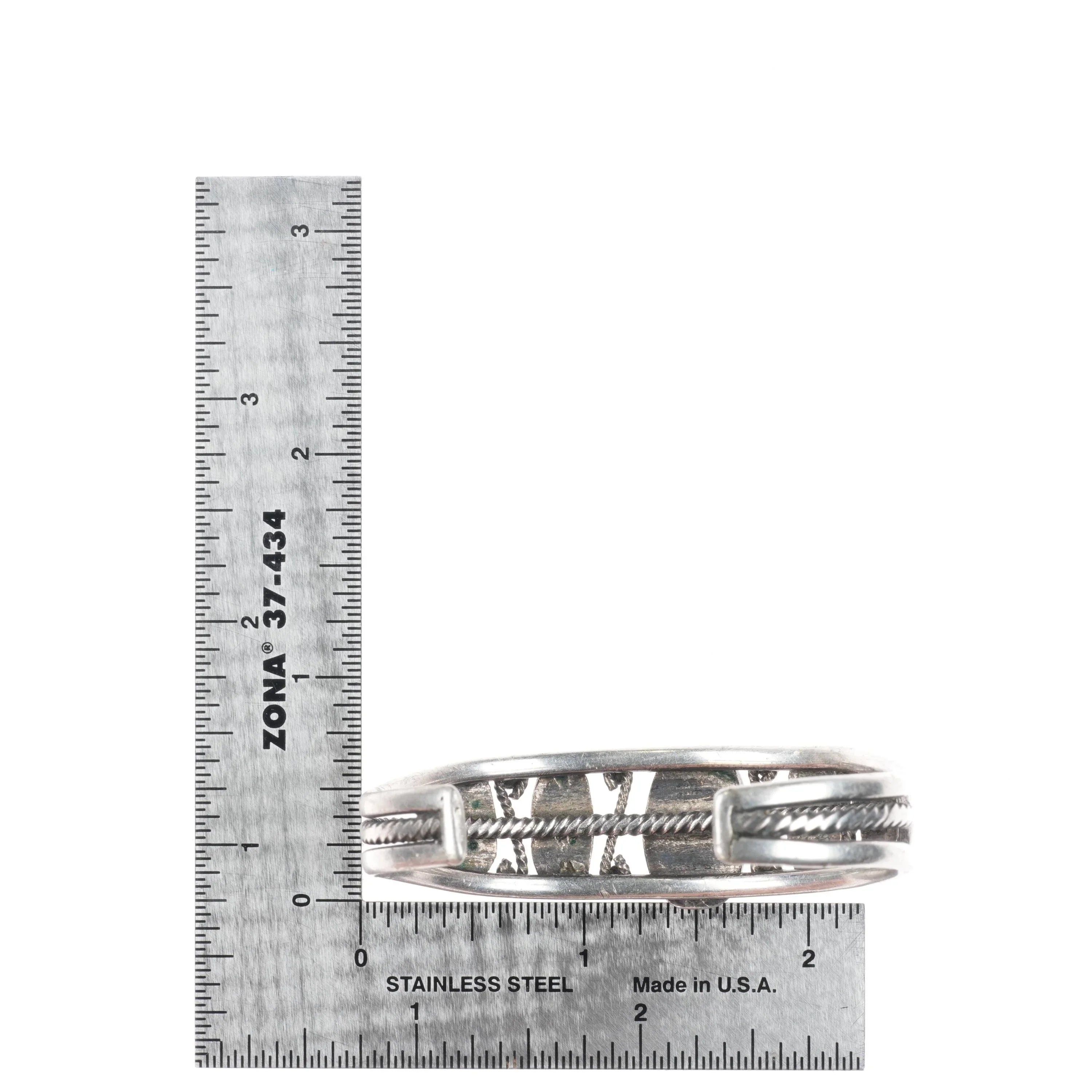 6" 20's-30's Navajo ingot silver row cuff bracelet w/fancy twisted wire