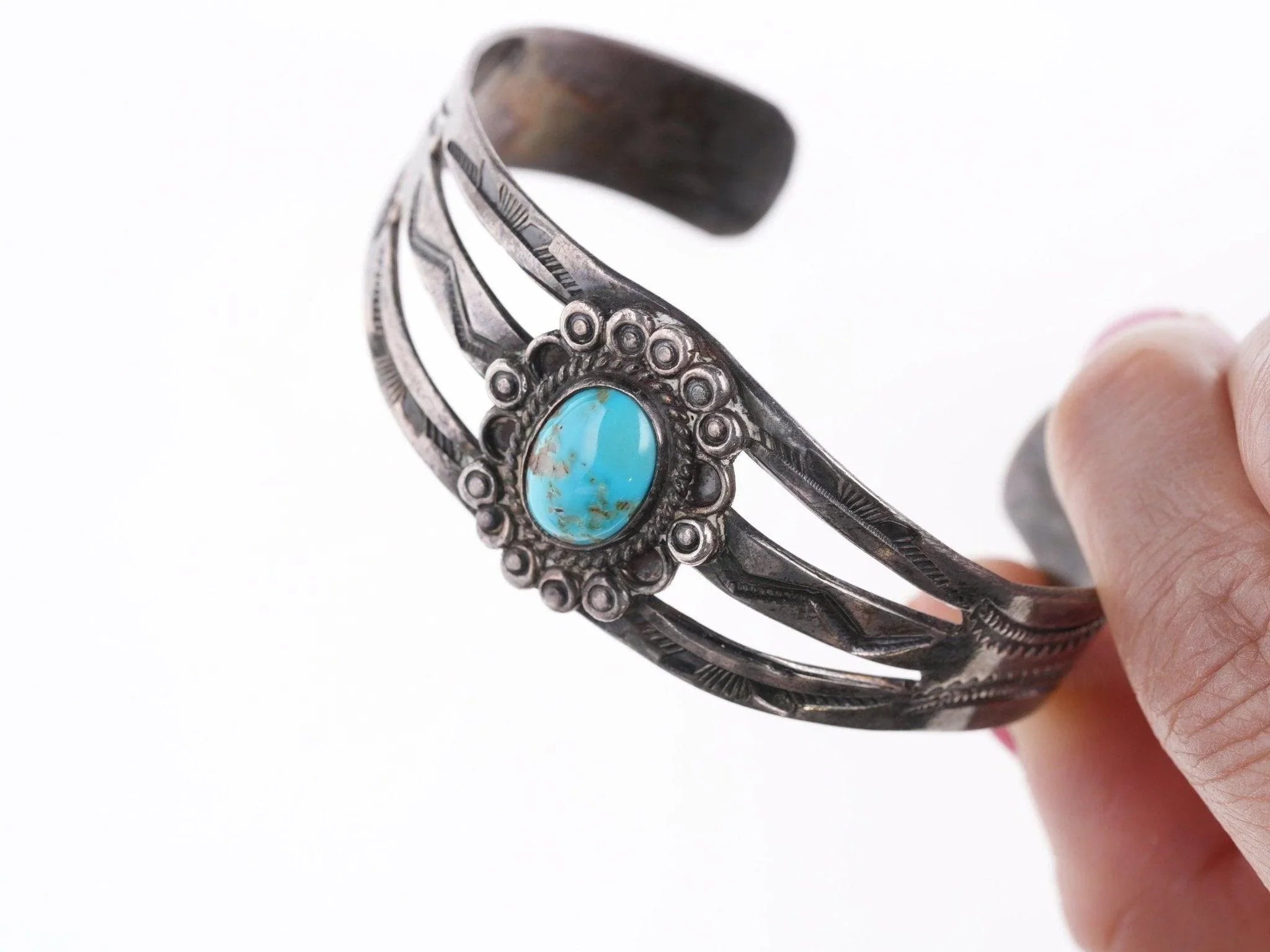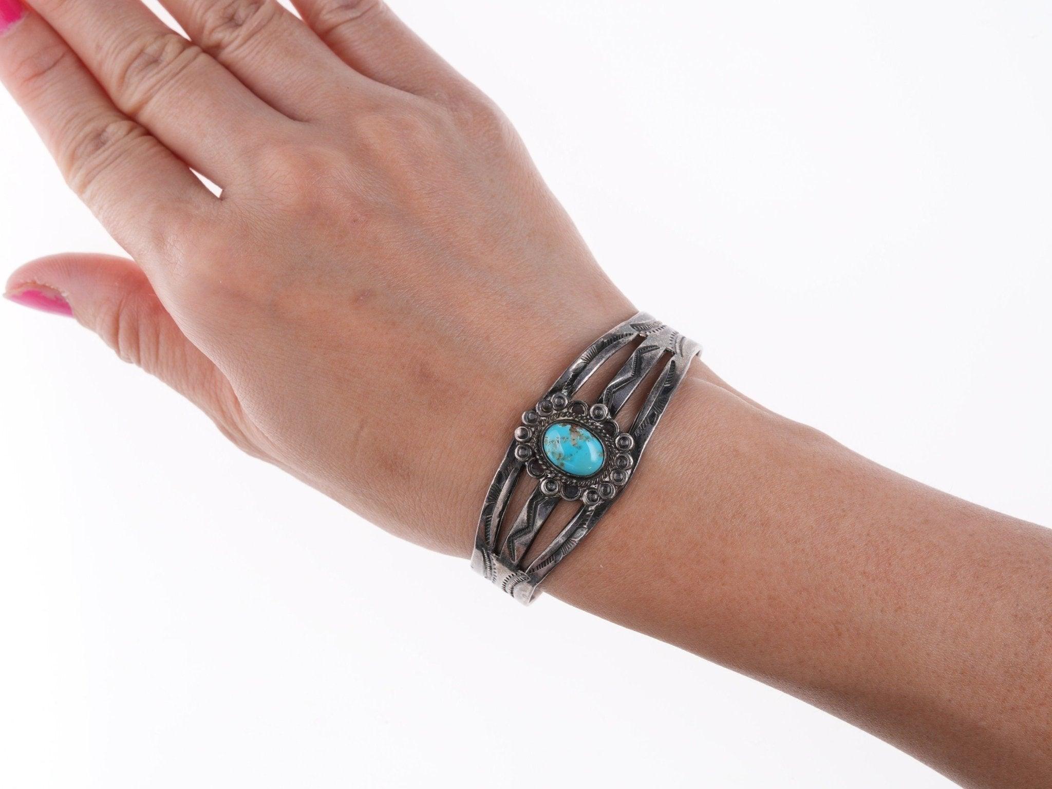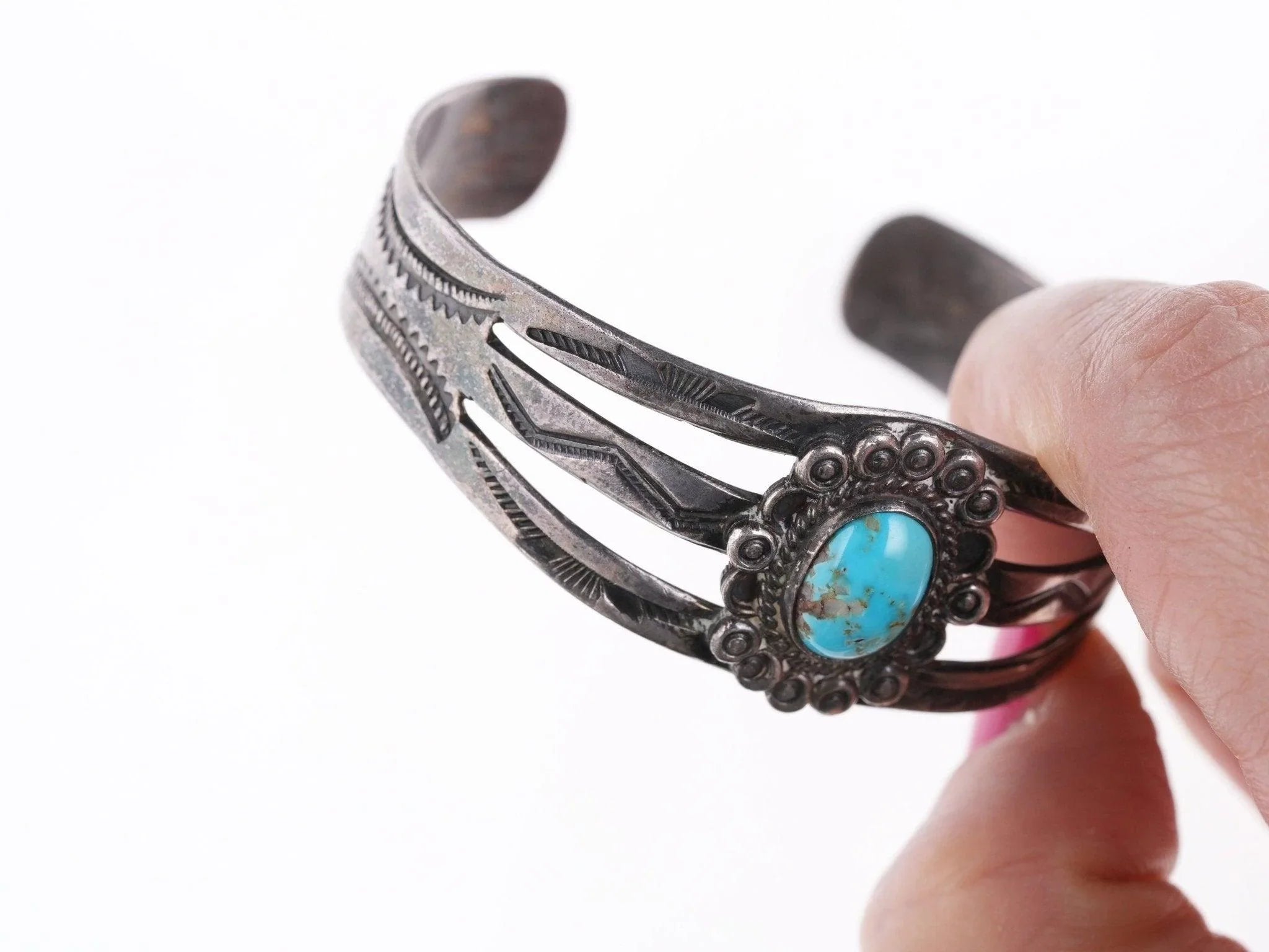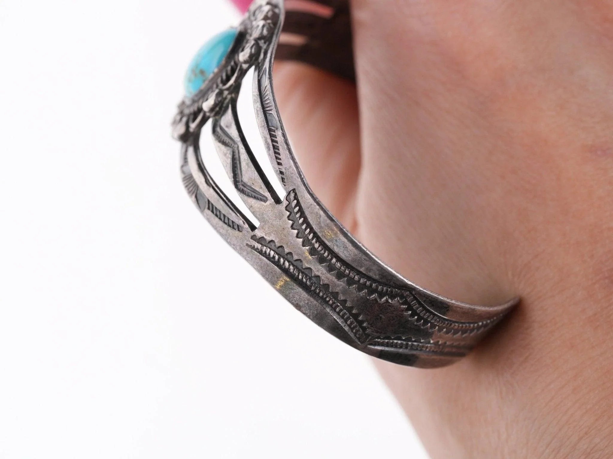6 3/8 英寸 30 年代至 40 年代 Fred Harvey Era 纯银和绿松石手链。