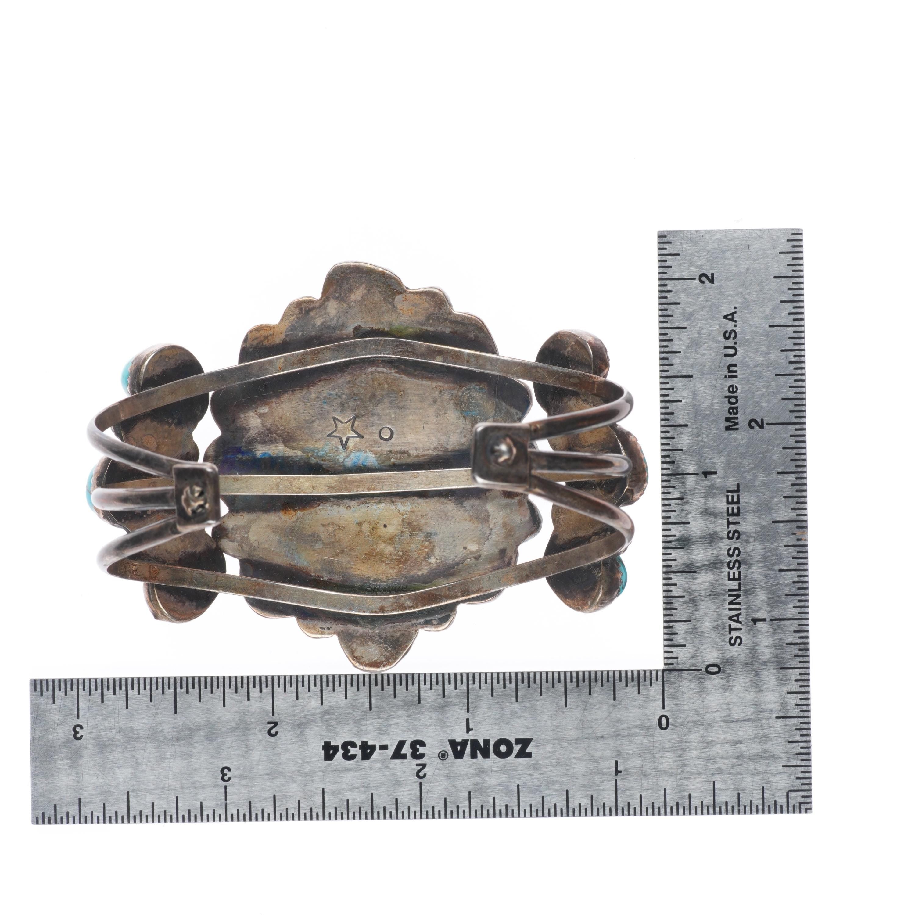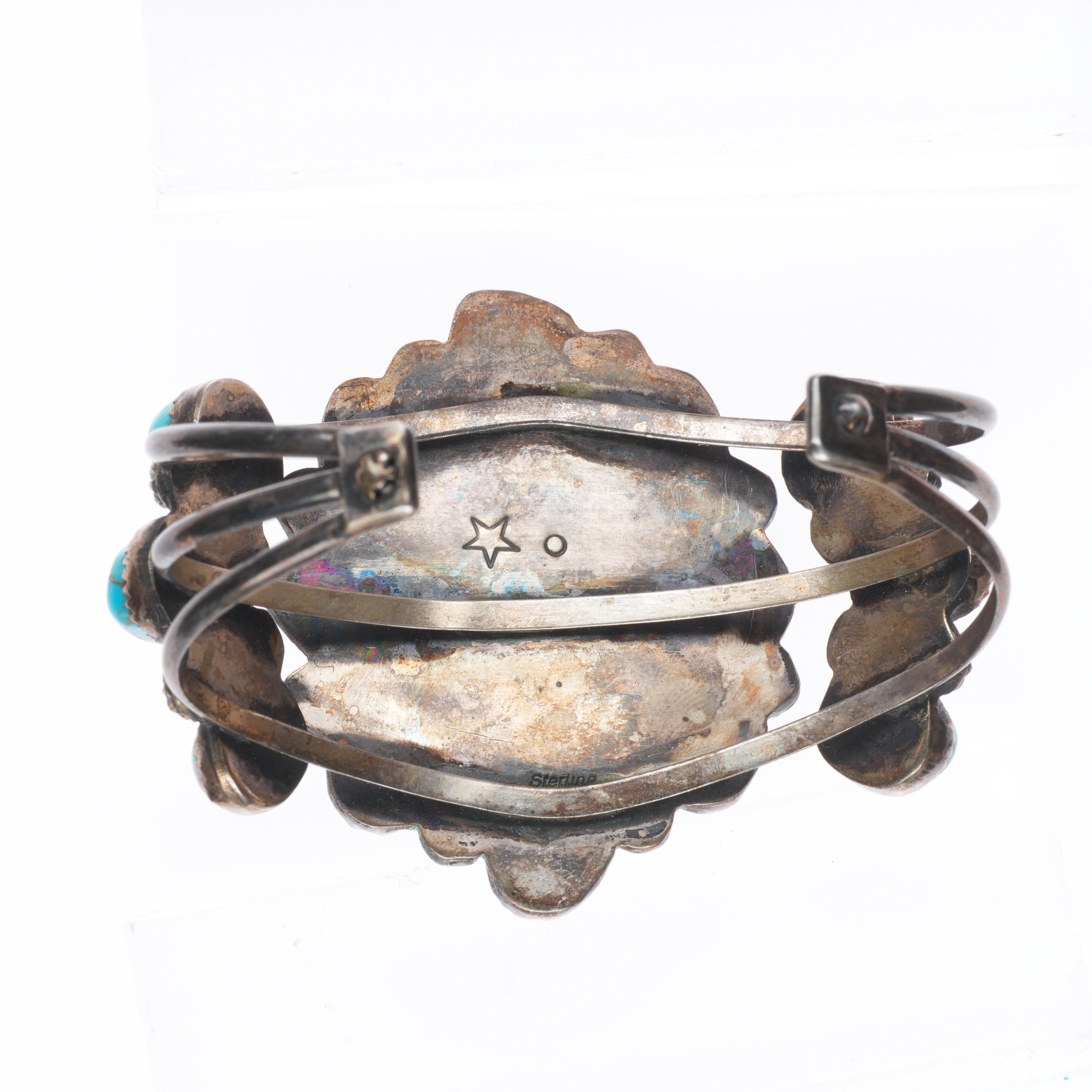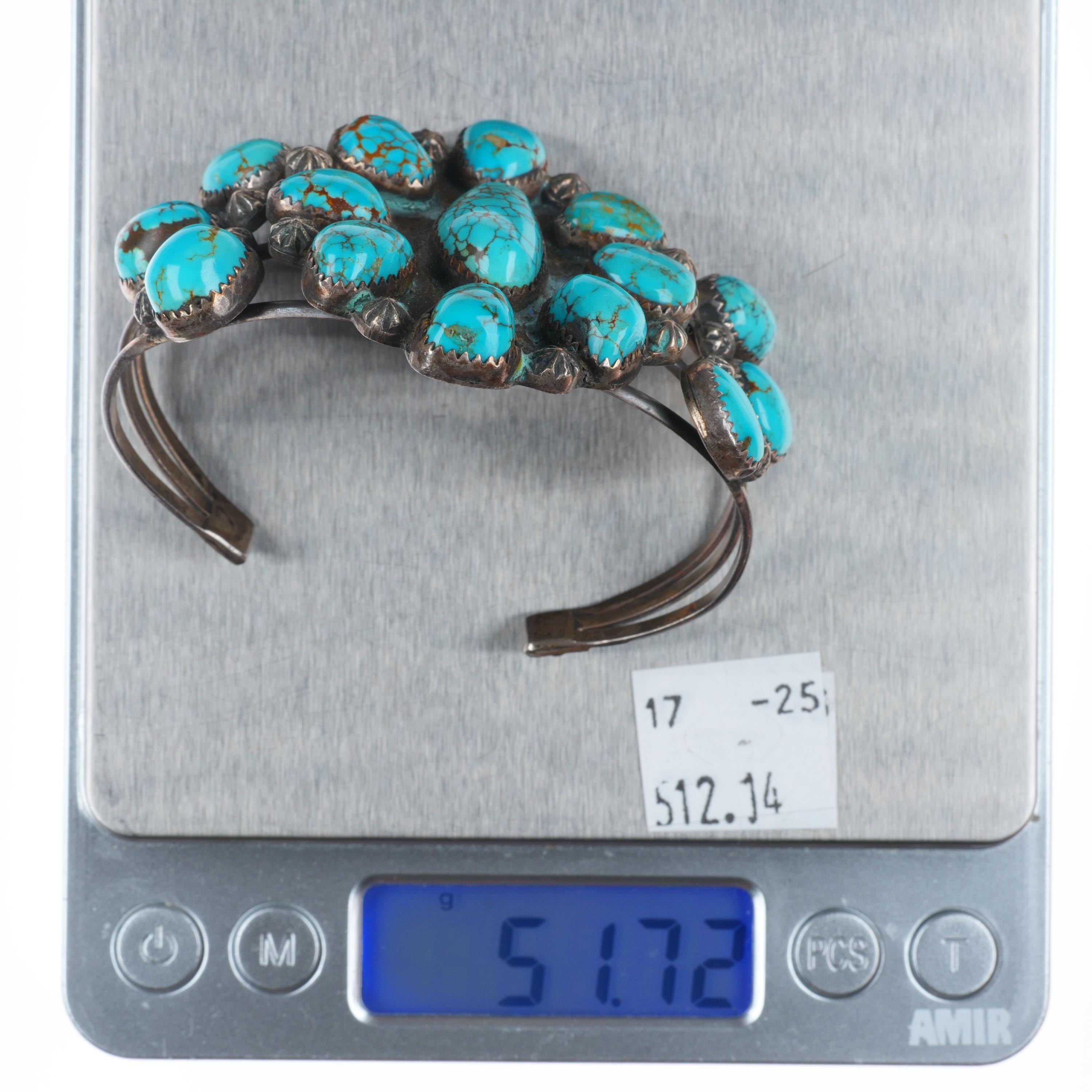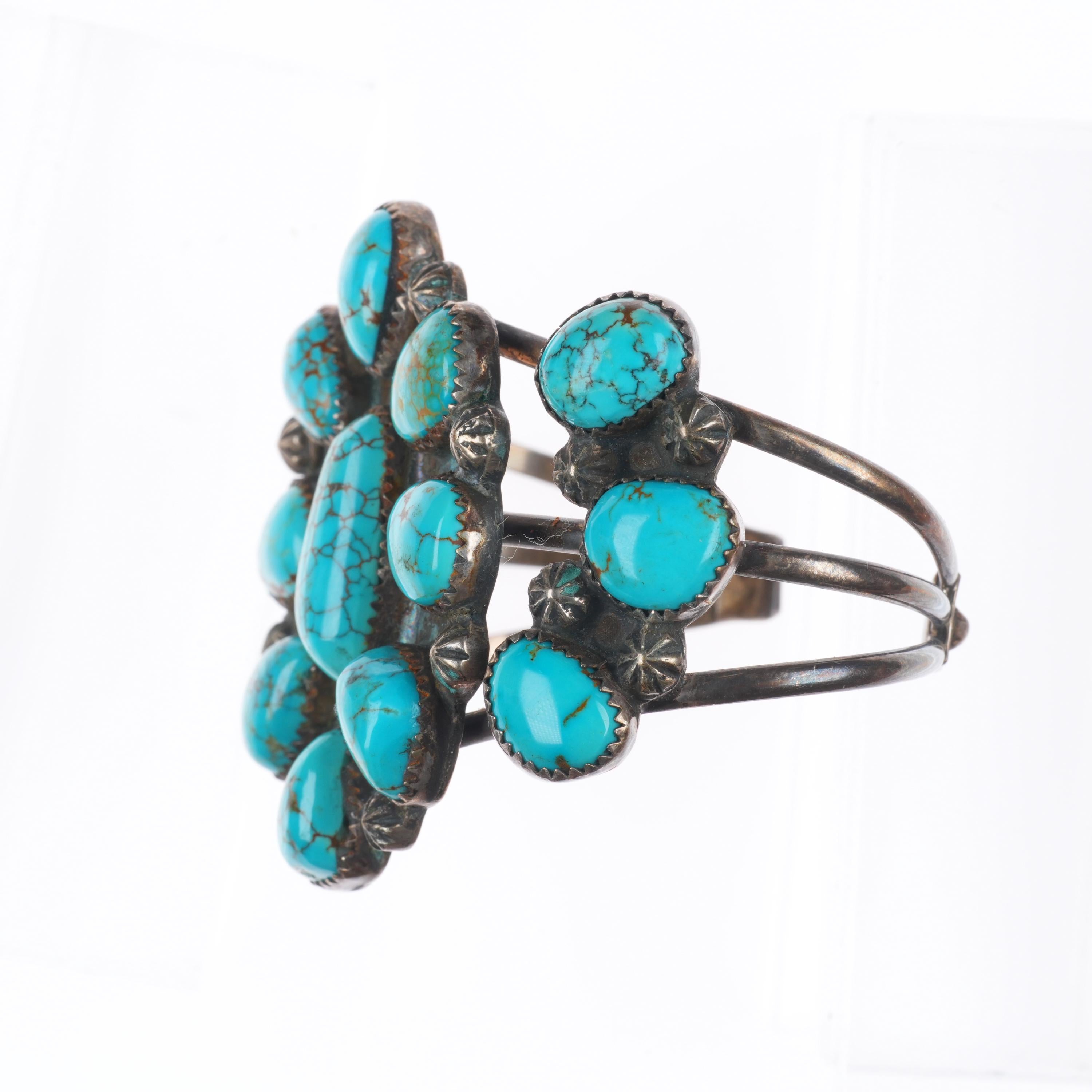 6.3" Vintage Native American sterling silver high grade turquoise cuff bracelet. Tested and guaranteed solid sterling silver with weight and measurements in pictures. Great condition with age appropriate wear, circa last quarter of the 20th century.