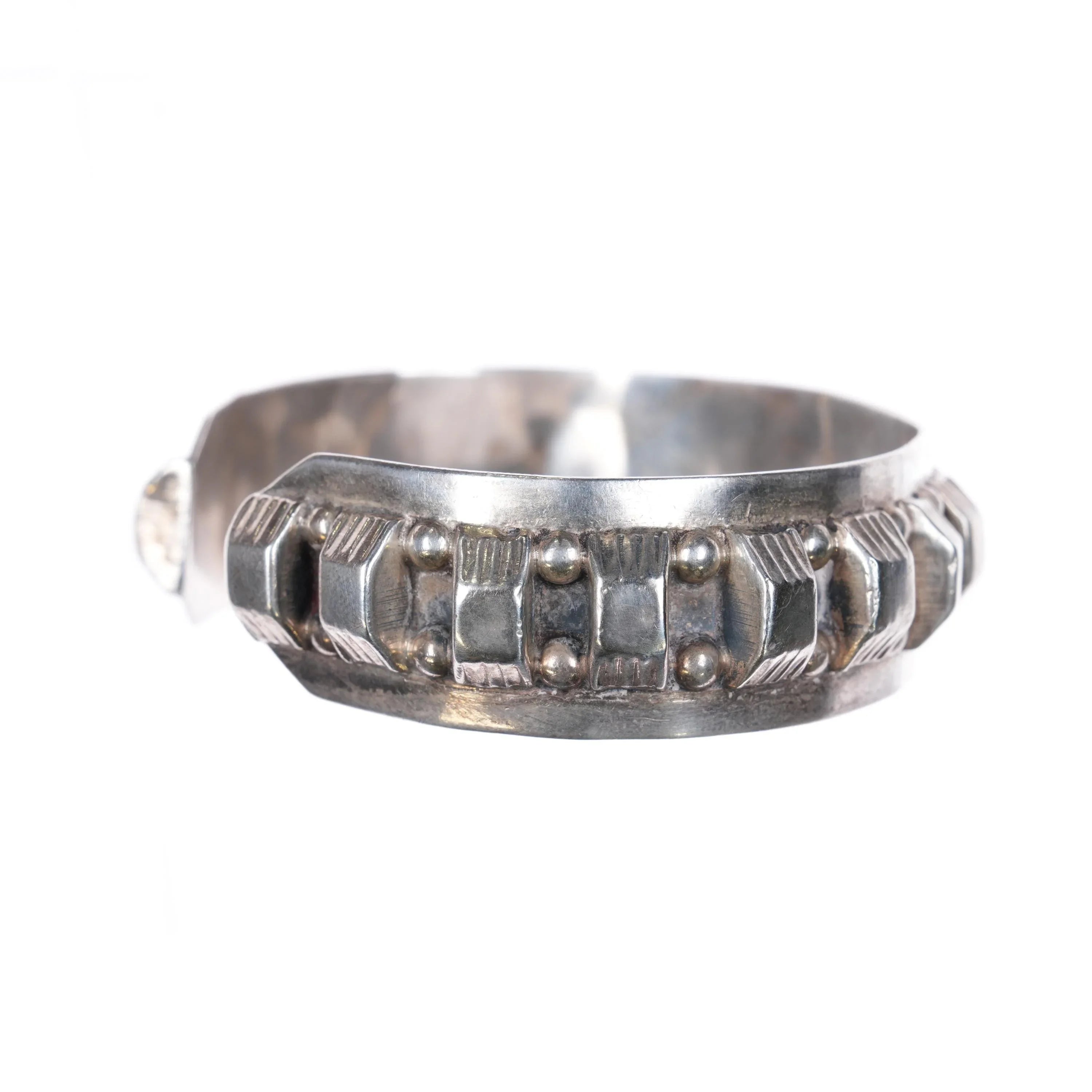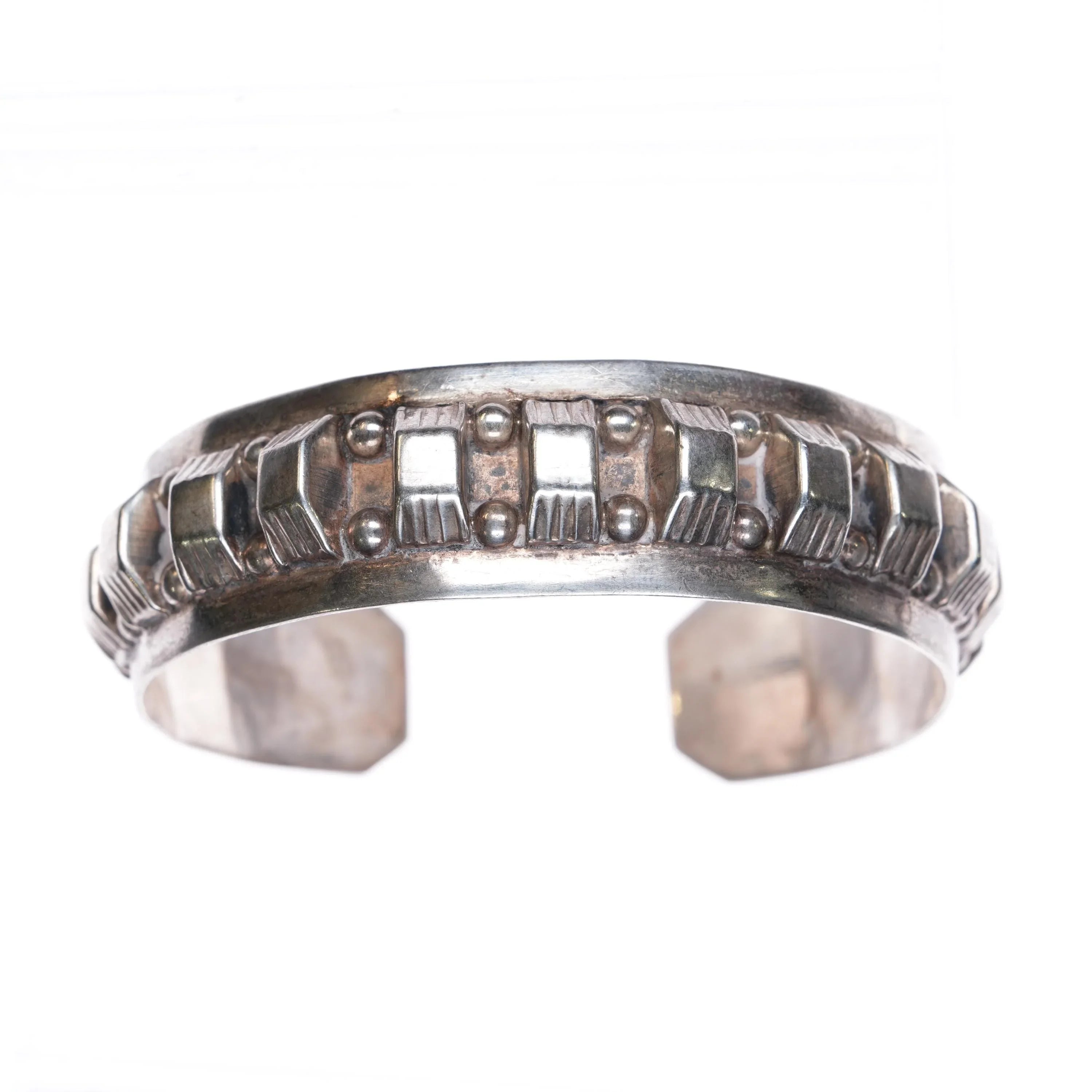 6.75" Vintage Mexican sterling silver Art Deco style geometric cuff bracelet