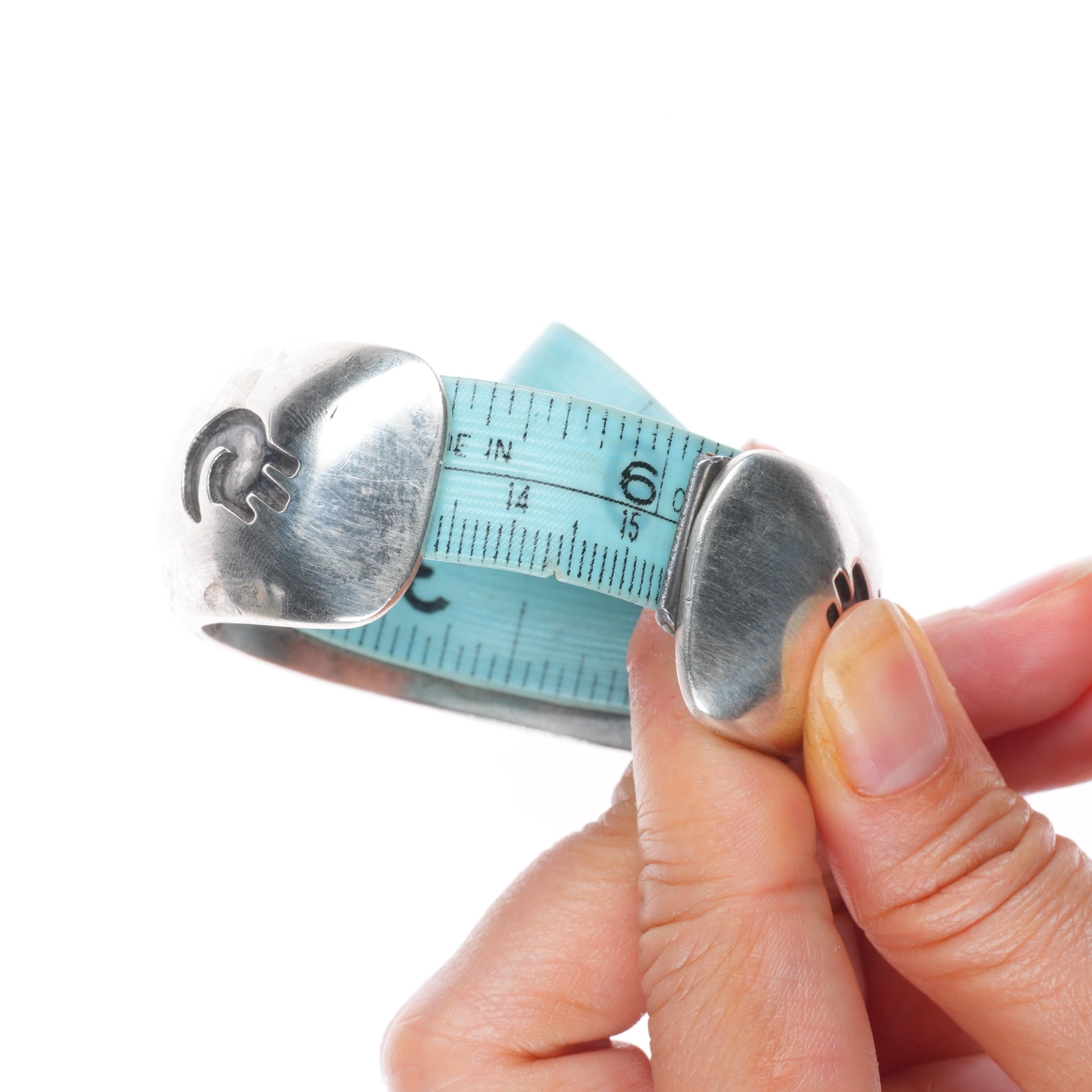 Bracelets are shown in the photos with a tape measure inside the bracelet, other photos will typically show the gap size. The size at the beginning of the title includes the gap.