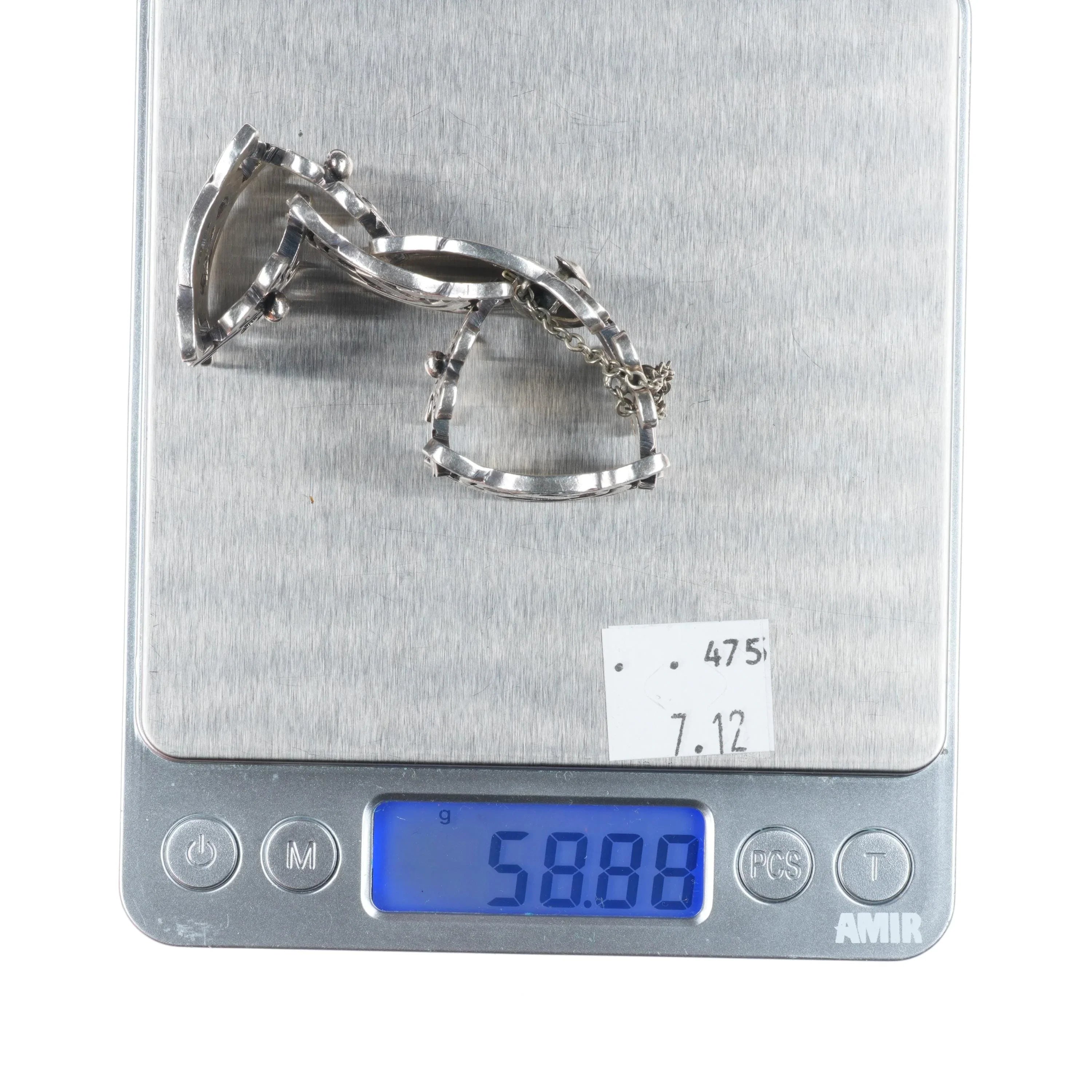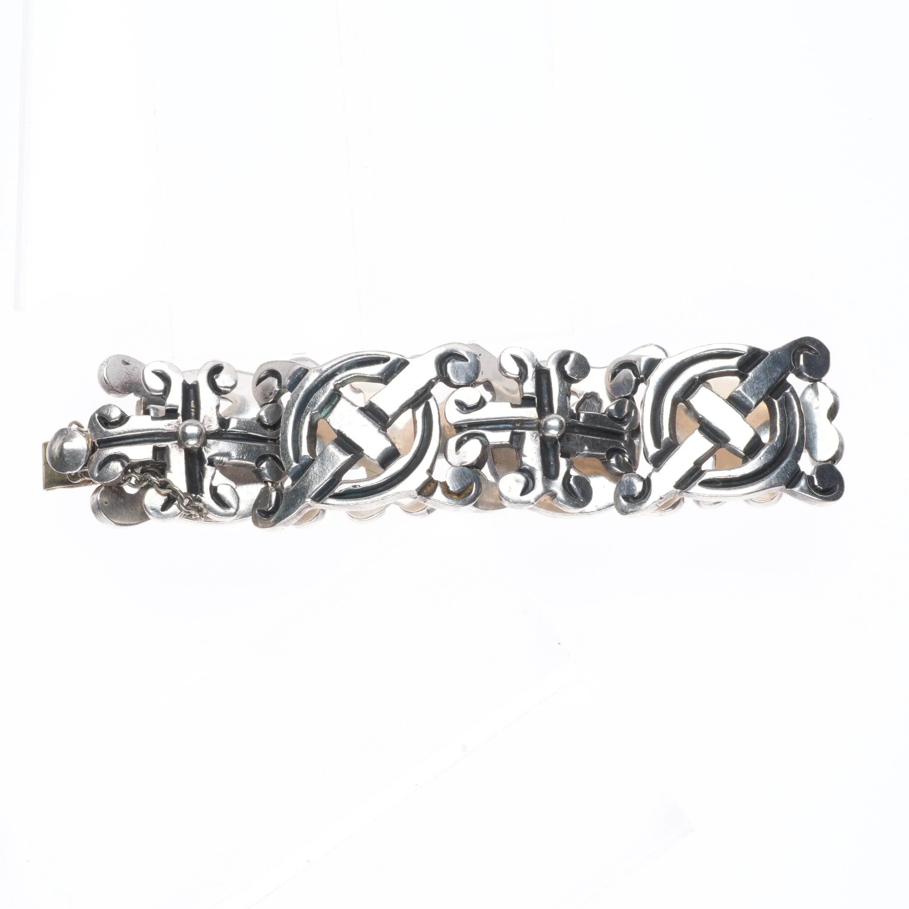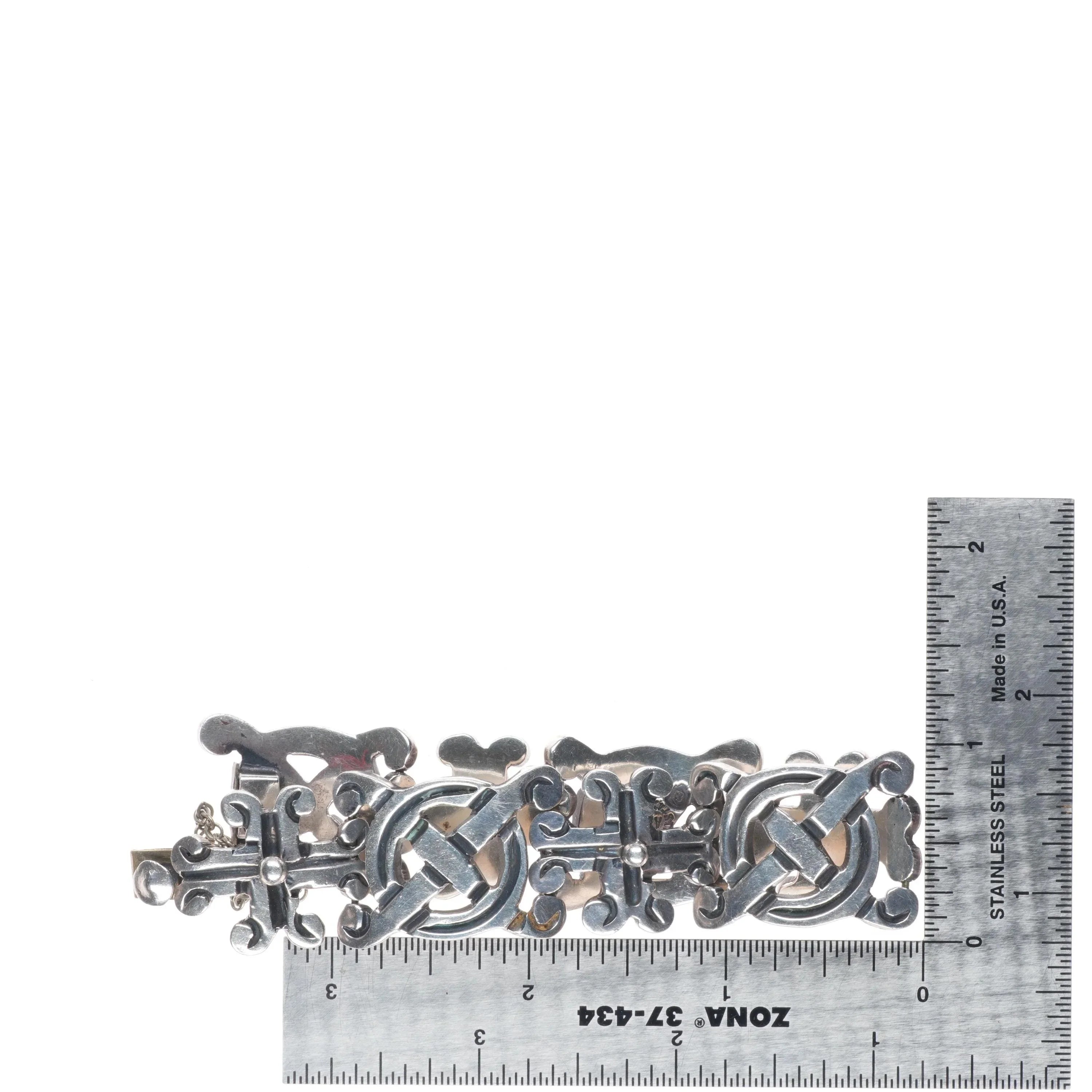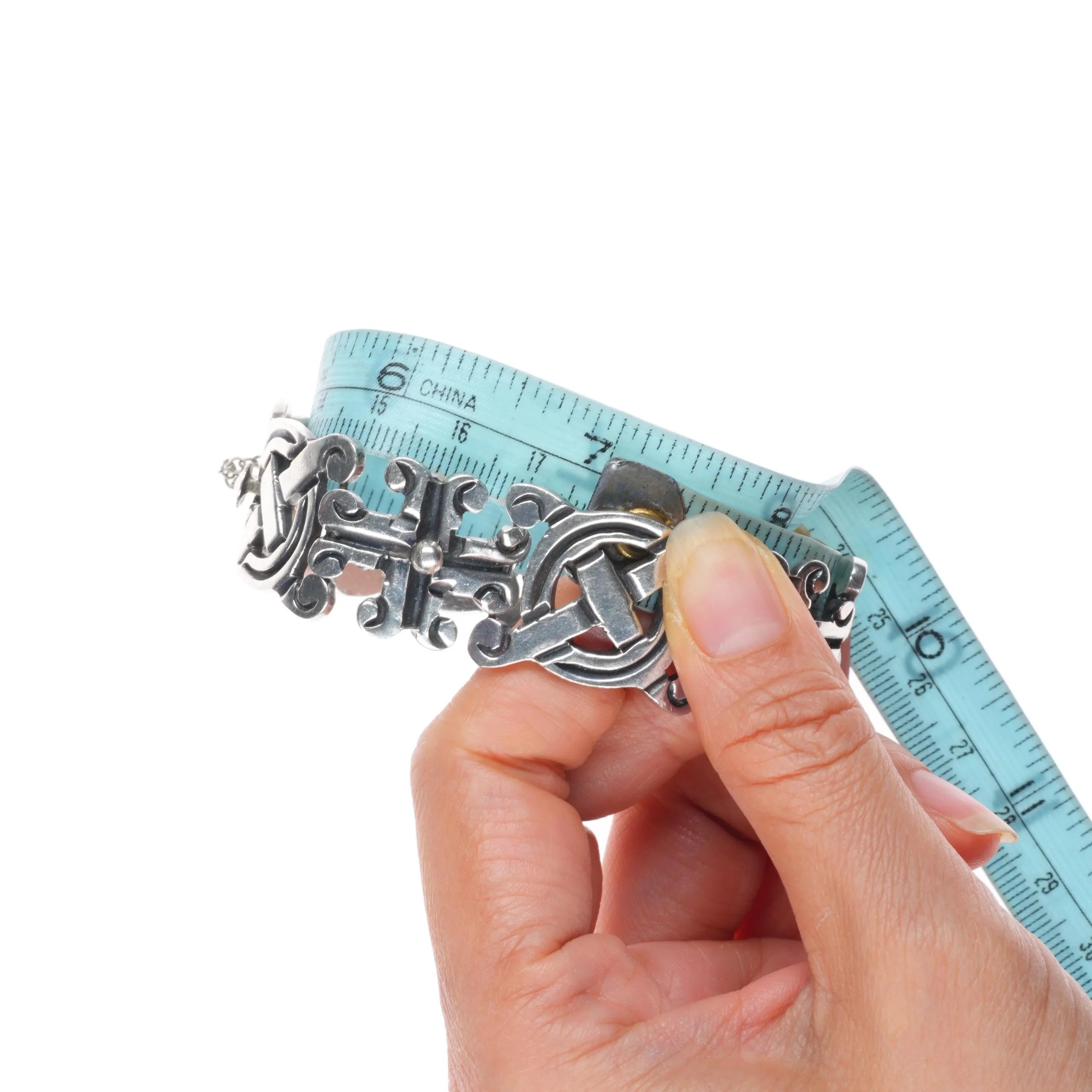 7" c1960‘s Mexican sterling silver modernist link bracelet. Weight and measurements in pictures, solid sterling silver. Marked as shown with no damage.