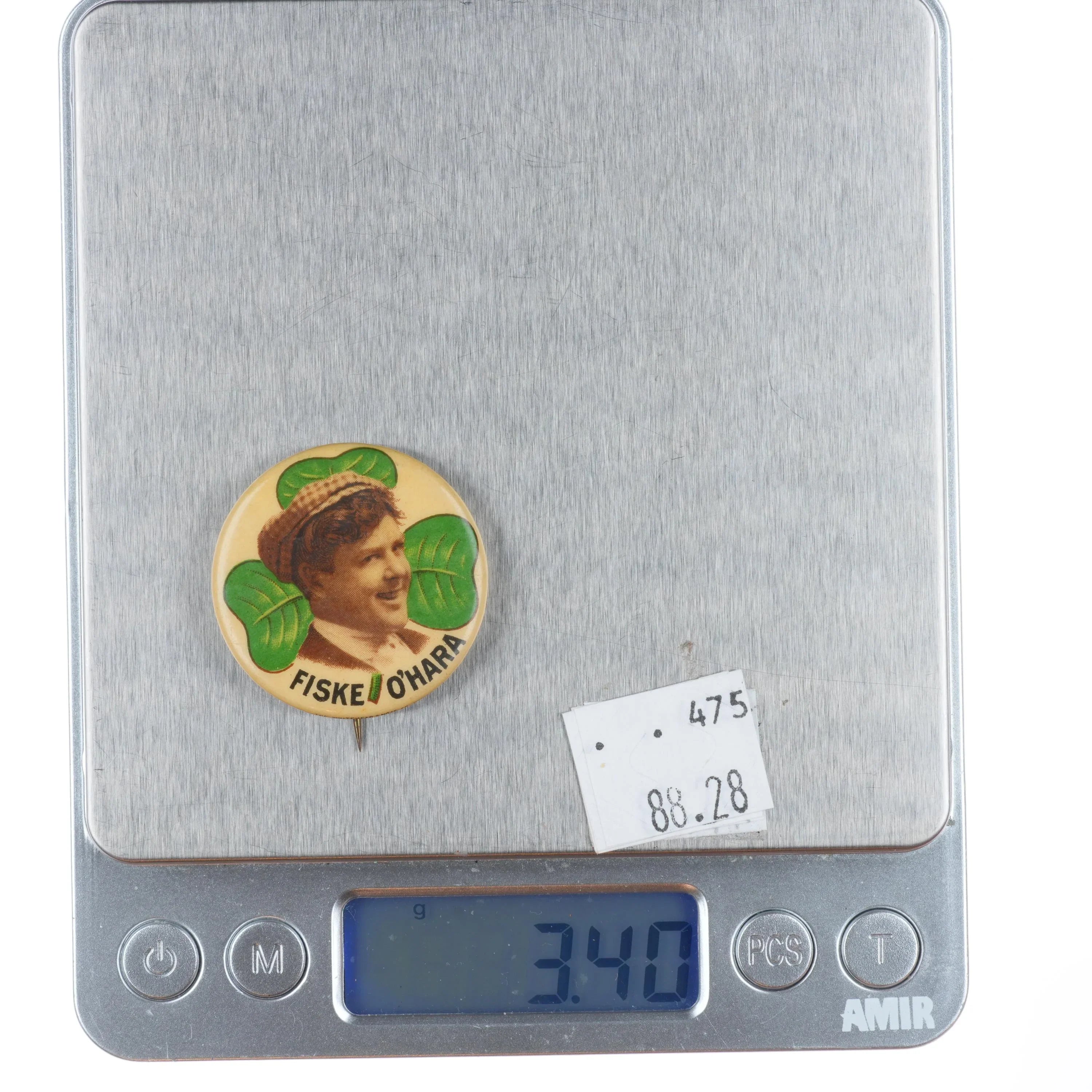 Antique Fiske O'Hara Opera singer/Actor pinback button clover