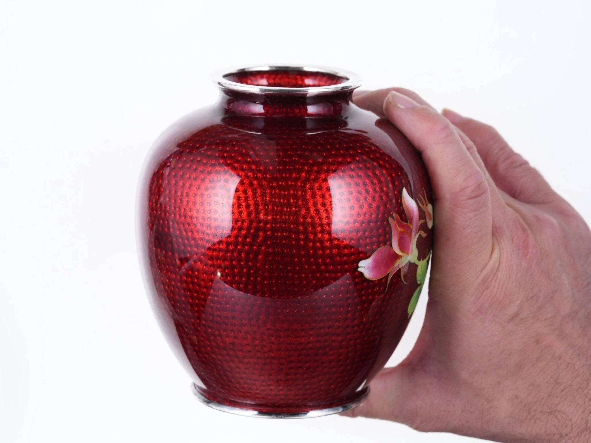 Antique Japanese Silver Wire Cloisonne Vase