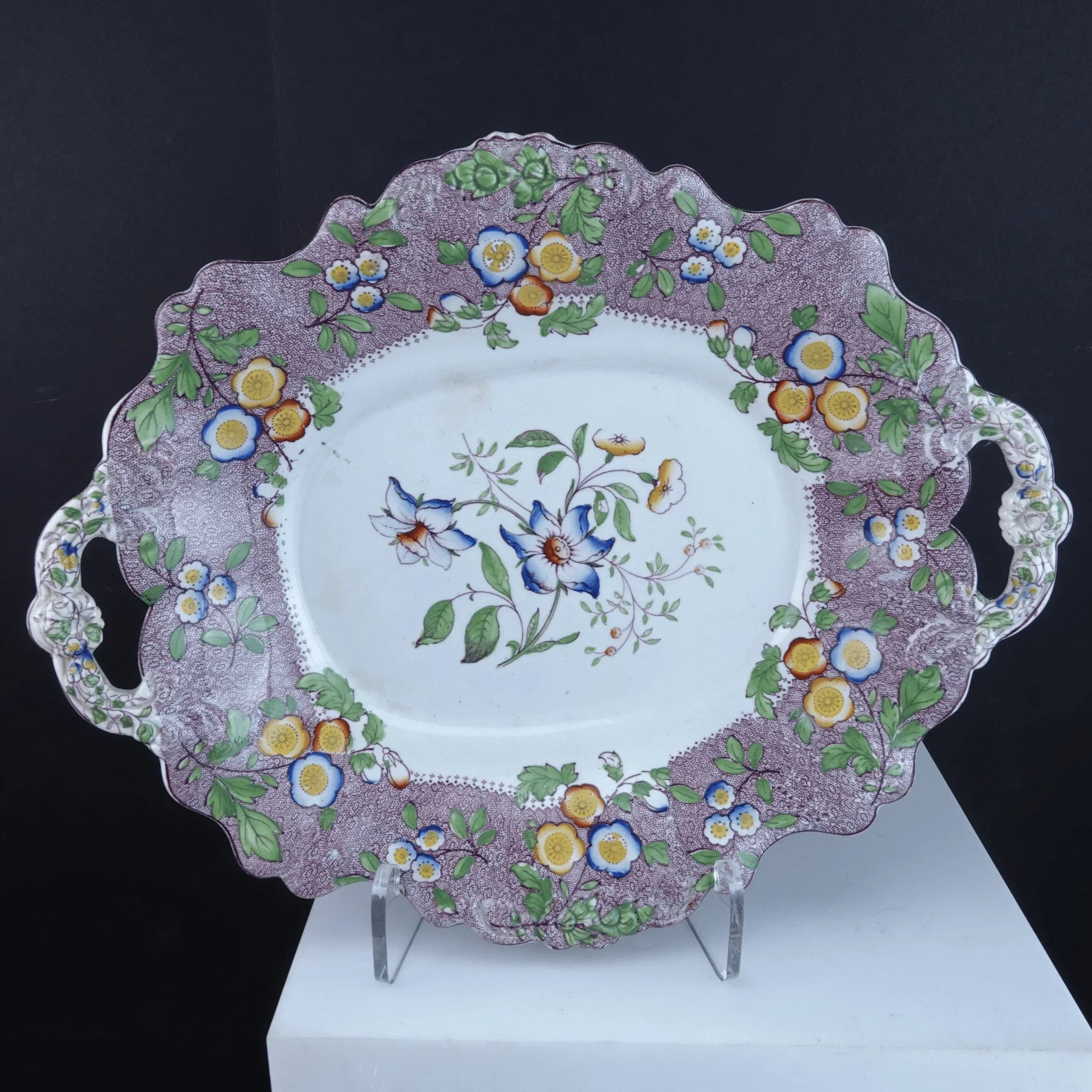c1840 William Ridgway Tab Handled Cake Plates Pair