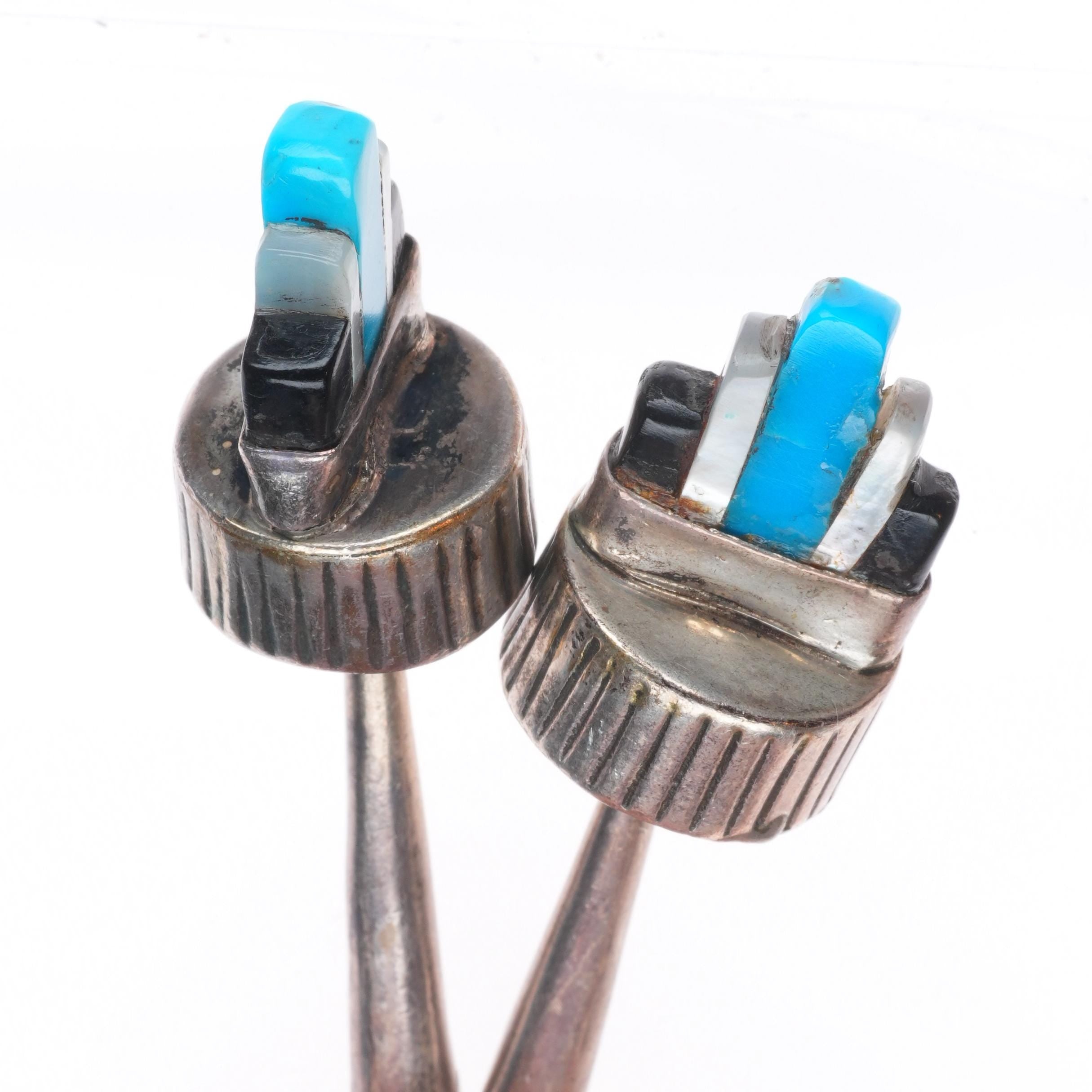 c1960 c-31 Calabaza Santo Domingo sterling silver turquoise inlay bolo tie