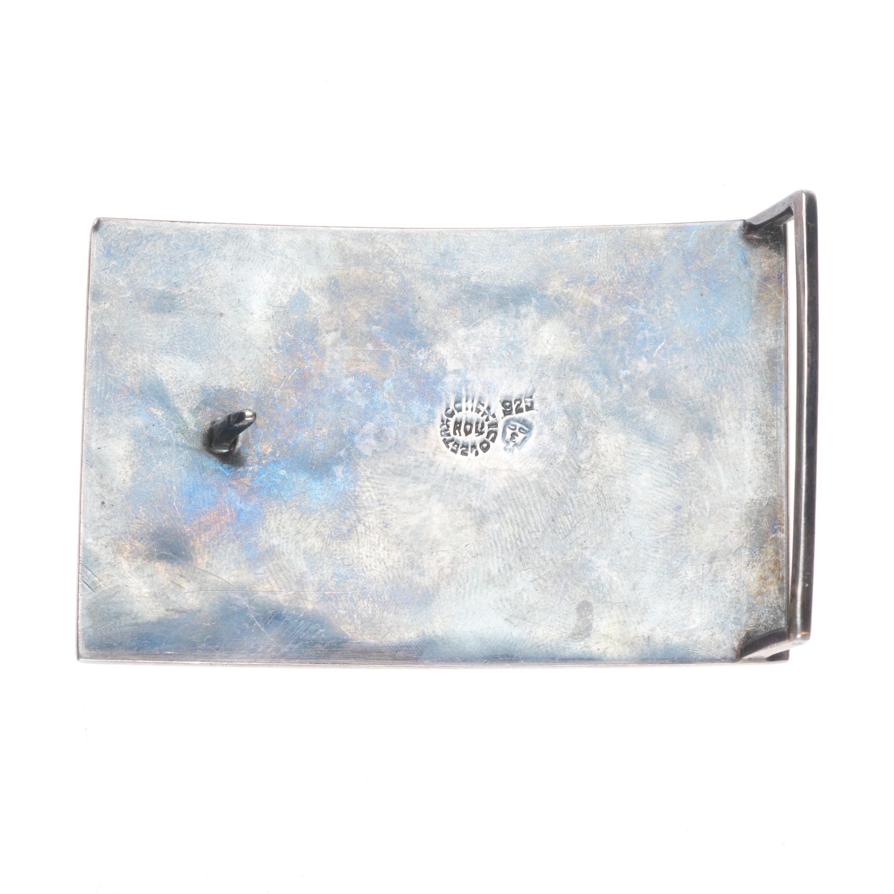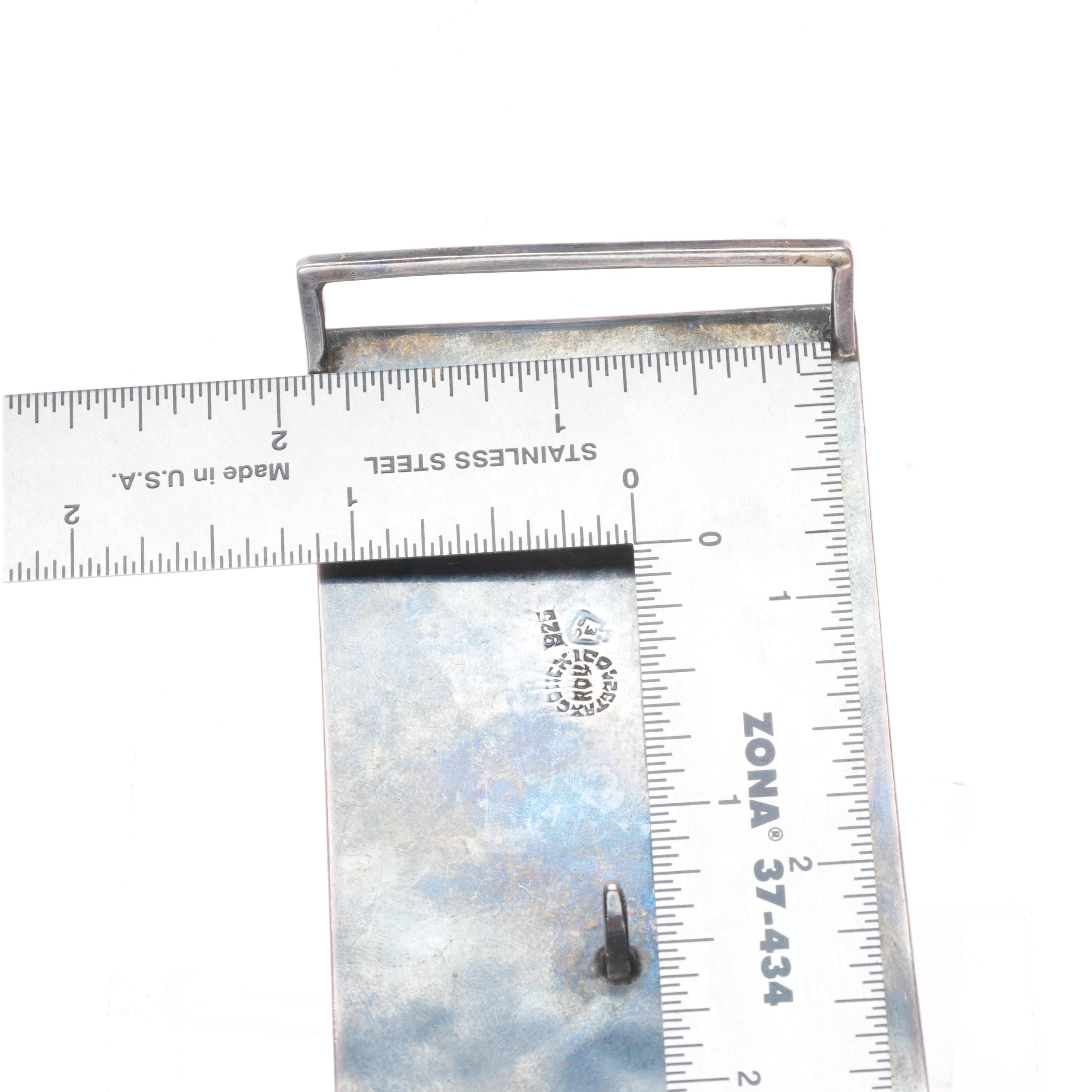 c1960's Taxco Sterling silver Chrysocolla inlay mixed metals/ brass belt buckle
