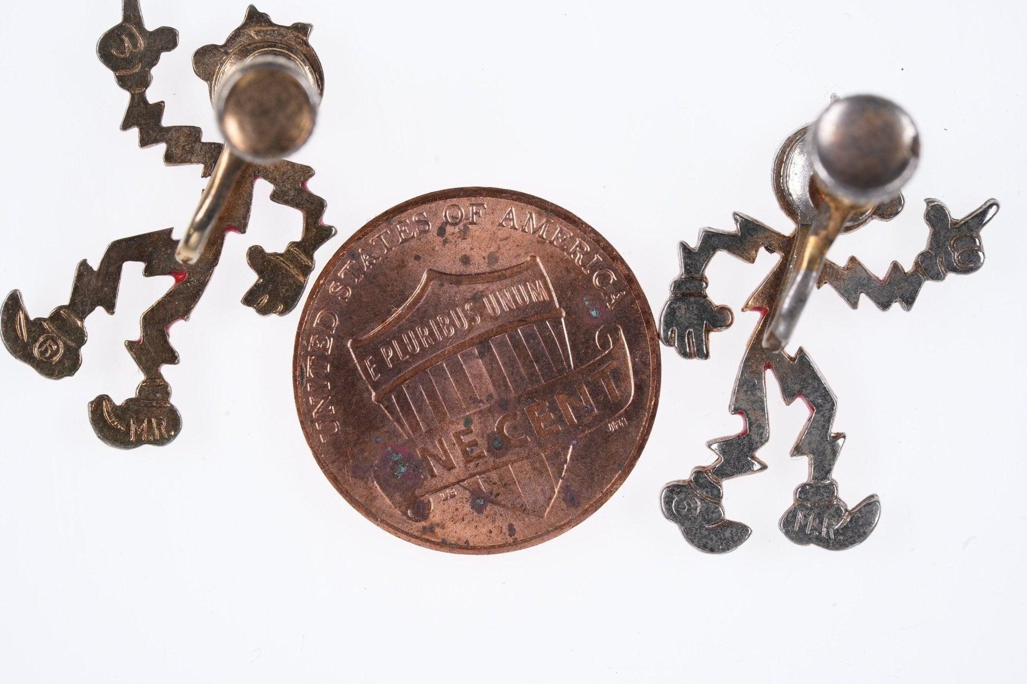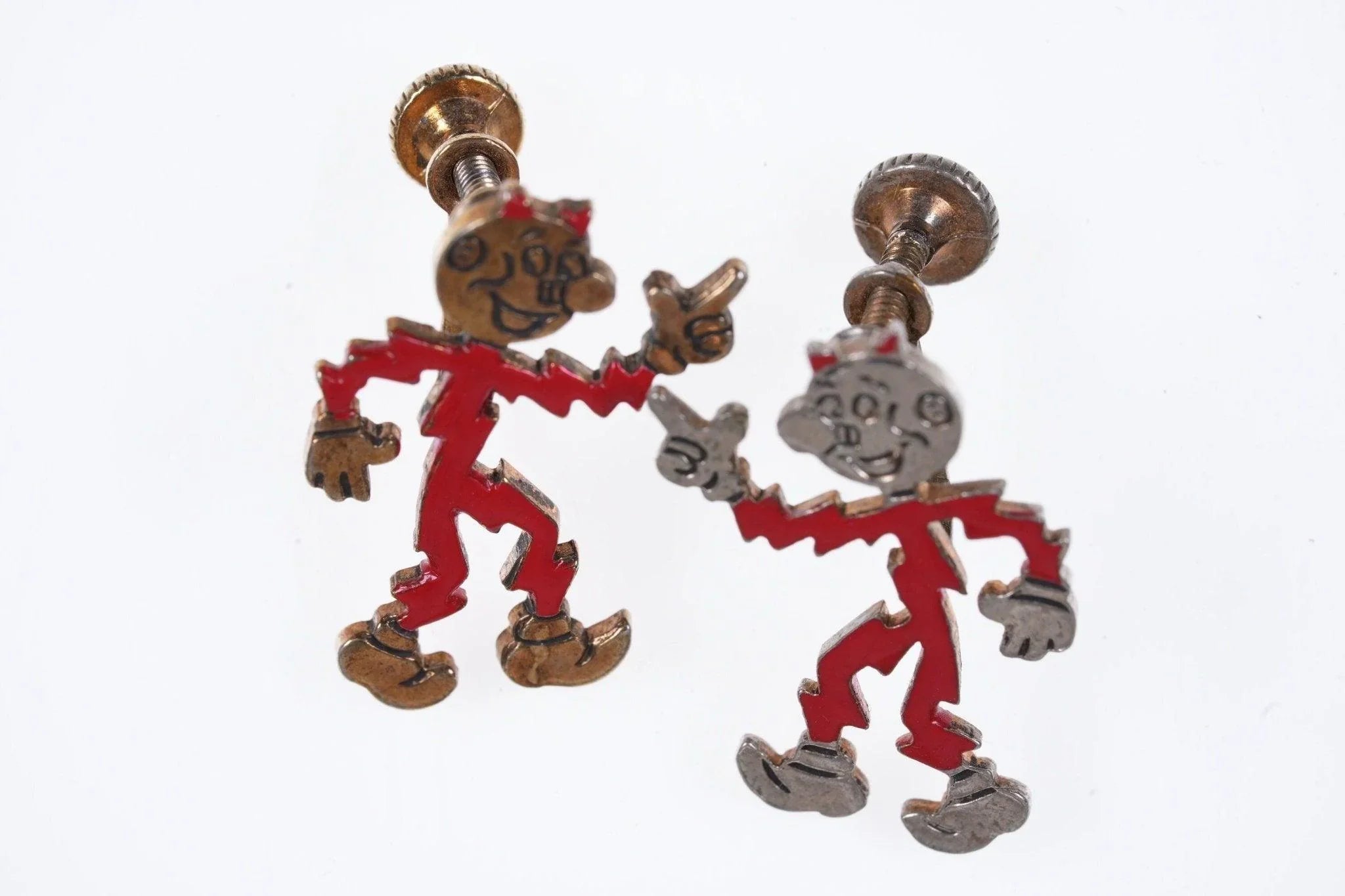 1950 年代 Reddy Kilowatt 广告螺丝后耳环。很棒的中世纪超酷耳环。珐琅状况良好,背面 MR 上印有版权符号。
