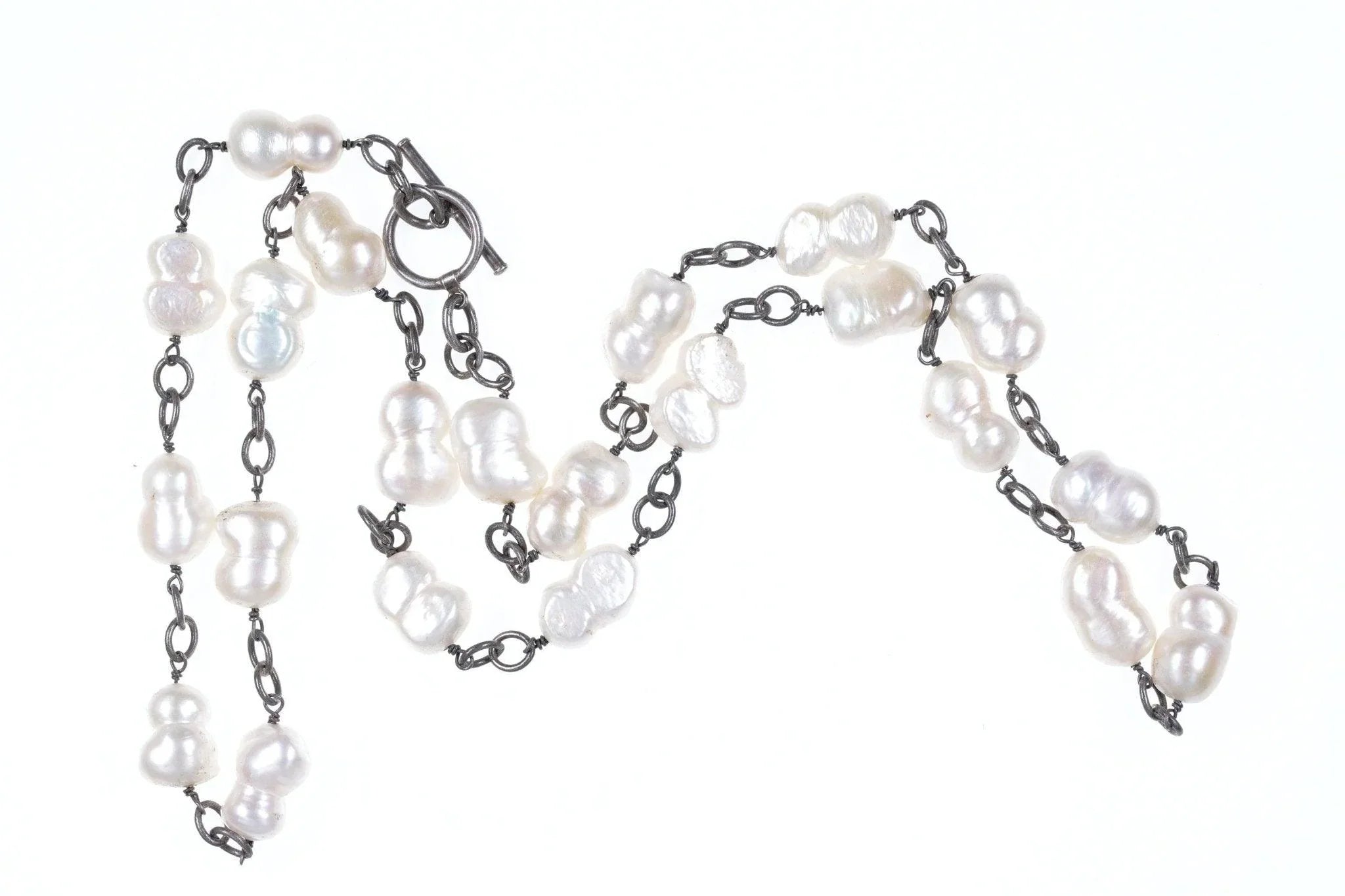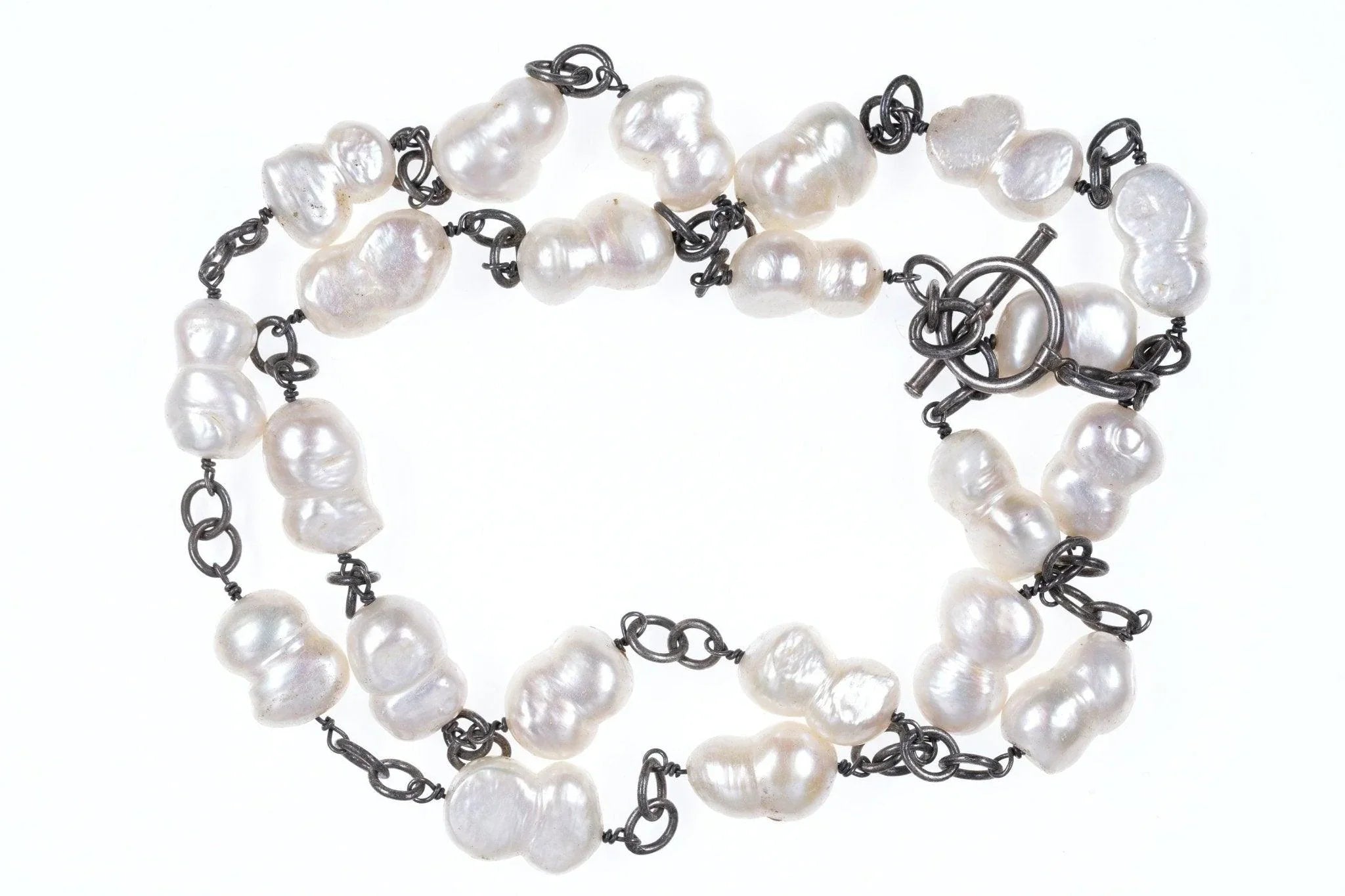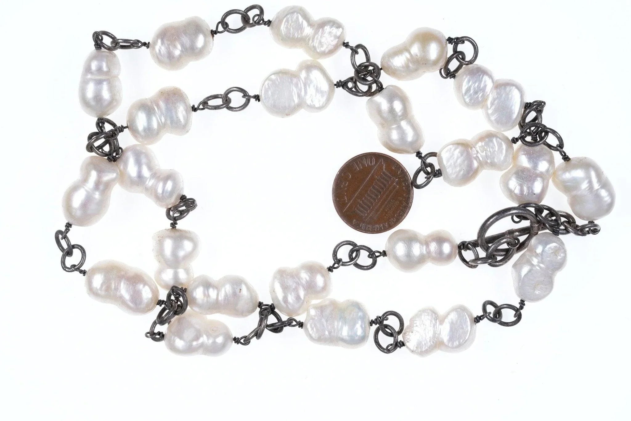 30 英寸复古纯银镶嵌大号淡水珍珠项链