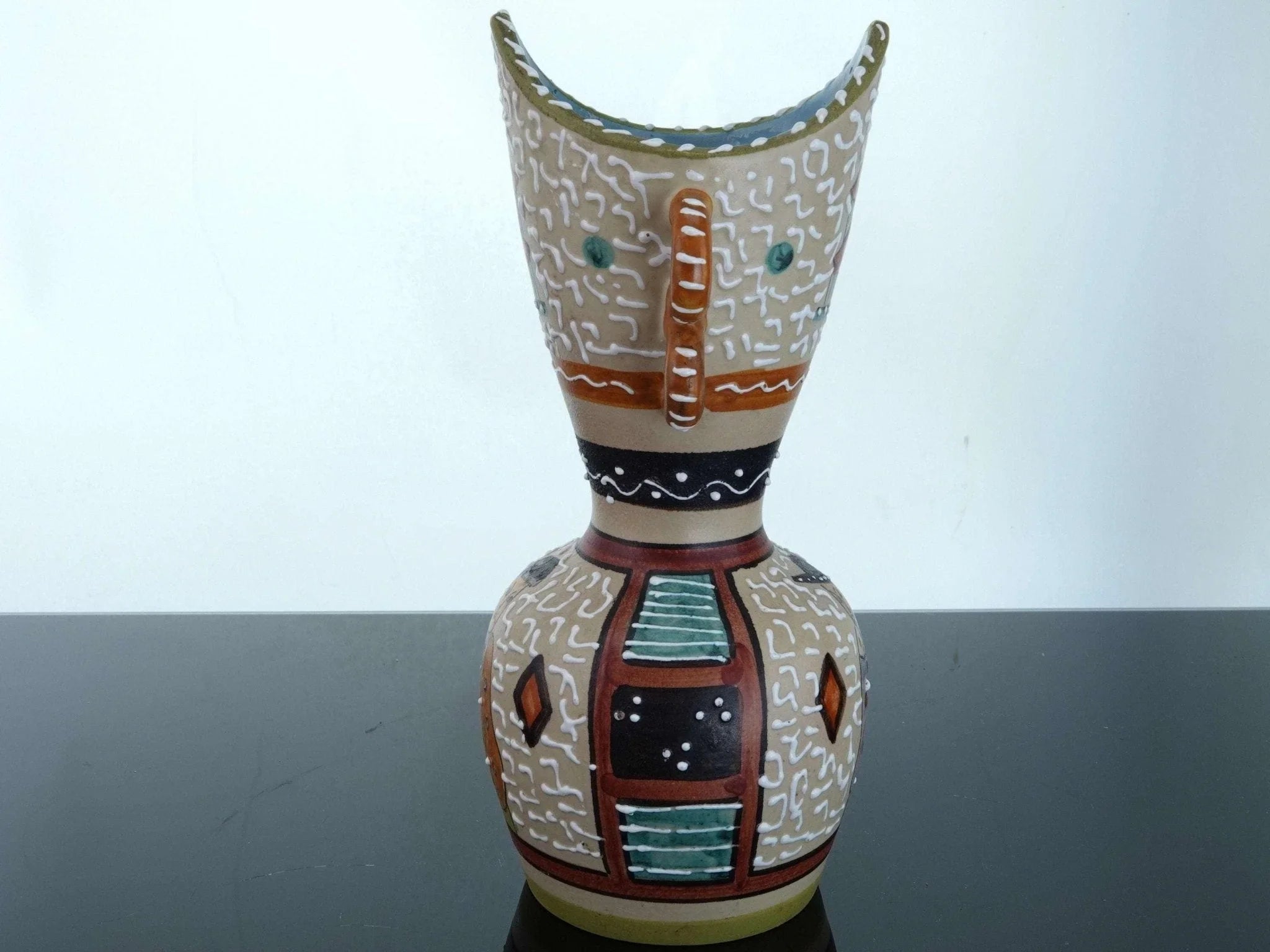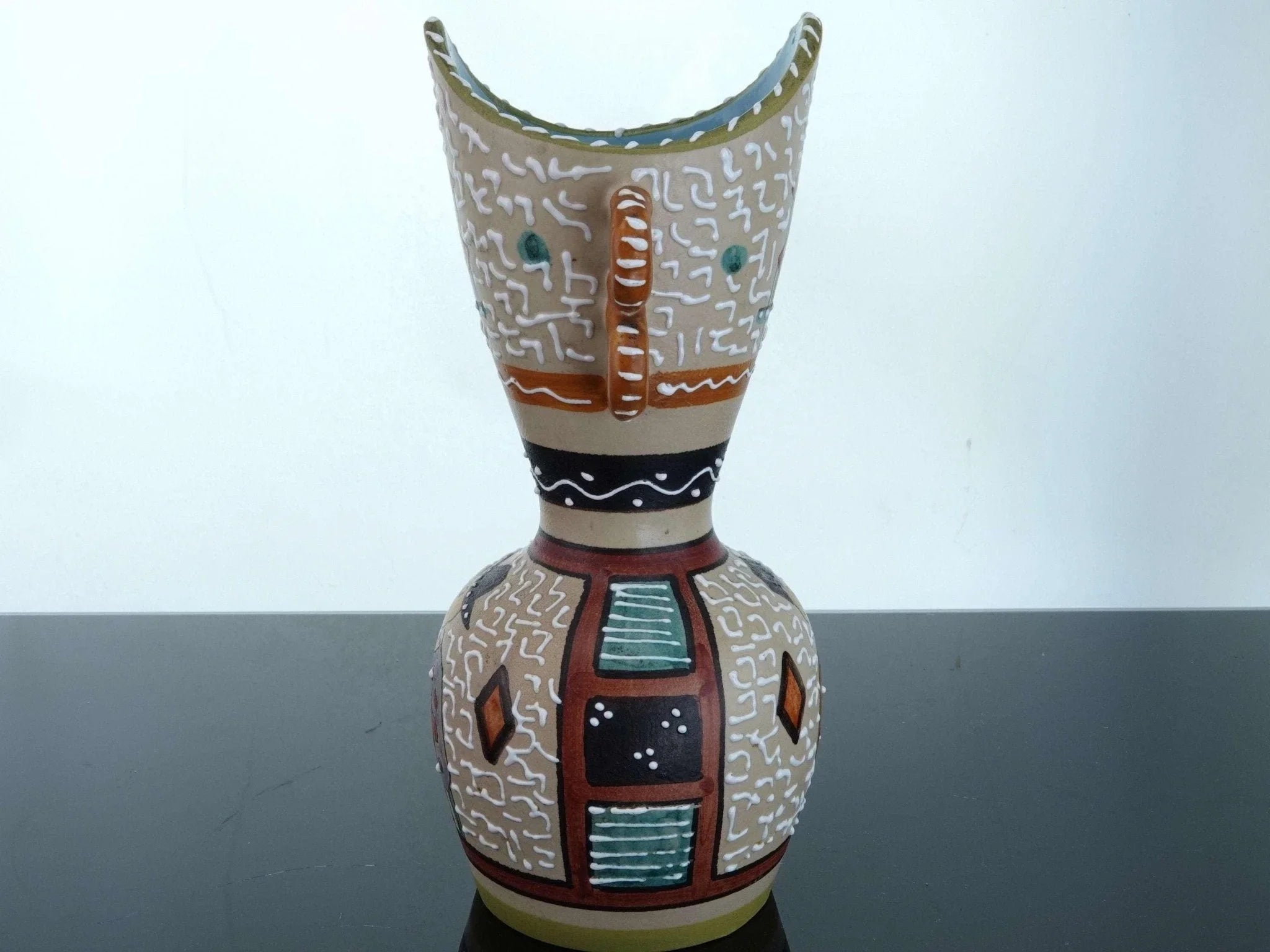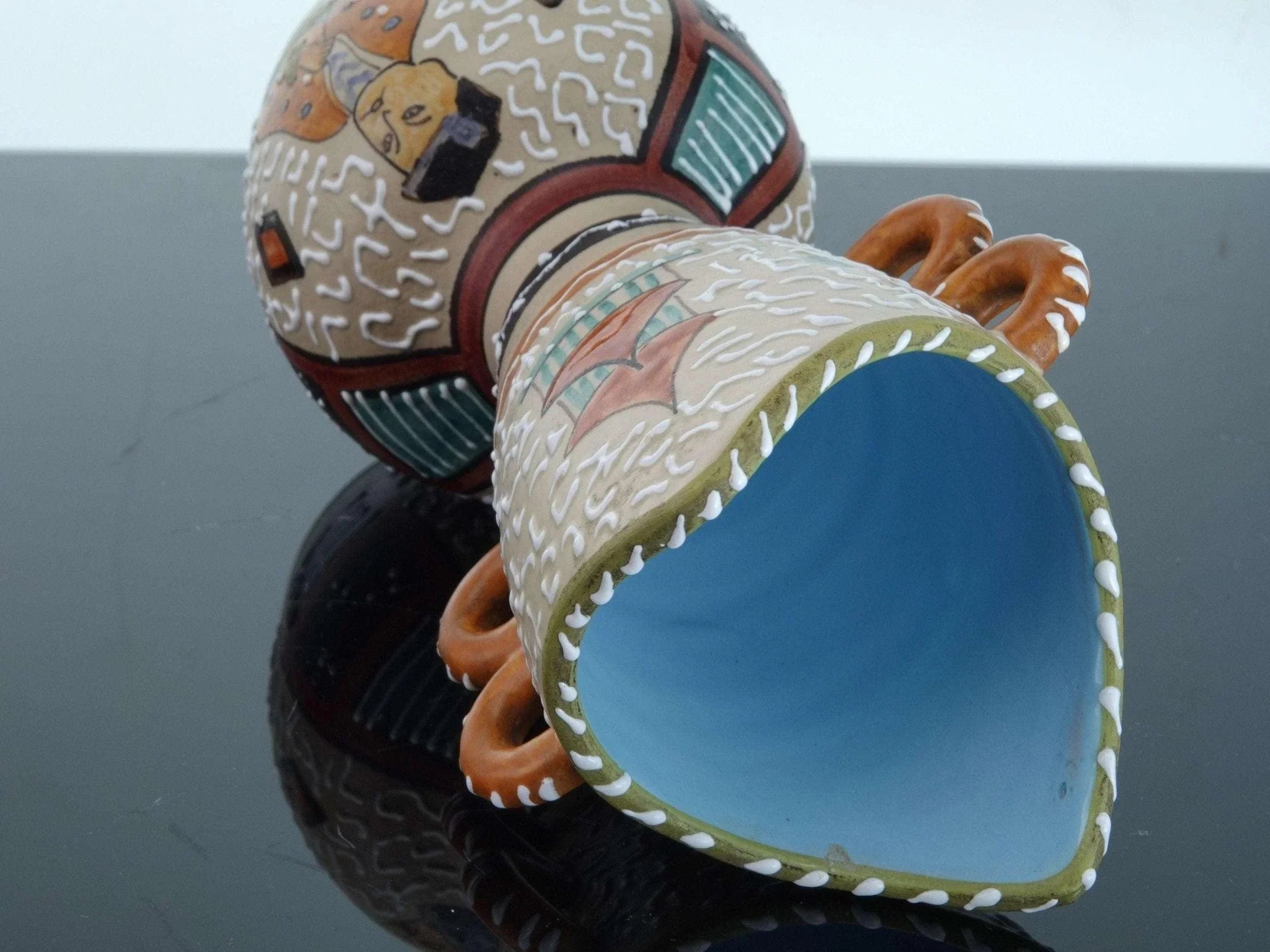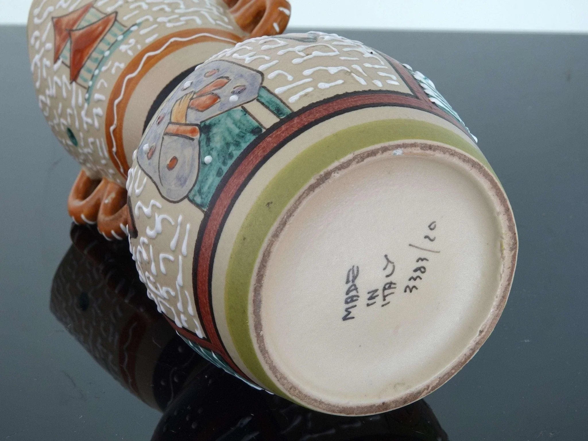 c1950 意大利中世纪现代中国风花瓶手绘,带管状 Moriage 风格装饰。非常不寻常的作品,出色的设计,希望我知道它是谁的。约 1940-1960 年代有保证。 7.75 英寸高,无裂纹、缺口或修复。