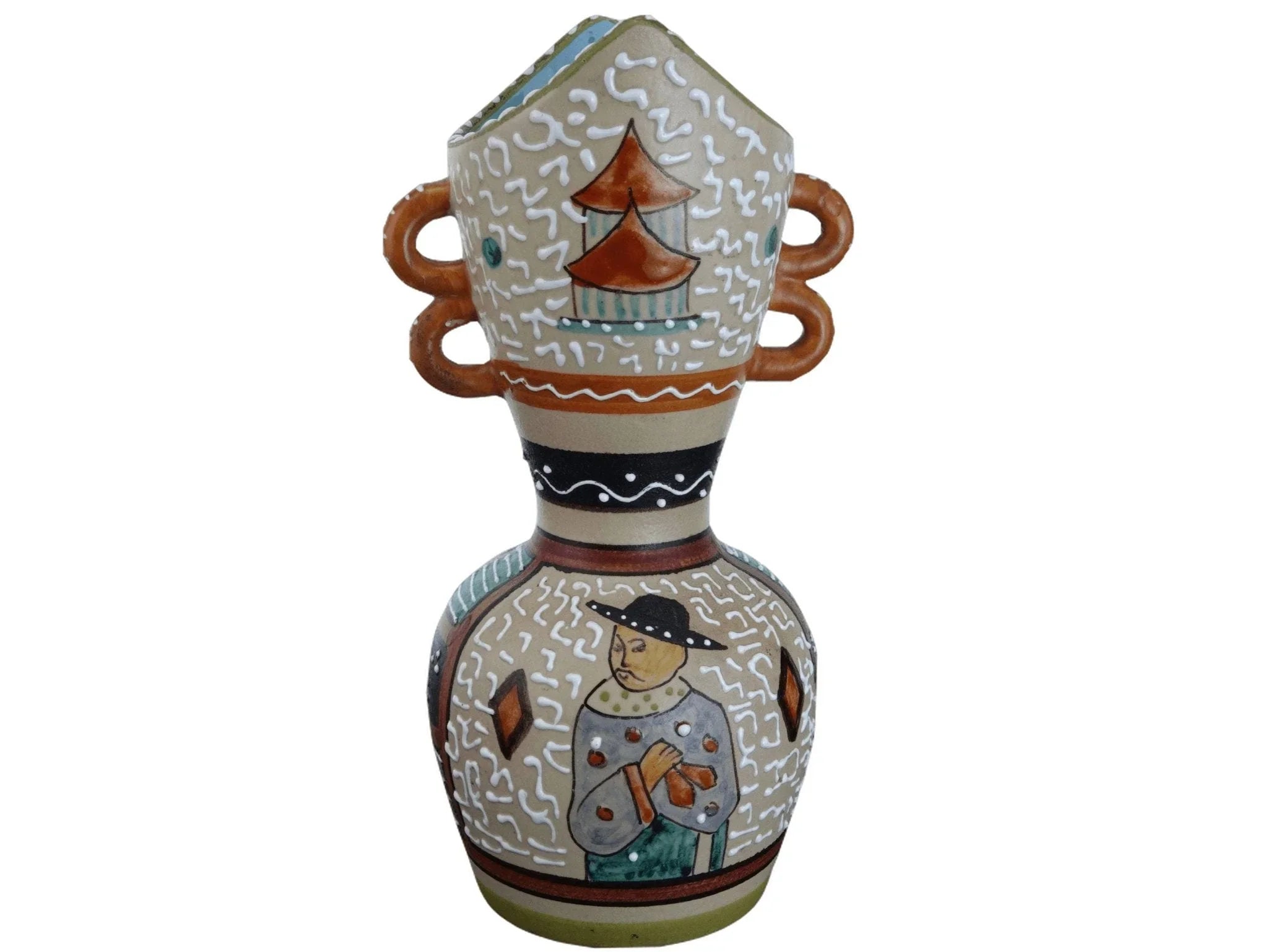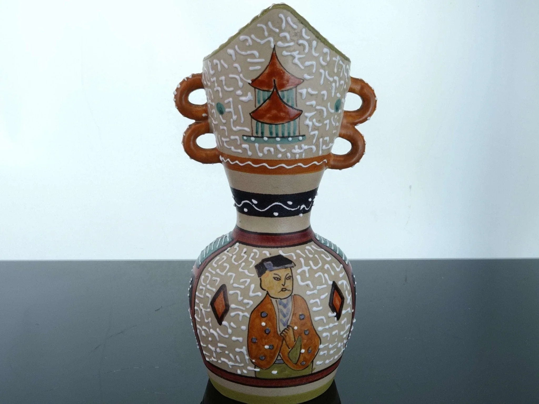 c1950 意大利中世纪现代中国风花瓶手绘管状 Moriage 风格装饰