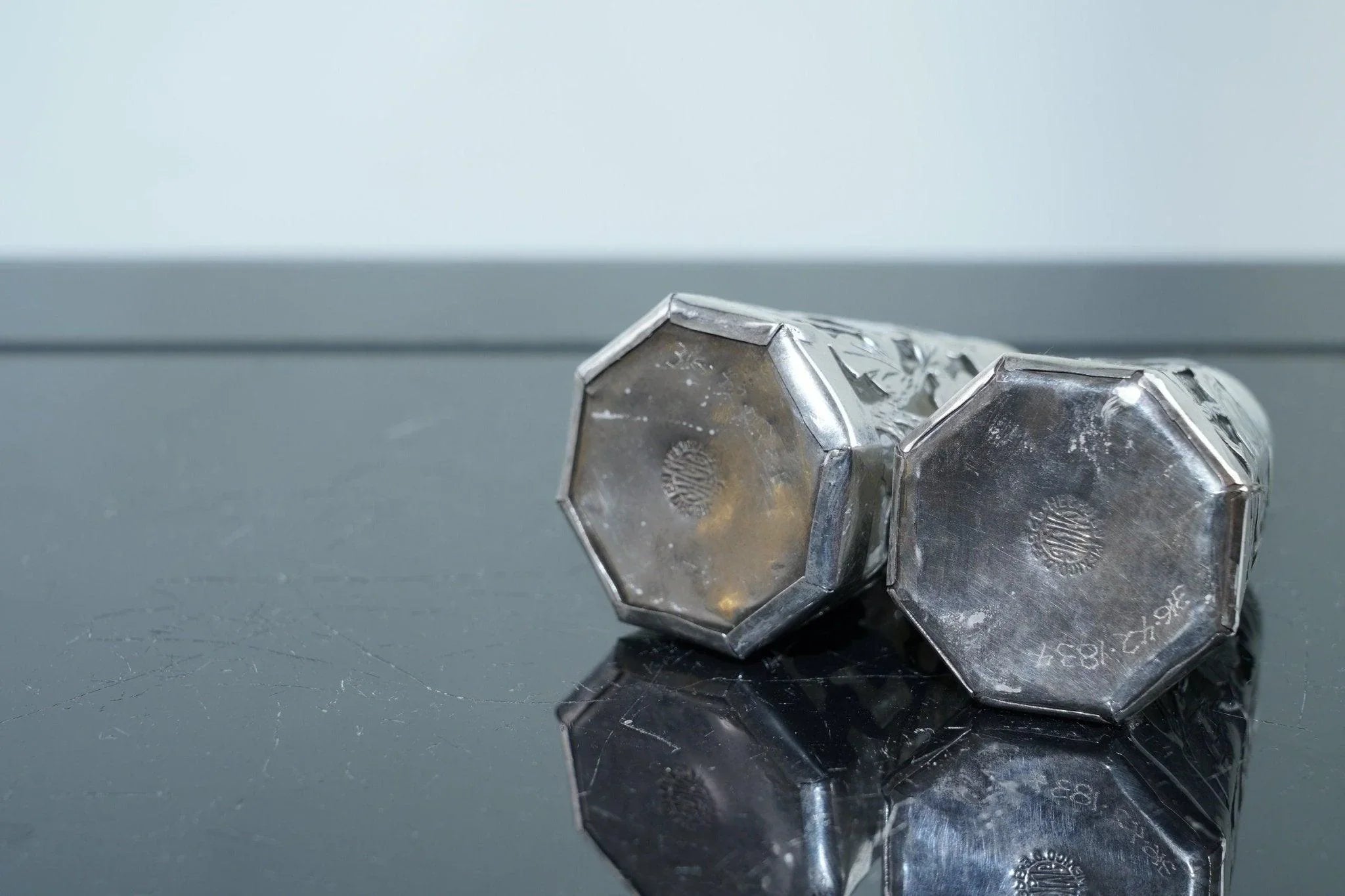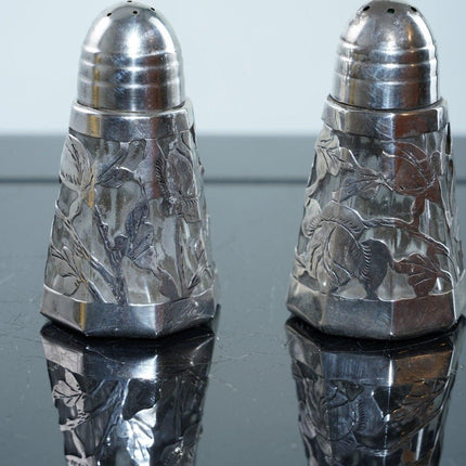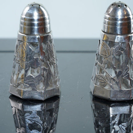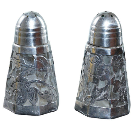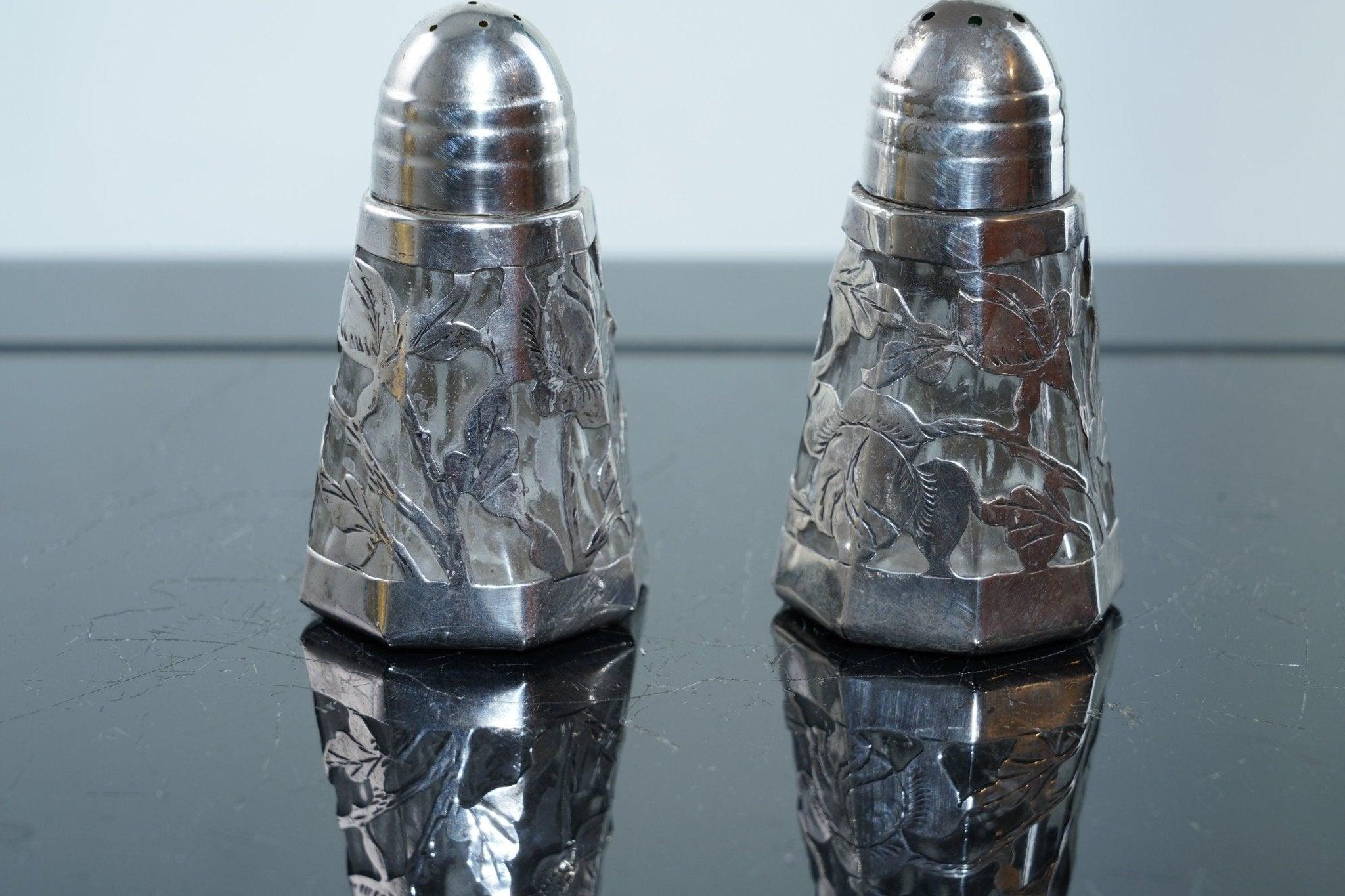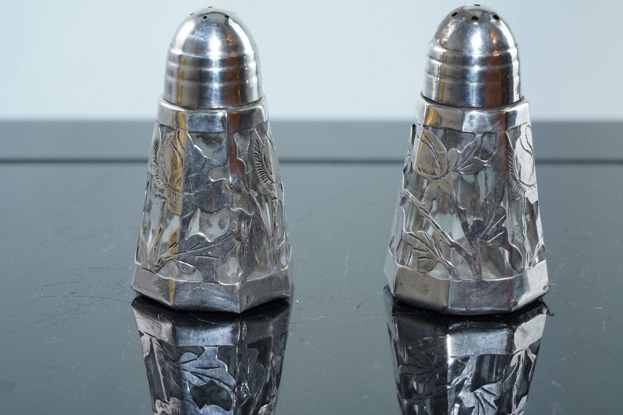 1950 年代墨西哥纯银覆盖玻璃盐和胡椒套装