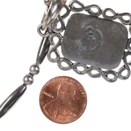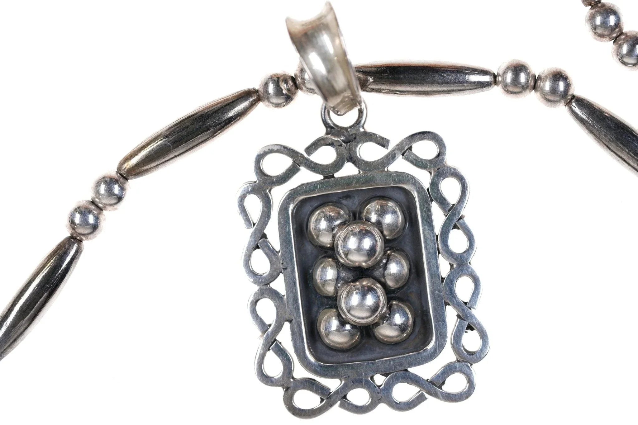 Brenda Schoenfeld 现代主义墨西哥纯银吊坠/项链。项链和吊坠经过纯银测试,我在项链上没有发现任何识别标记。它们是新鲜的,被发现时就在一起。总重 42.9 克,吊坠高 2 英寸。