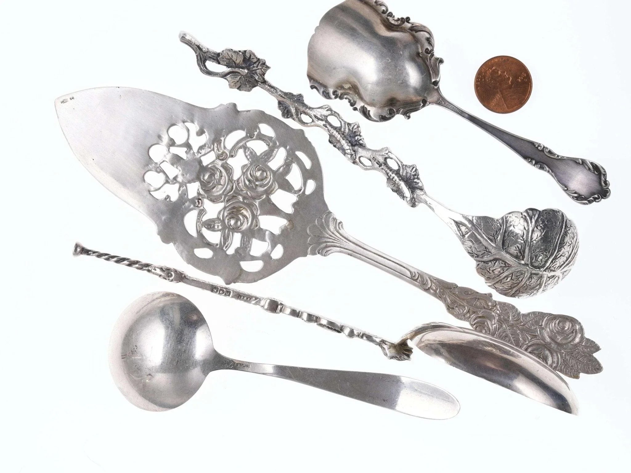 精美古董纯银收藏。出售所示批次的中央糕点服务器经过测试,保证为 800 银或更高,没有清晰的纯度标记,所有其他标记如图所示。最长 7 7/8 英寸,总重 133.5 克。