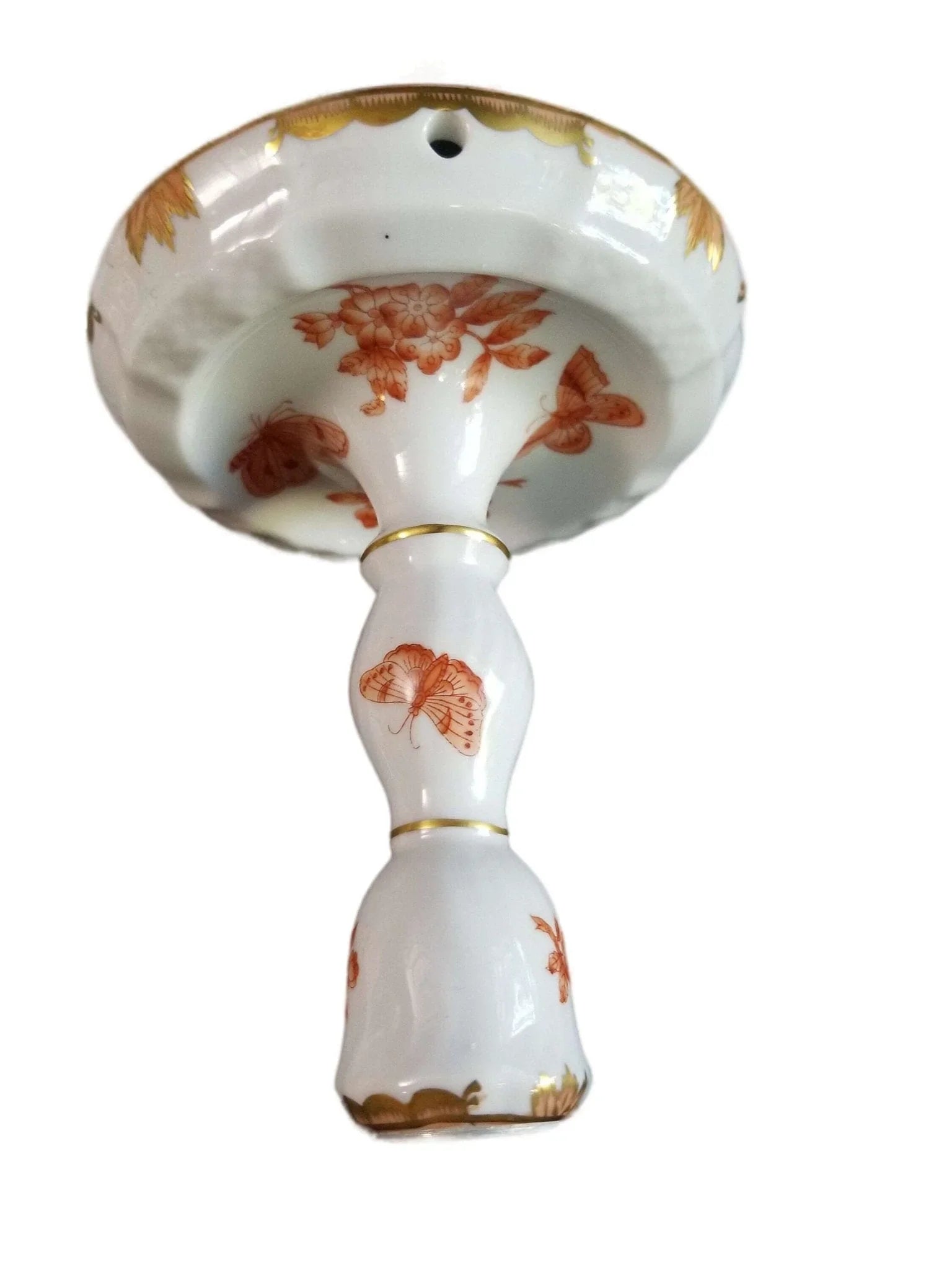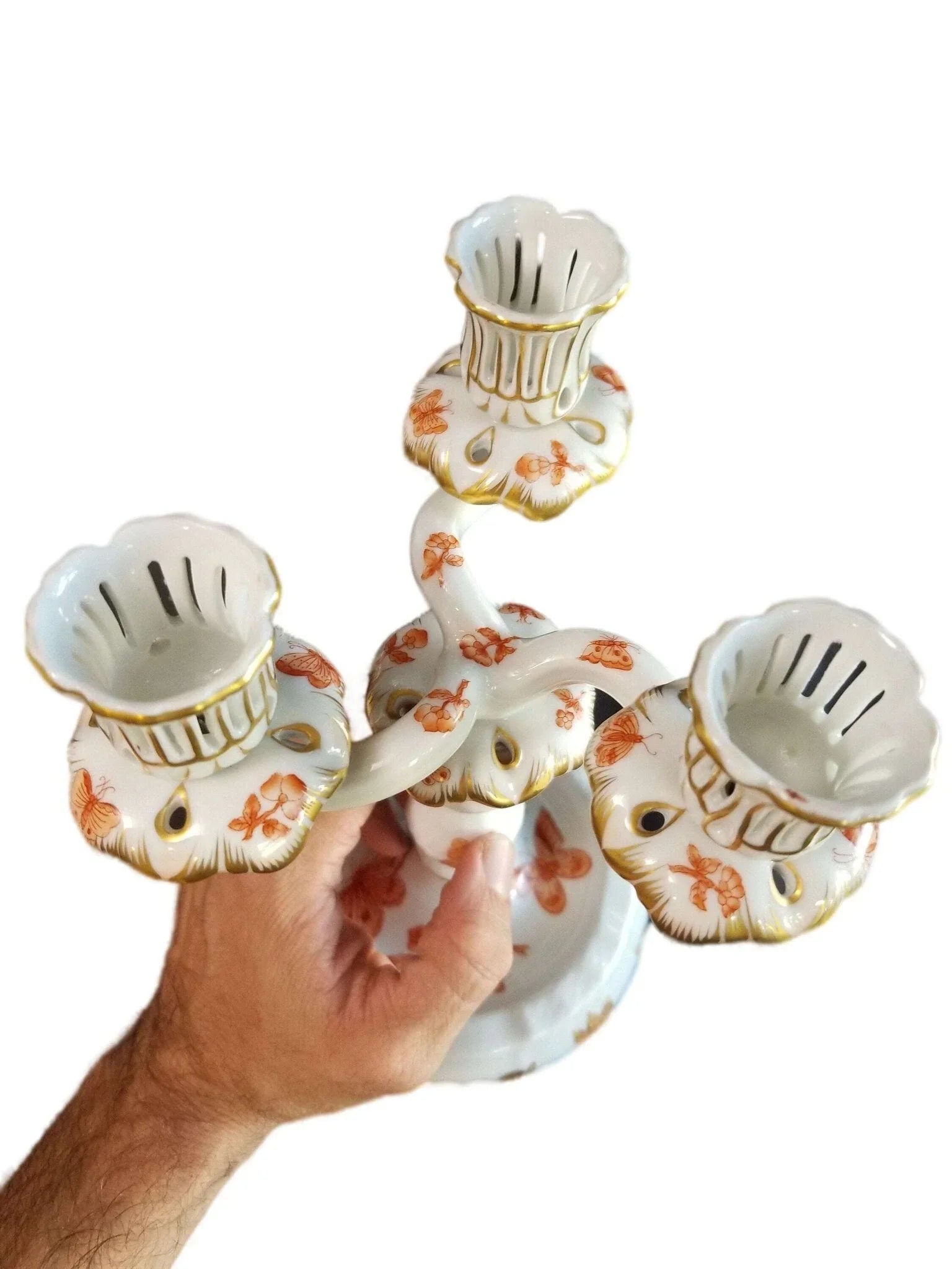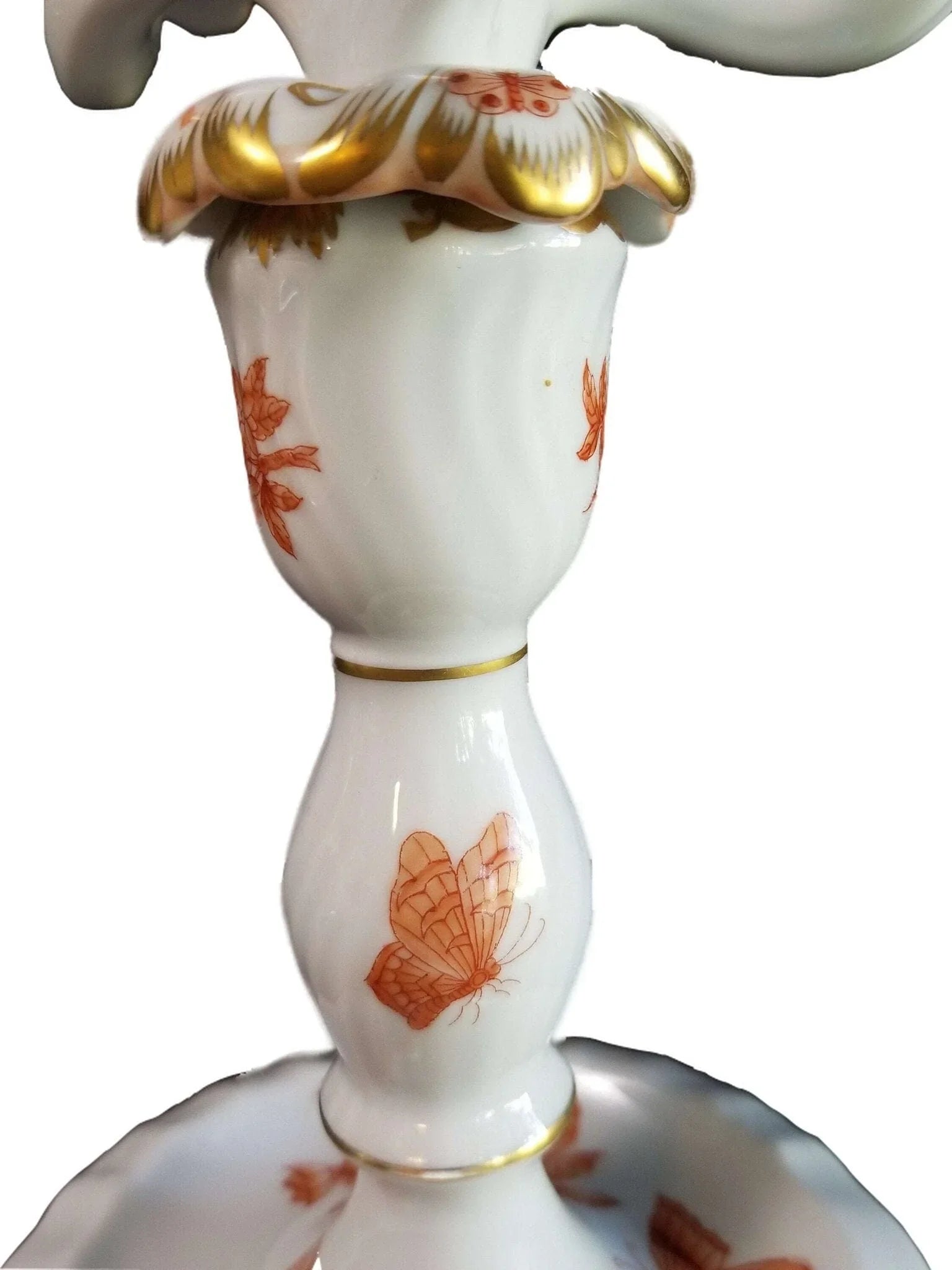 Herend Fortuna Candleabra 铁锈蝴蝶中国风图案镀金桃边框 19151 vboh 9 英寸高 x 6 英寸宽
