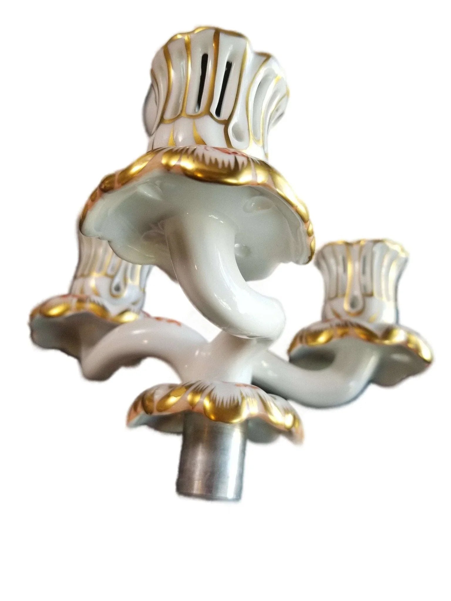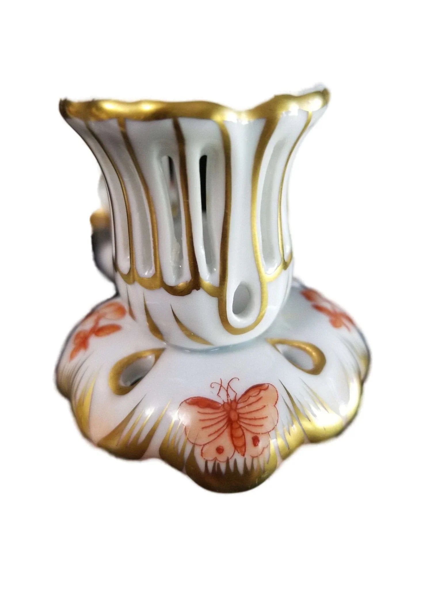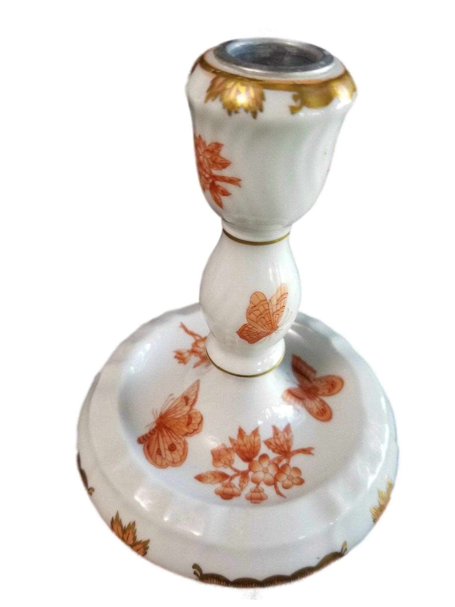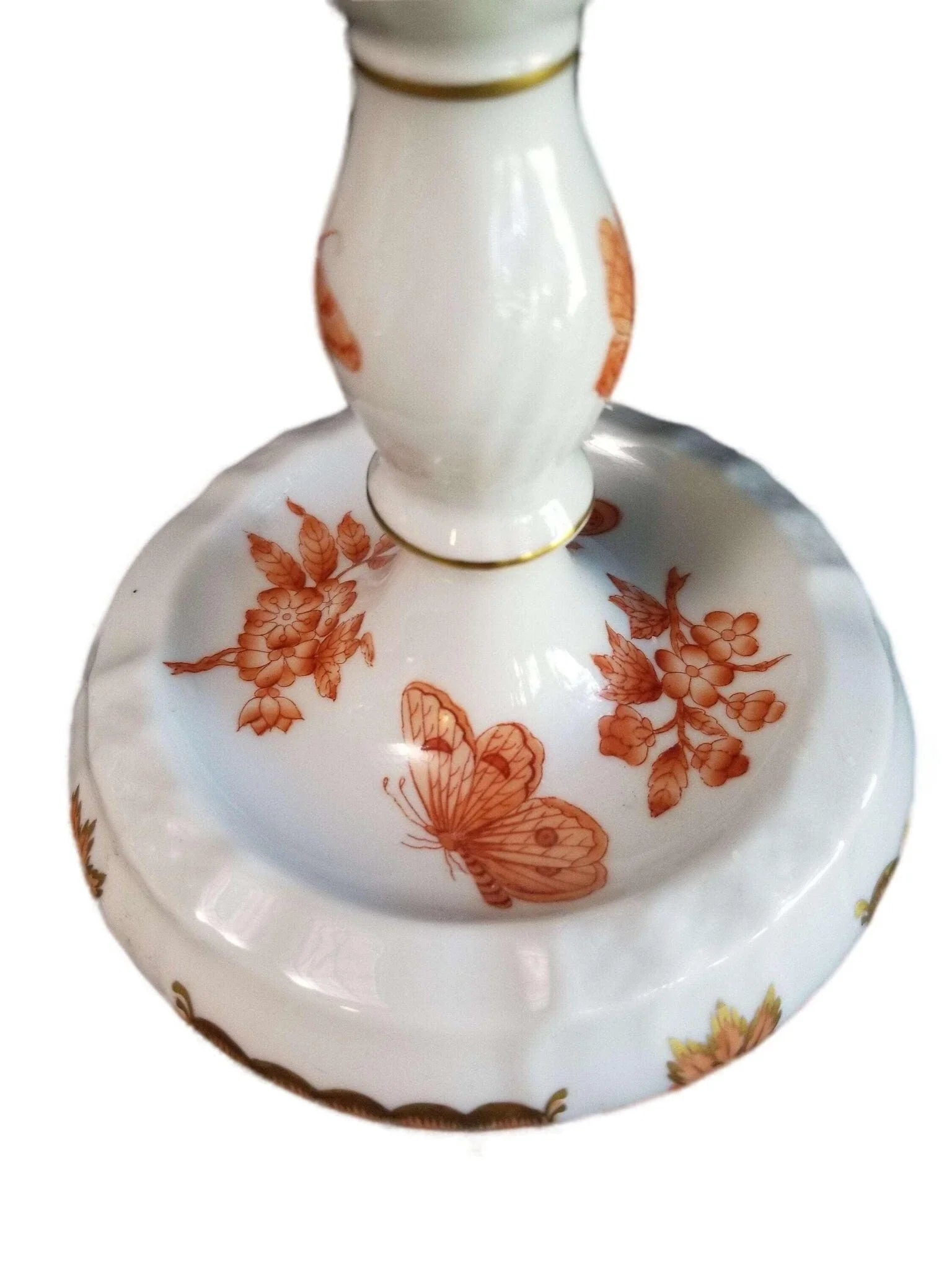 Herend Fortuna Candleabra 铁锈蝴蝶中国风图案镀金桃边框 19151 vboh 9 英寸高 x 6 英寸宽
