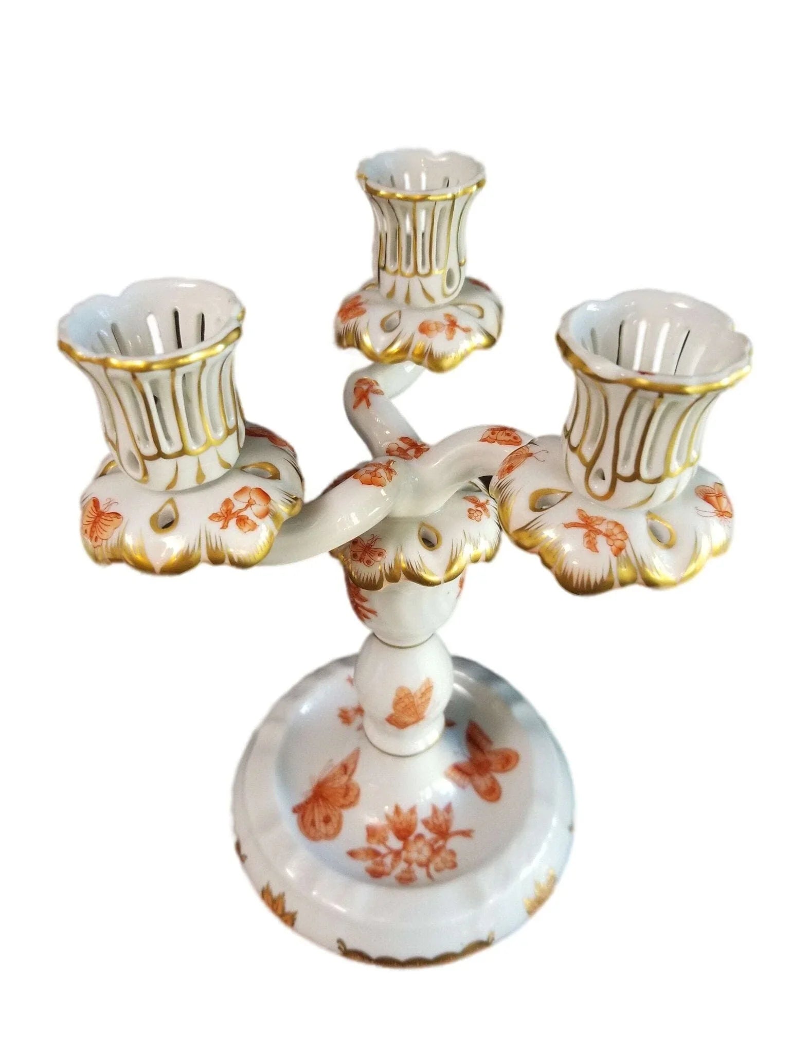 Herend Fortuna Candleabra 铁锈蝴蝶中国风图案镀金桃边框 19151 vboh