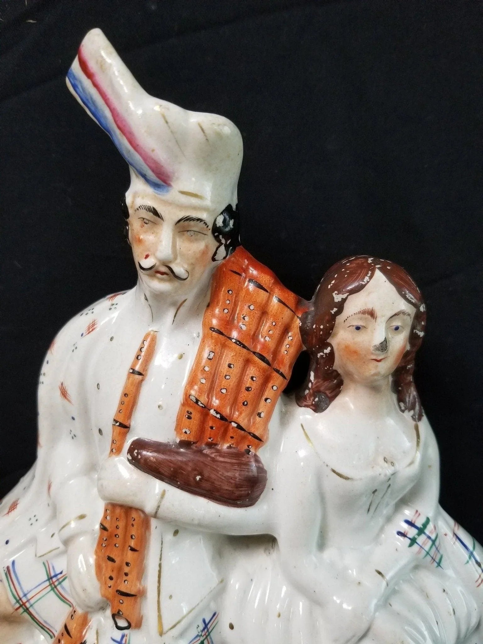 c1870 古董斯塔福德郡人物高地夫妇带时钟 14 英寸 x 9 英寸宽